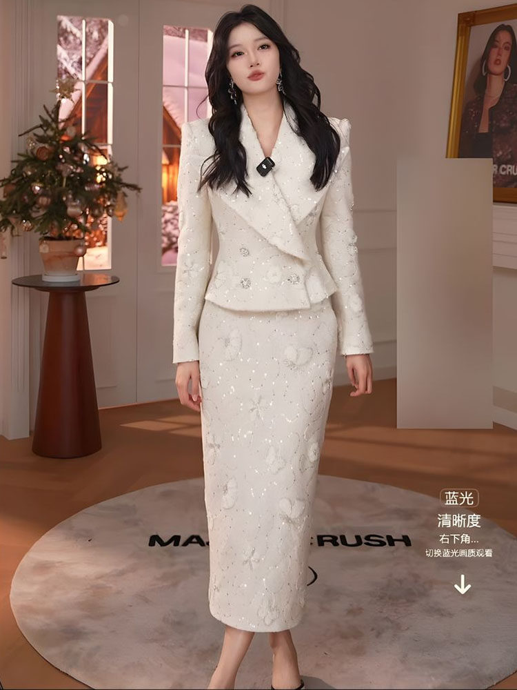 Yijie French-Style Light Luxury Sequin Shimmering Set for Women, Autumn and Winter Elegant Socialite Blazer and Skirt Two-Piece Set