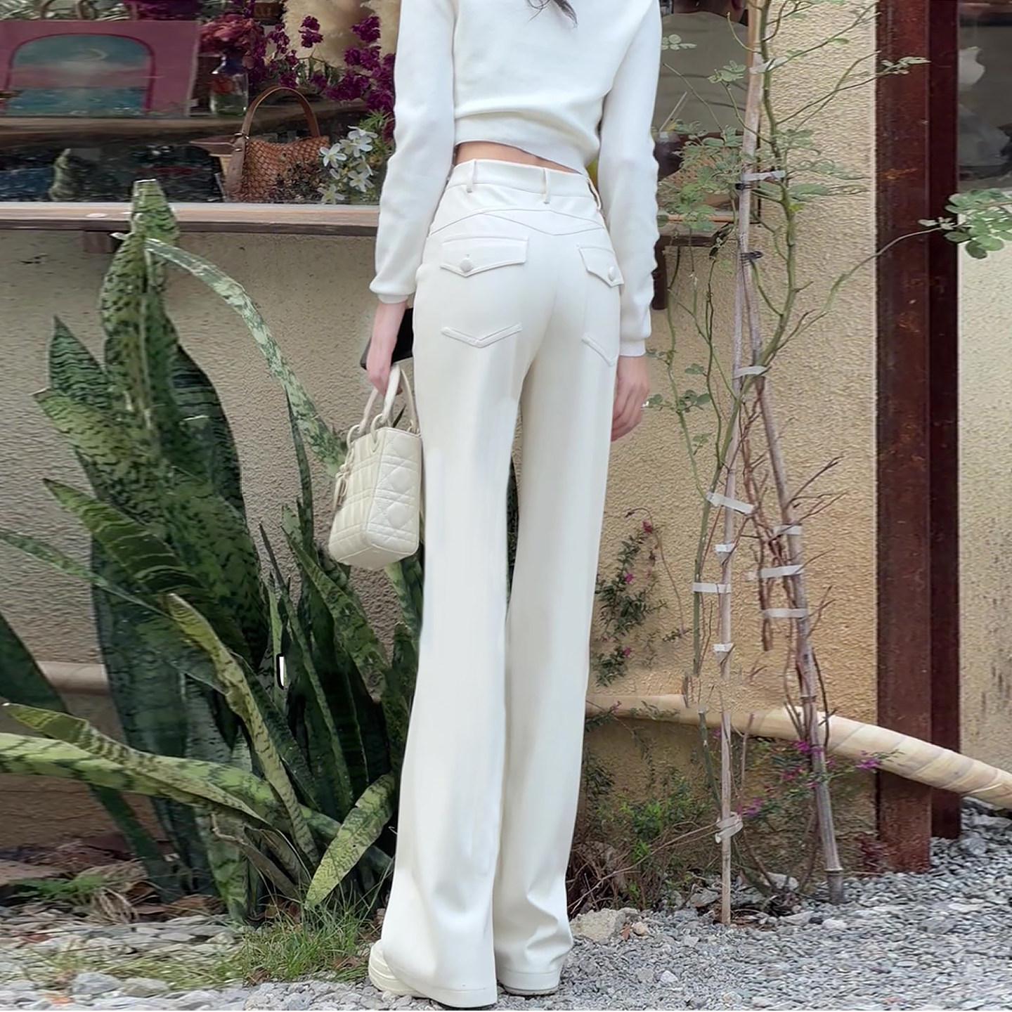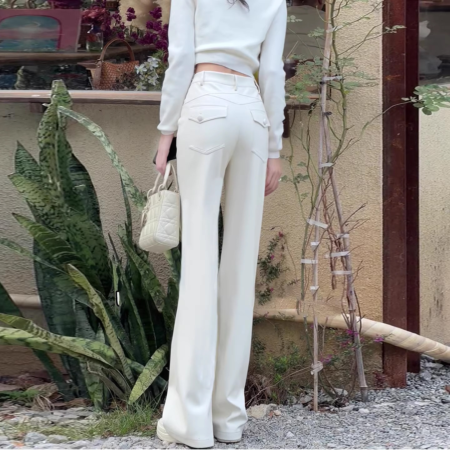 American-Style White Bootcut Pants for Women, Spring 2026 New Model, Plus Size, High-Waisted, Slimming, Fleece-Lined, Thickened Leather Pants