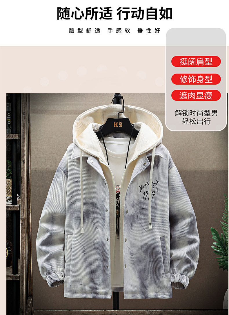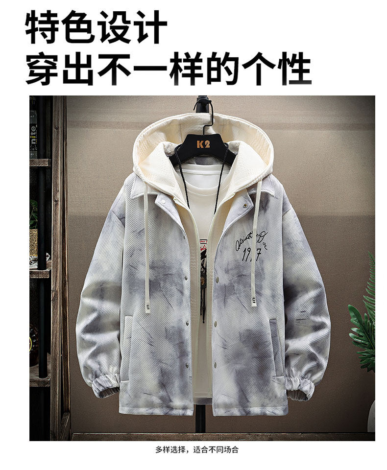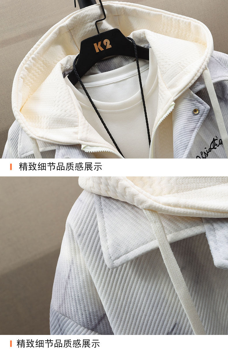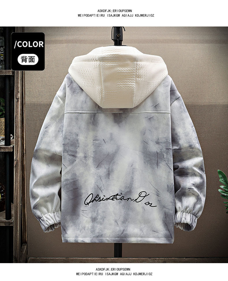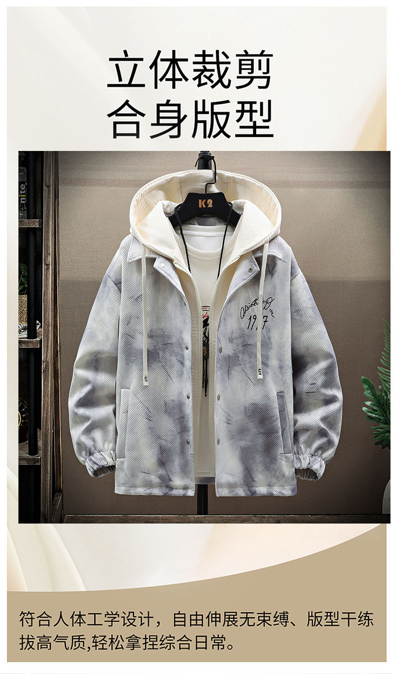 Fake Two-Piece Jacket for Men with Hood, Personalized Print, for Teenagers and Students, 2026 Spring New Arrival, Trendy Cool Jacket for Older Children