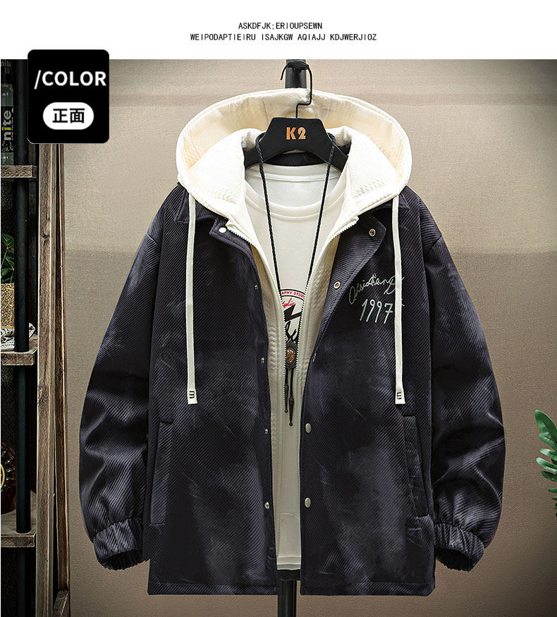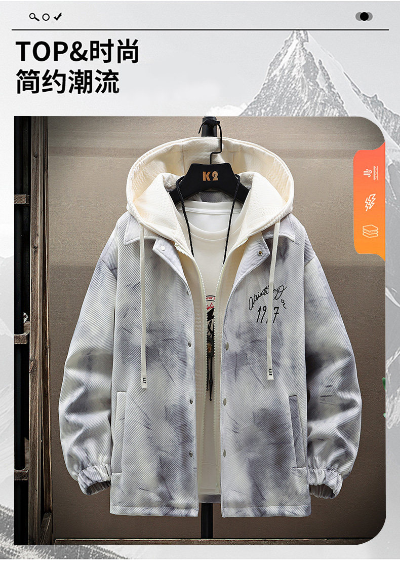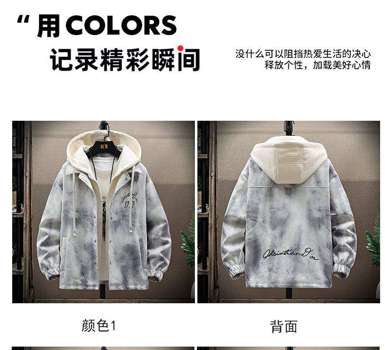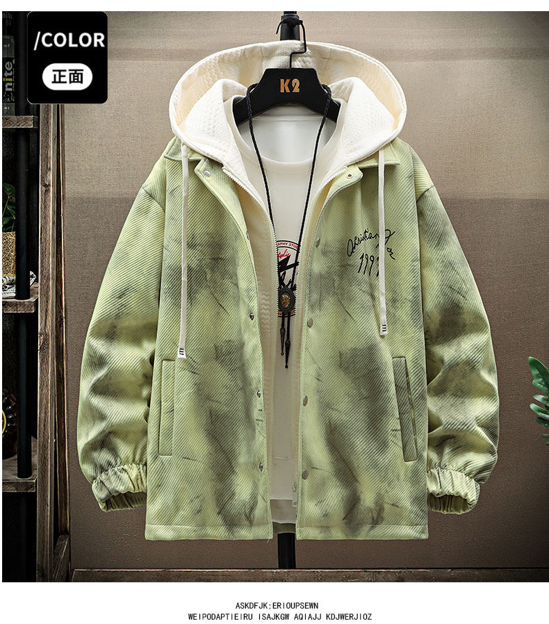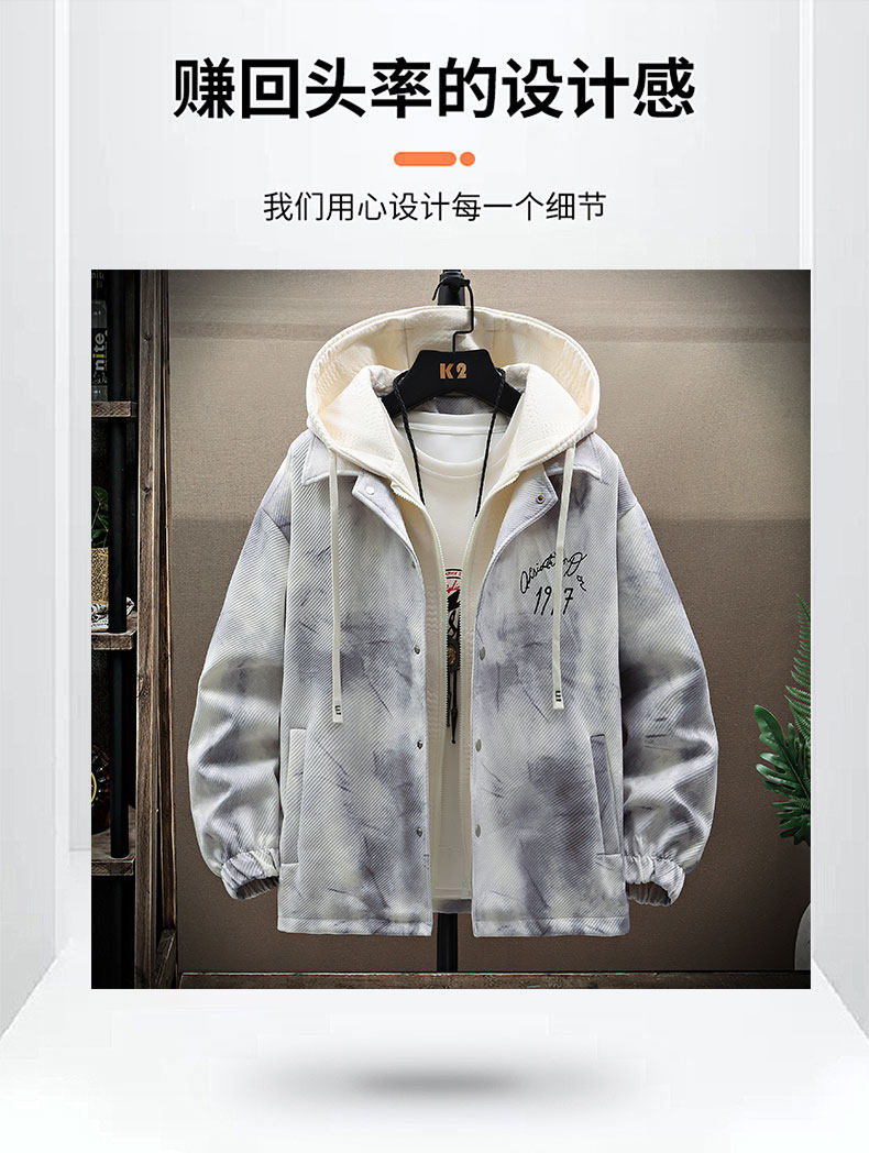 Fake Two-Piece Jacket for Men with Hood, Personalized Print, for Teenagers and Students, 2026 Spring New Arrival, Trendy Cool Jacket for Older Children