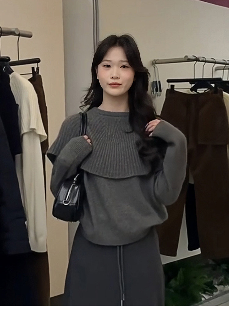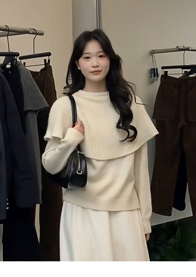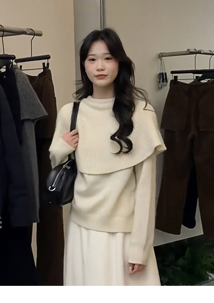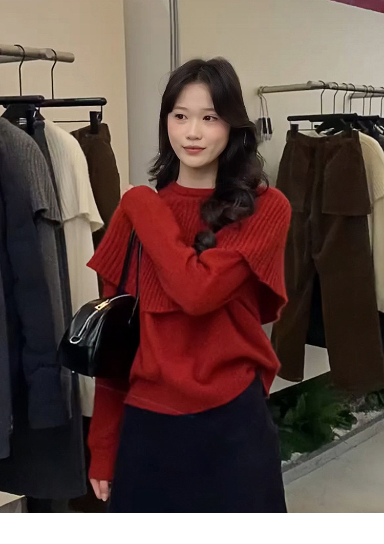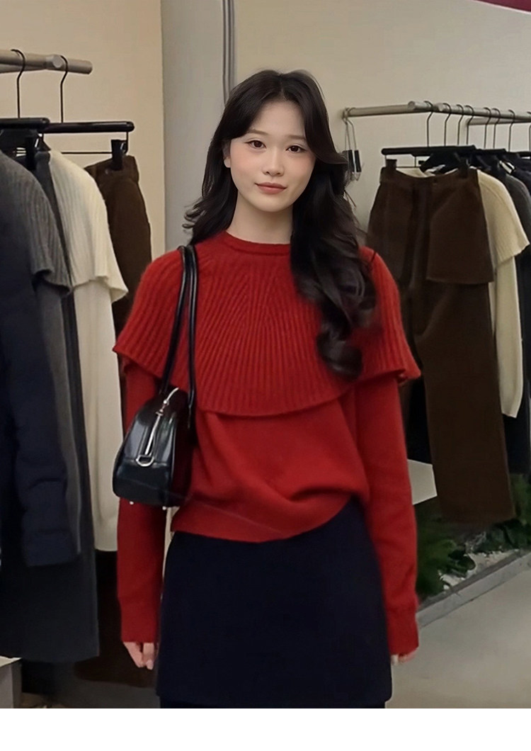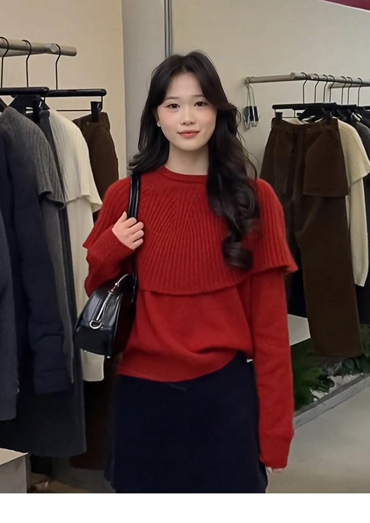 Korean red fake two-piece cape knitted bottoming shirt for women, autumn and winter lazy inner sweater, beautiful top