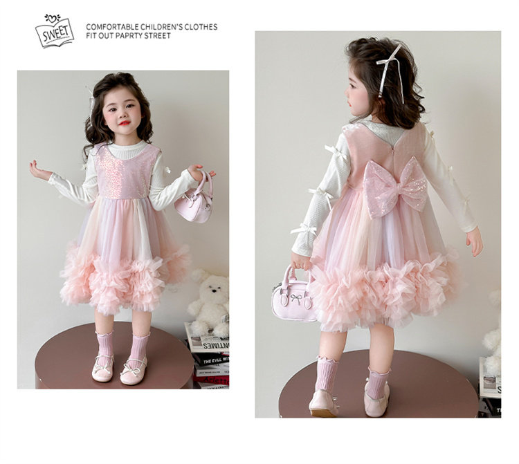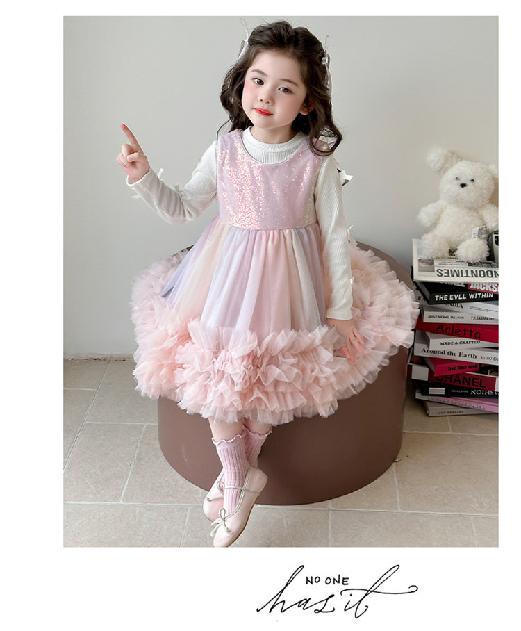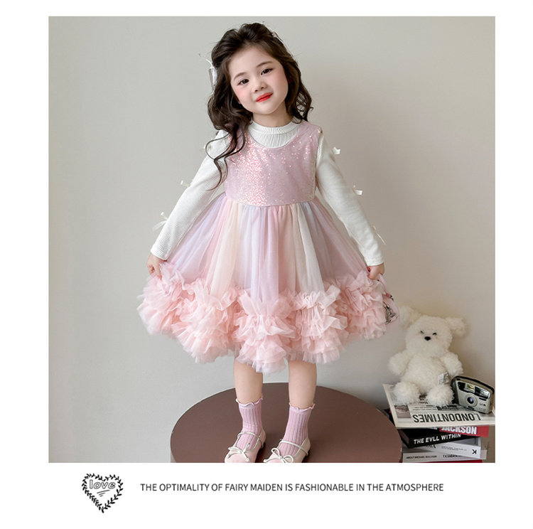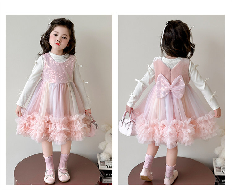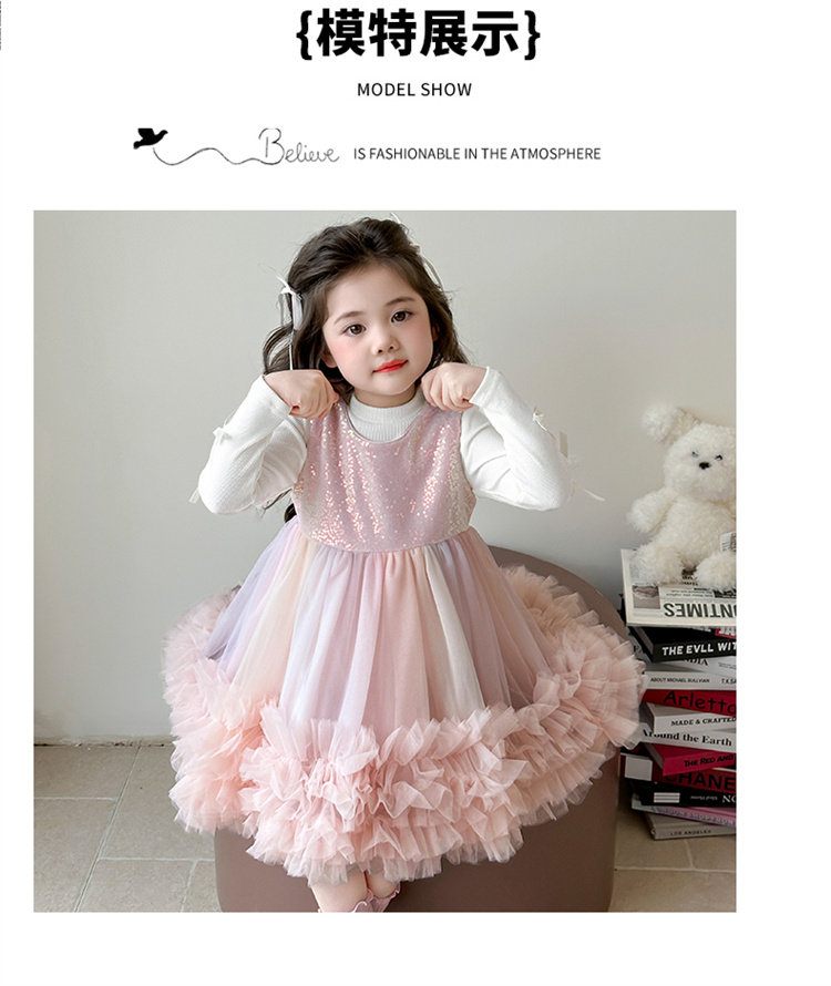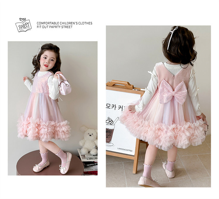 Girls' Dress Set Spring 2026 New Style Kidsren's Stylish Bow Rainbow Cake Dress Baby Princess Dress