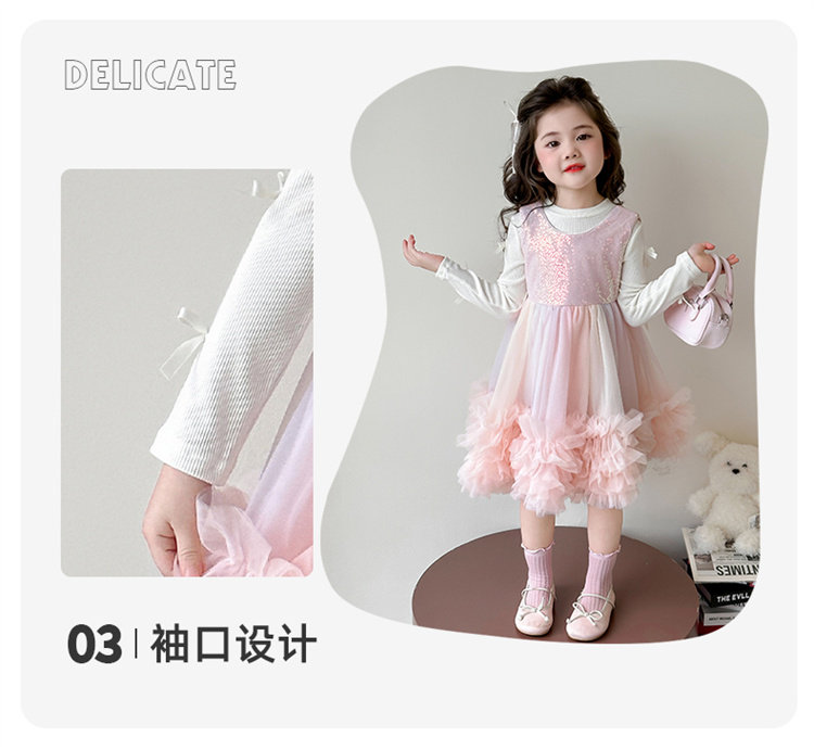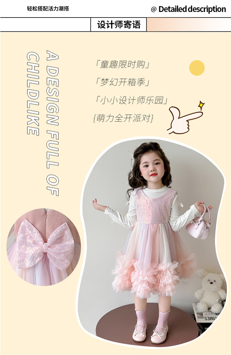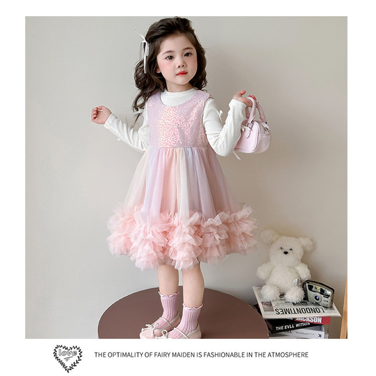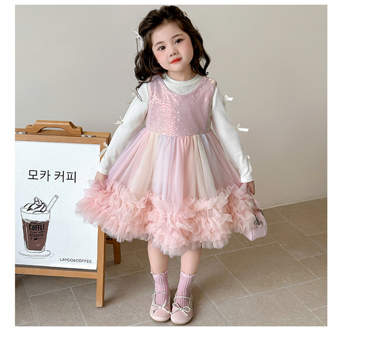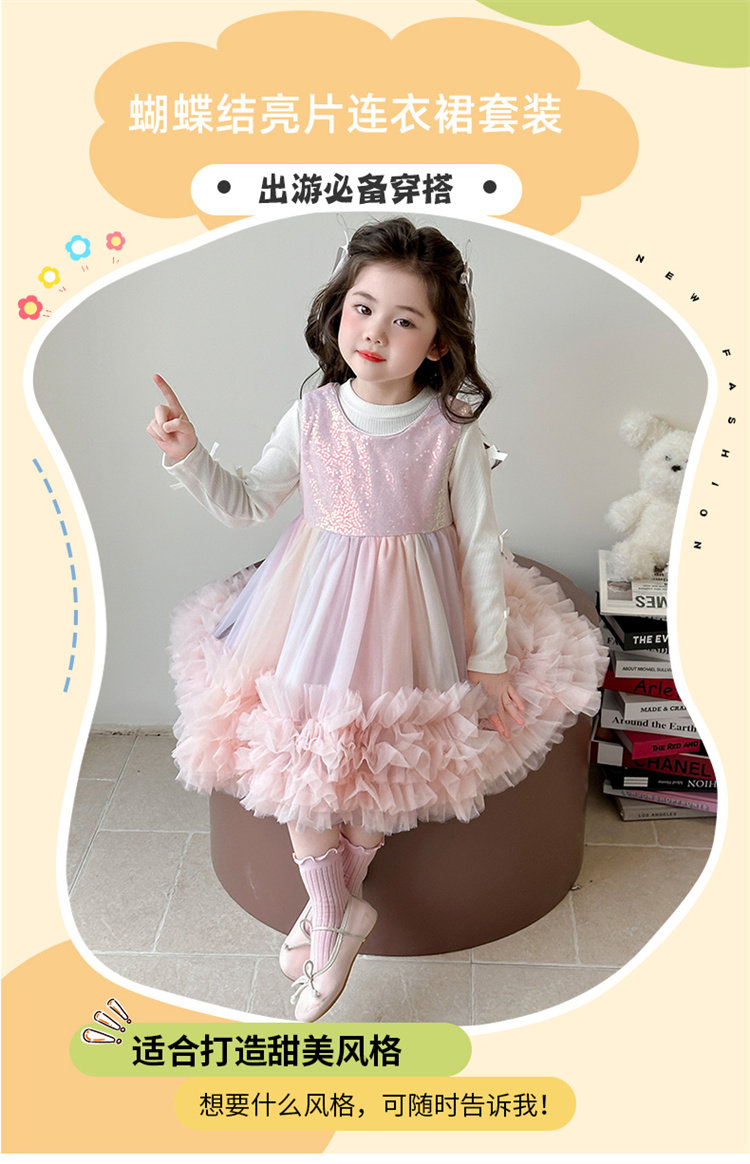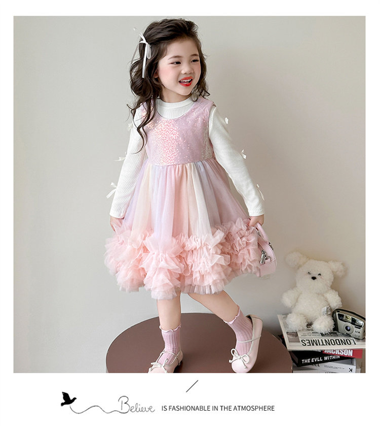 Girls' Dress Set Spring 2026 New Style Kidsren's Stylish Bow Rainbow Cake Dress Baby Princess Dress