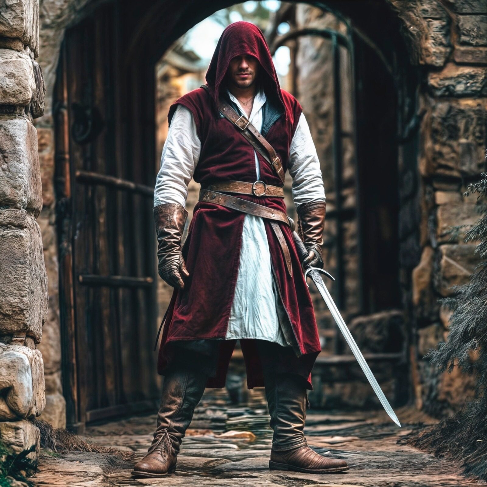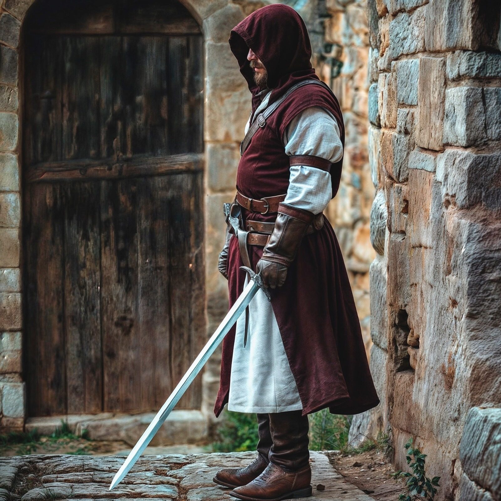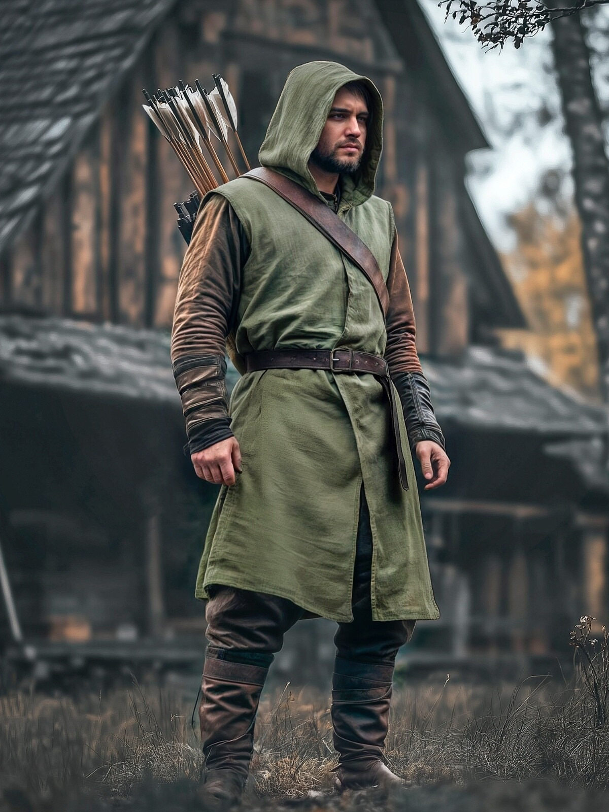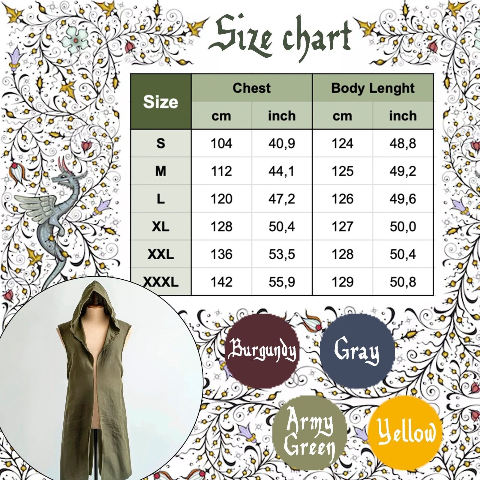Medieval Men's Surf Jacket Linen Hooded Tunic Larp Ranger Role Play