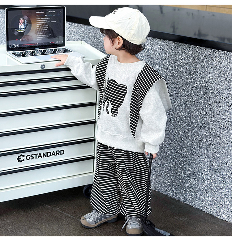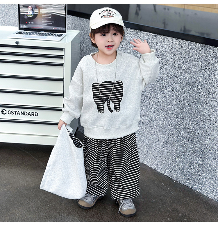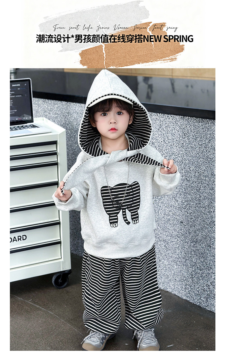 Children's Sweatshirt Set, Spring and Autumn 2026 New Style, Boys' Korean Style Cool Sweatshirt Two-Piece Set, Casual Children's Clothing for Boys