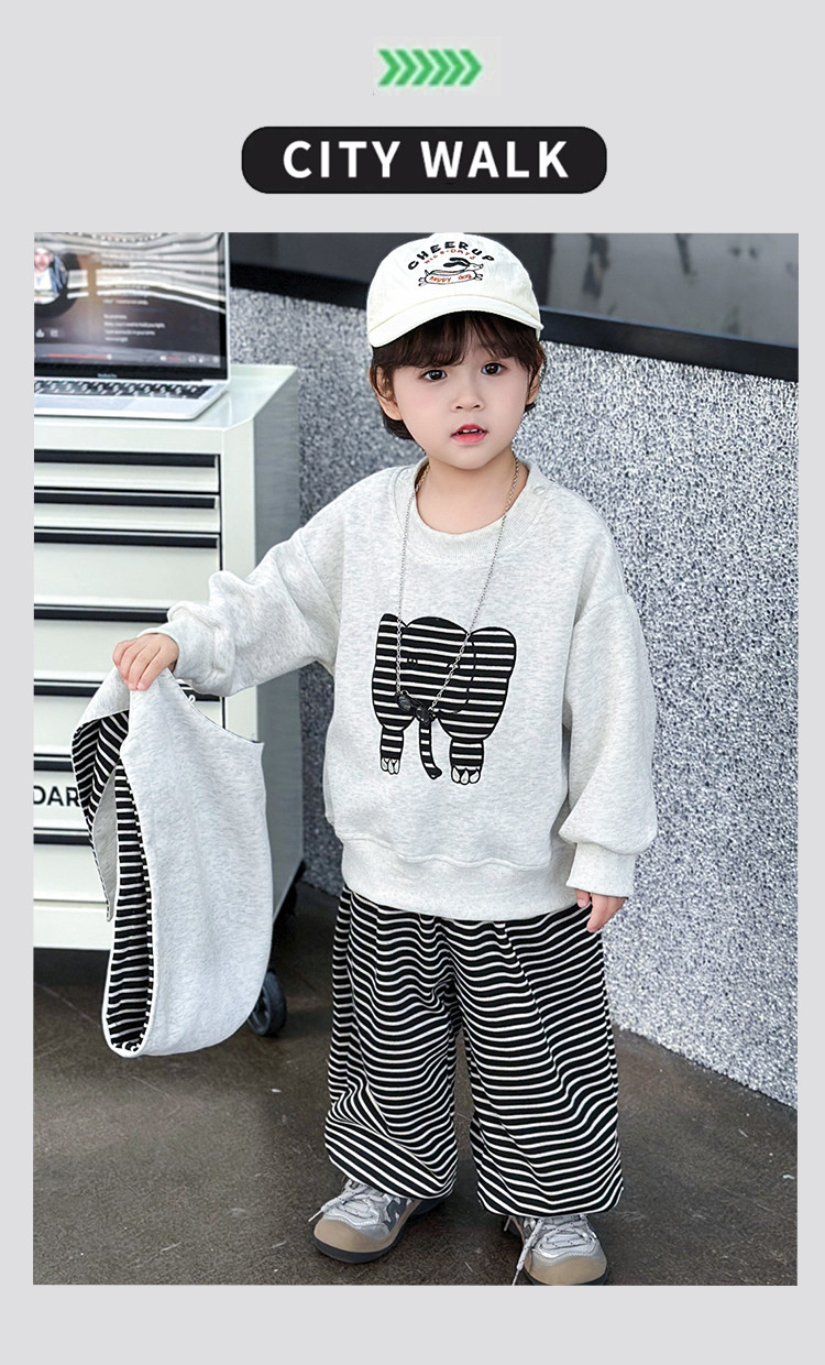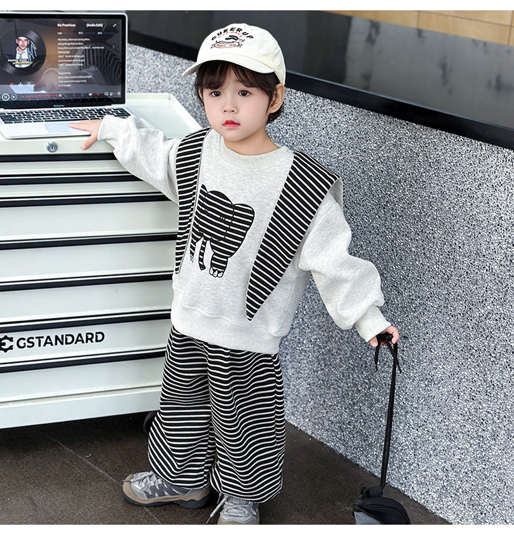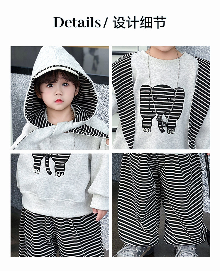 Color Classification Gray - Little Elephant Embroidered Set [Detachable Hat]