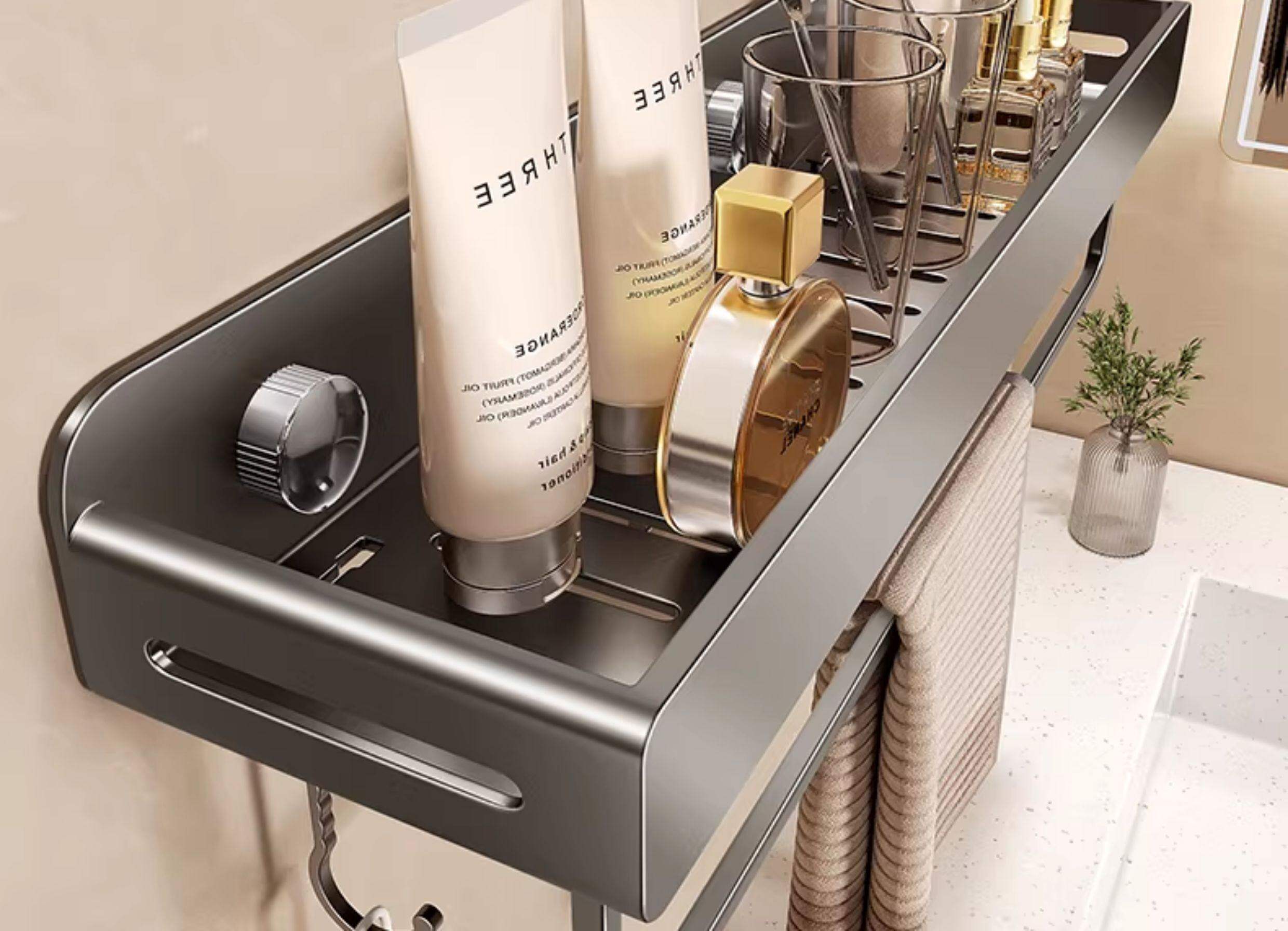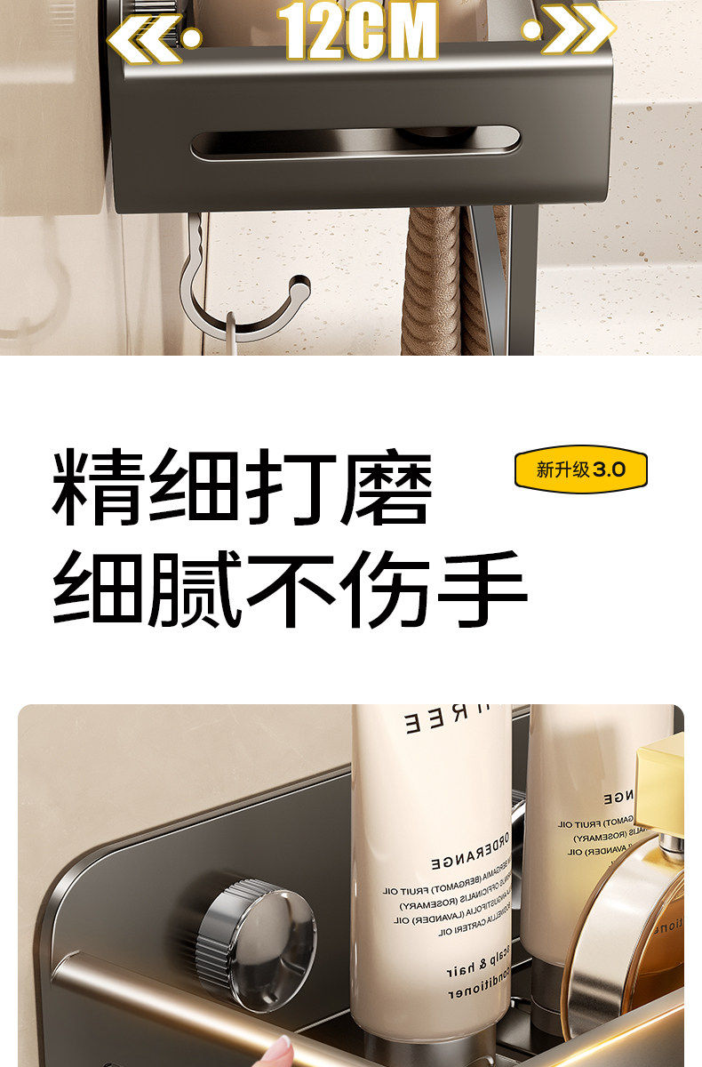 German High-End Bathroom Storage Rack, No-Drill Wall-Mounted Washroom Toilet Balcony Storage Shelf