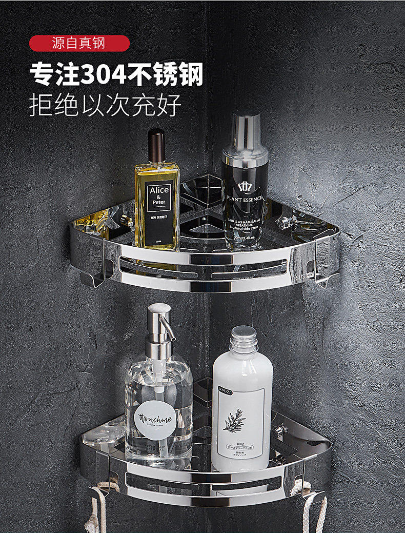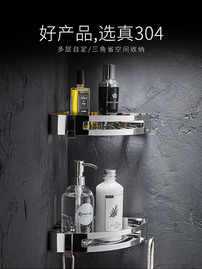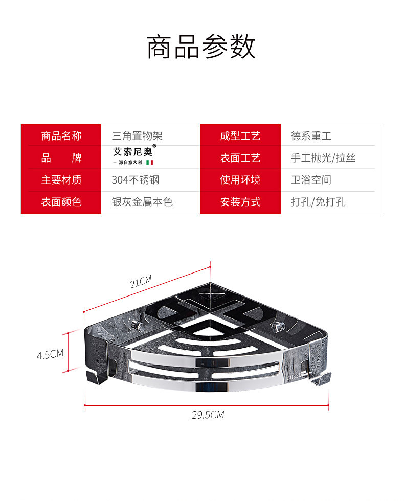 Italian Aisonio Bathroom Shelf, No-Drill Wall-Mounted Triangle Rack, 304 Stainless Steel