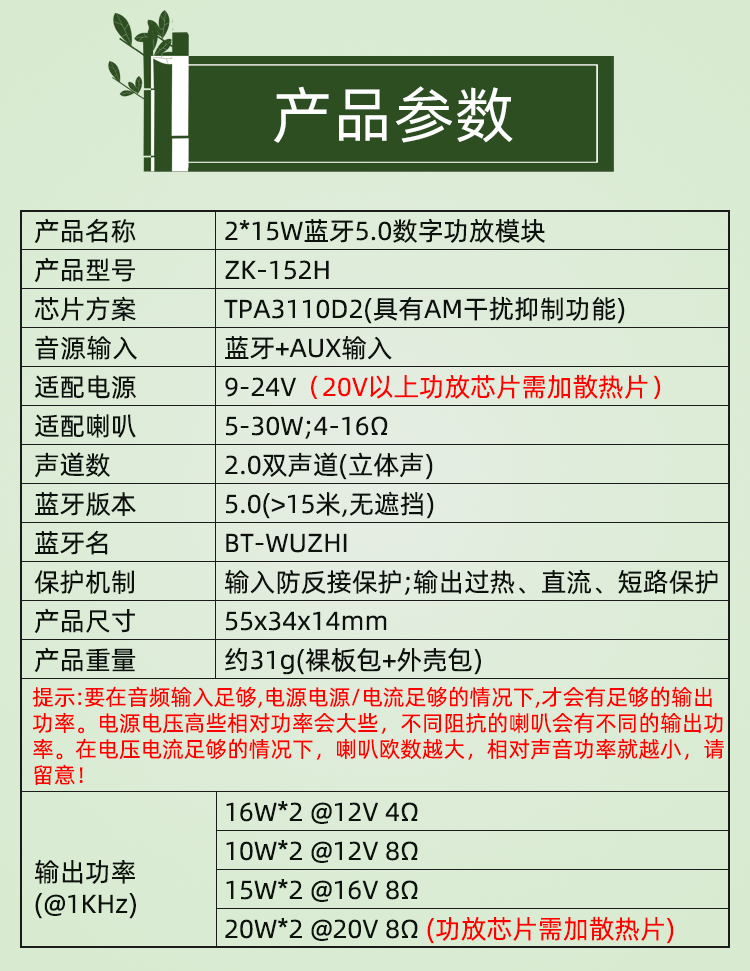 Wuzhiaudio10W/15W/20W Dual-Channel Stereo Mini Bluetooth Digital Amplifier Board Module 9/12V