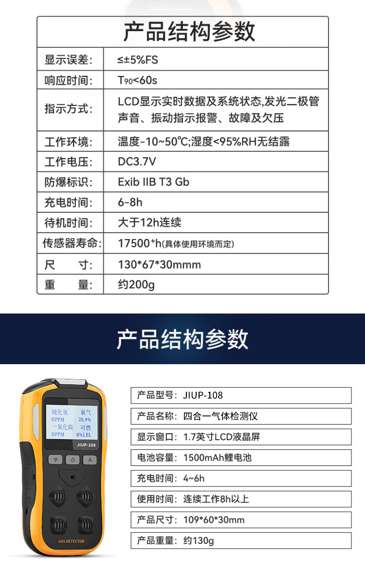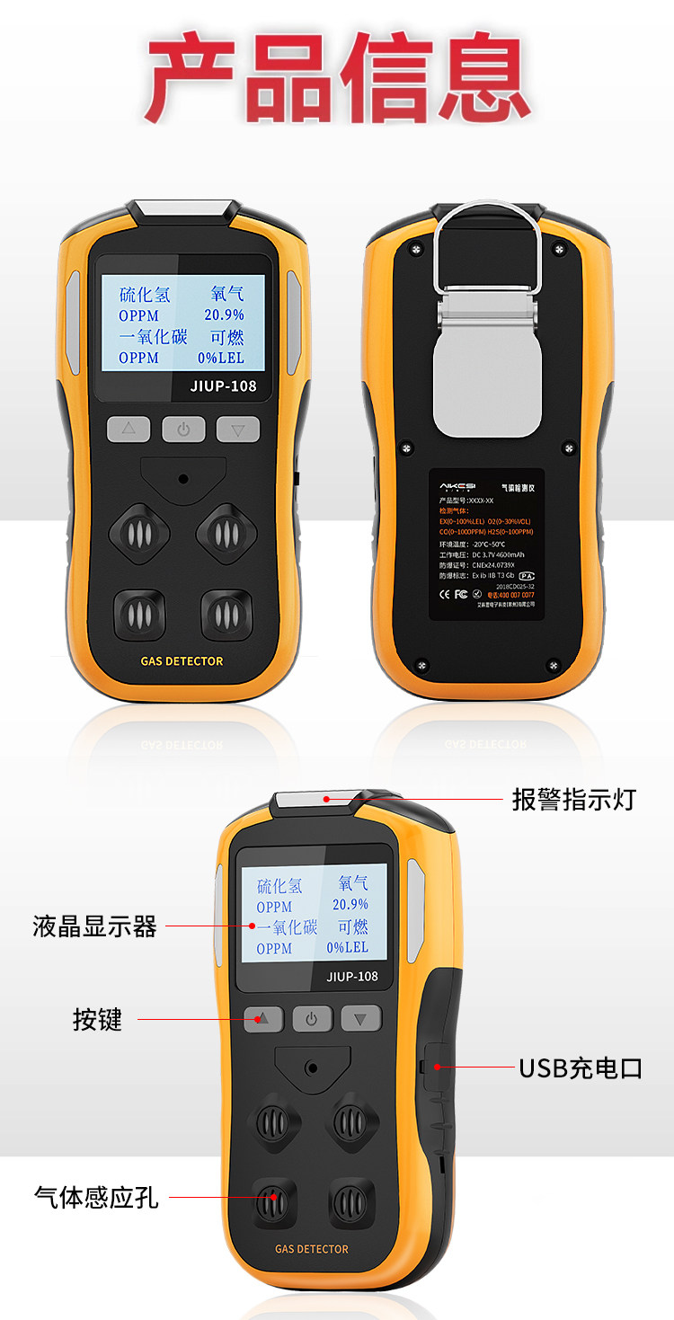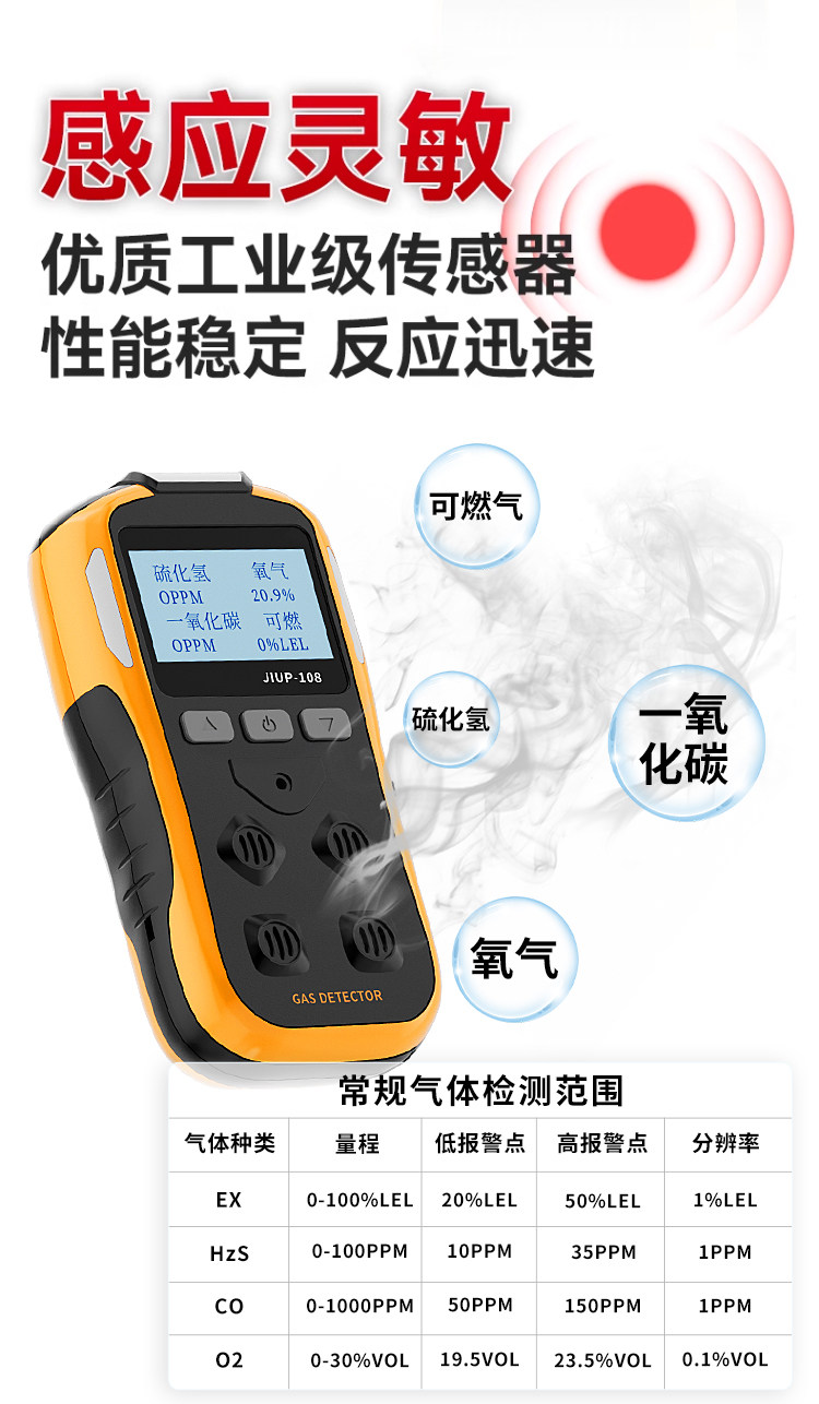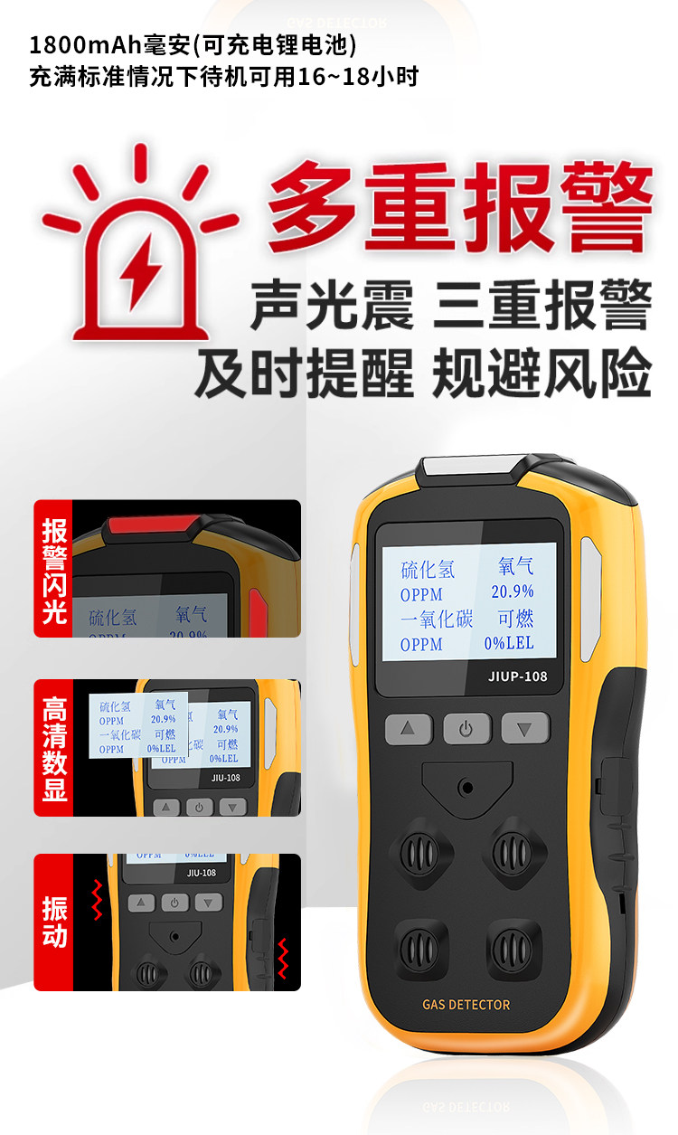 Portable Oxygen and Explosion Detection Instrument, Gas Detector for Ship Cabins, Four-In-One Limited Space Concentration Detection Alarm