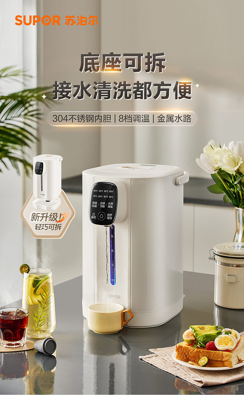 Supor Constant Temperature Electric Kettle for Home Use, Large Capacity Electric Water Boiler, Smart Kettle with Integrated Insulation