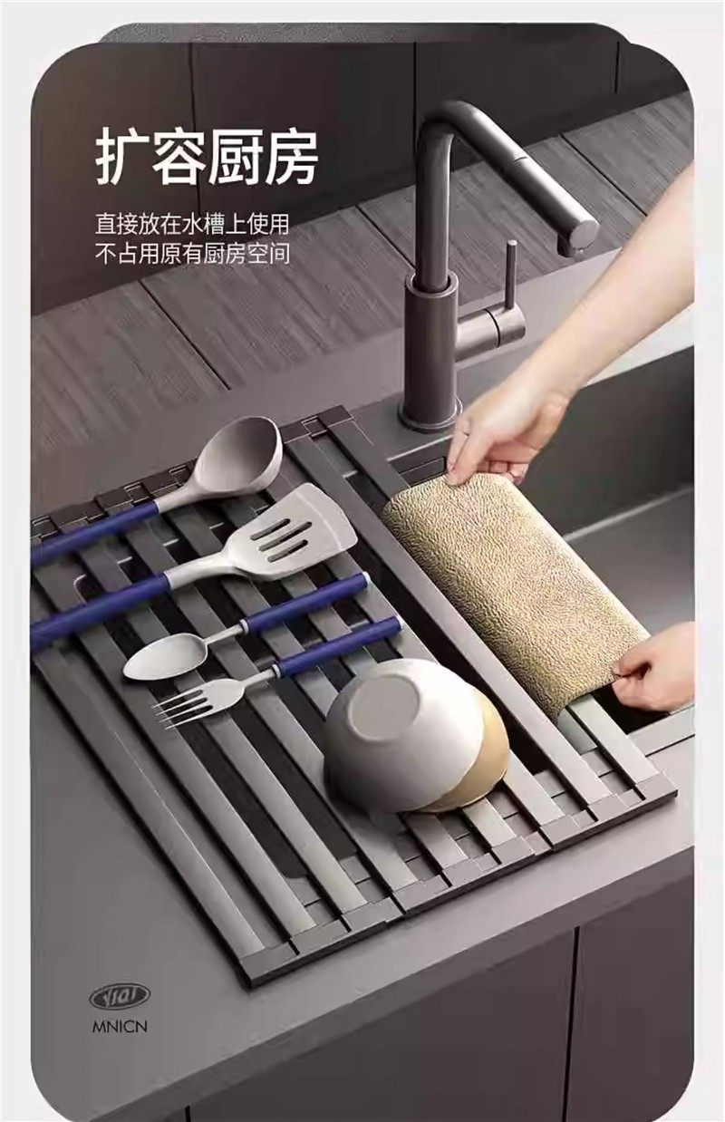Drain Rack 304 Stainless Steel Kitchen Sink Bowl Rack Storage Rack Dishwashing Basin Dish Storage Basket Clothing Storage Bag