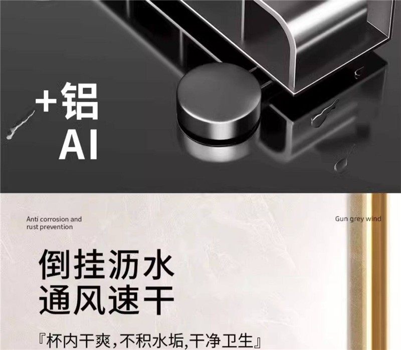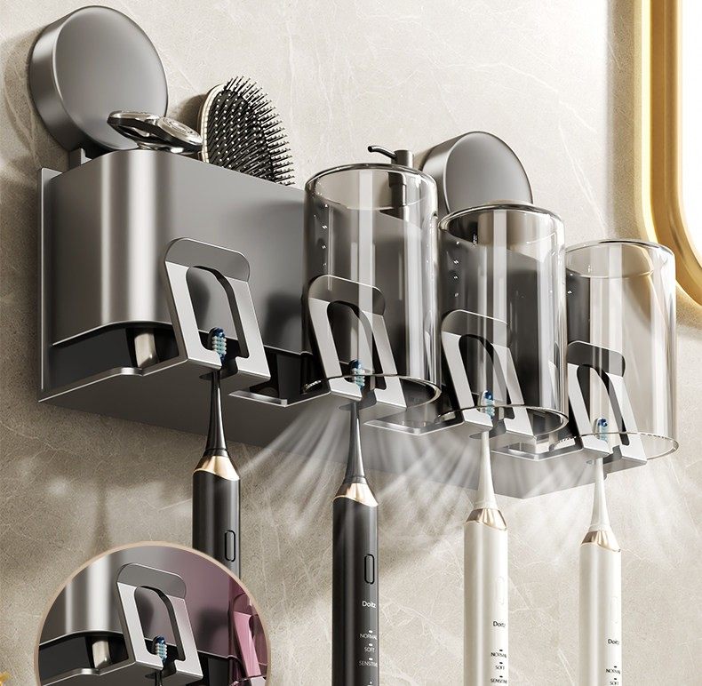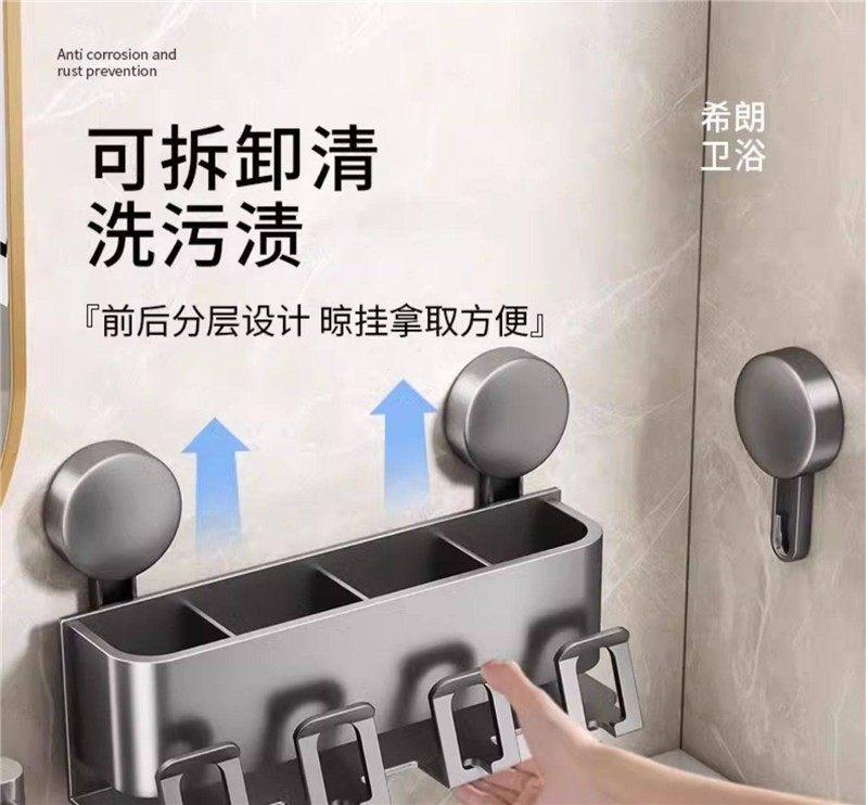 Bathroom Space Aluminum Toothbrush Holder Wall-Mounted Suction Cup Style Light Luxury Minimalist Toothbrush and Toothpaste Storage Rack Mouthwash Cup Hanger