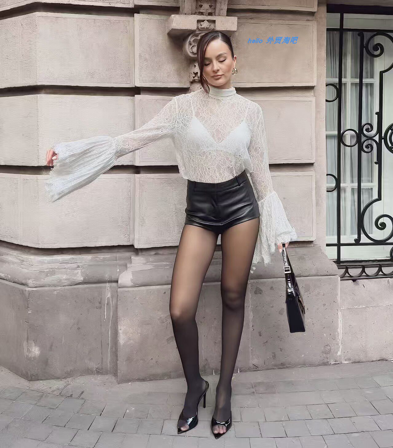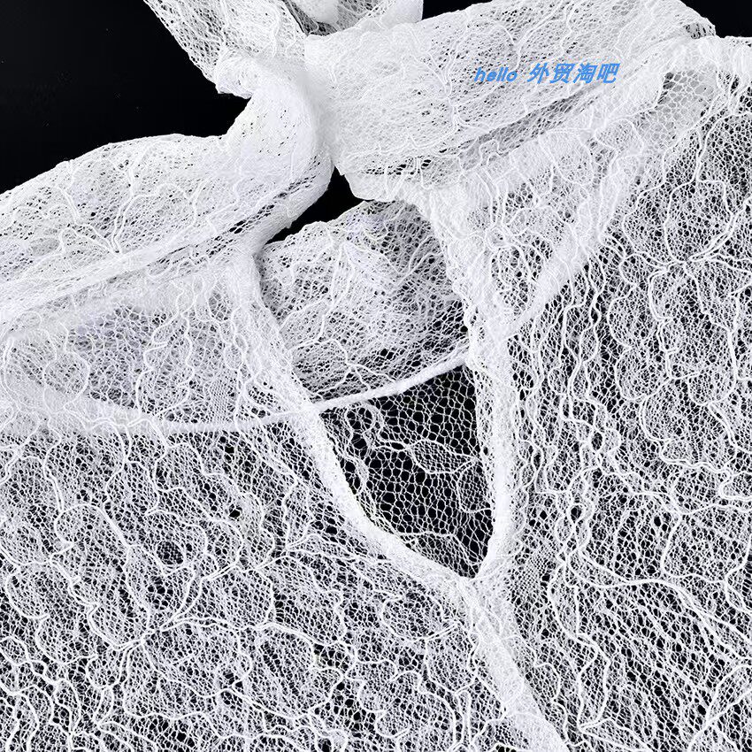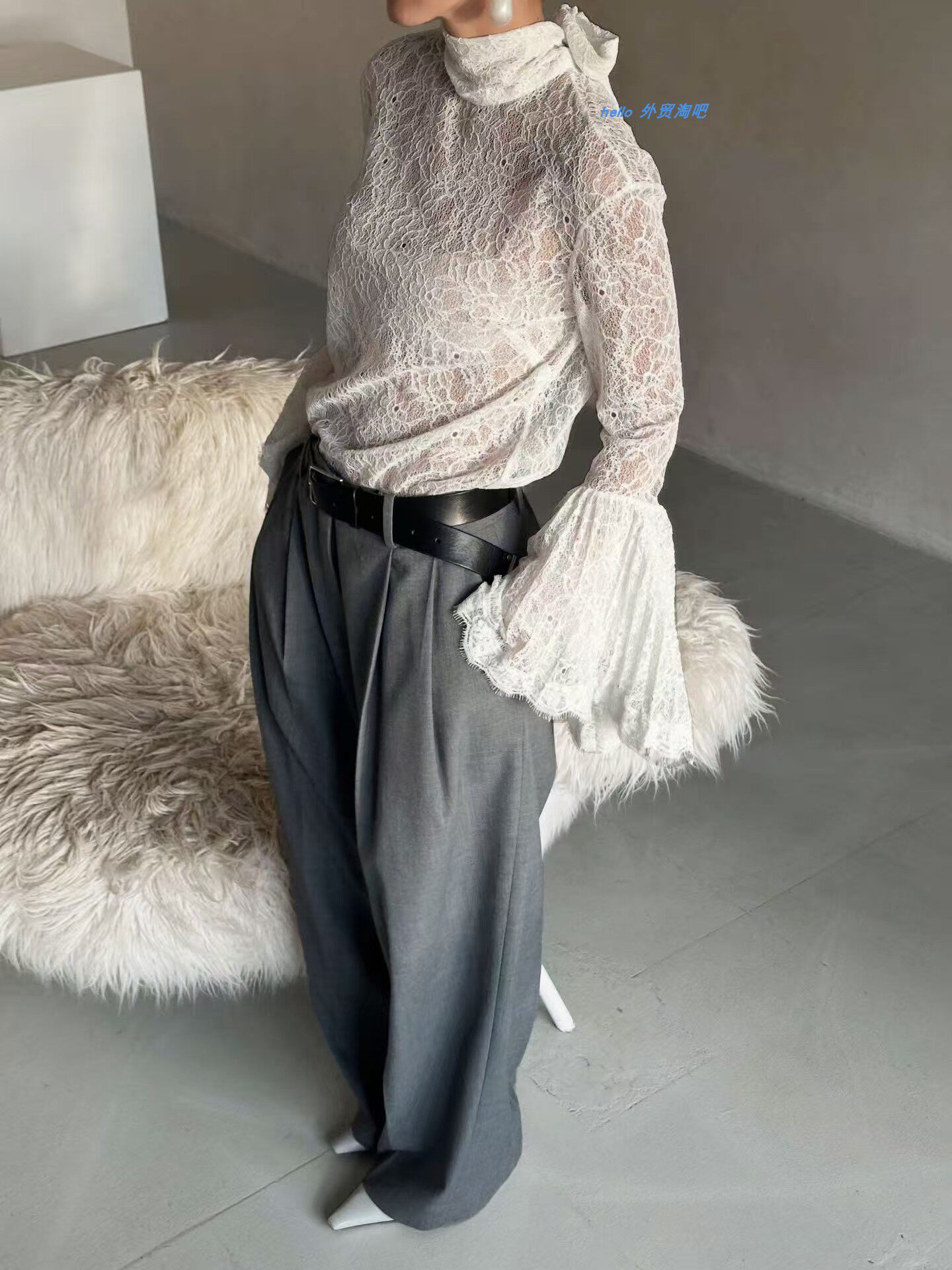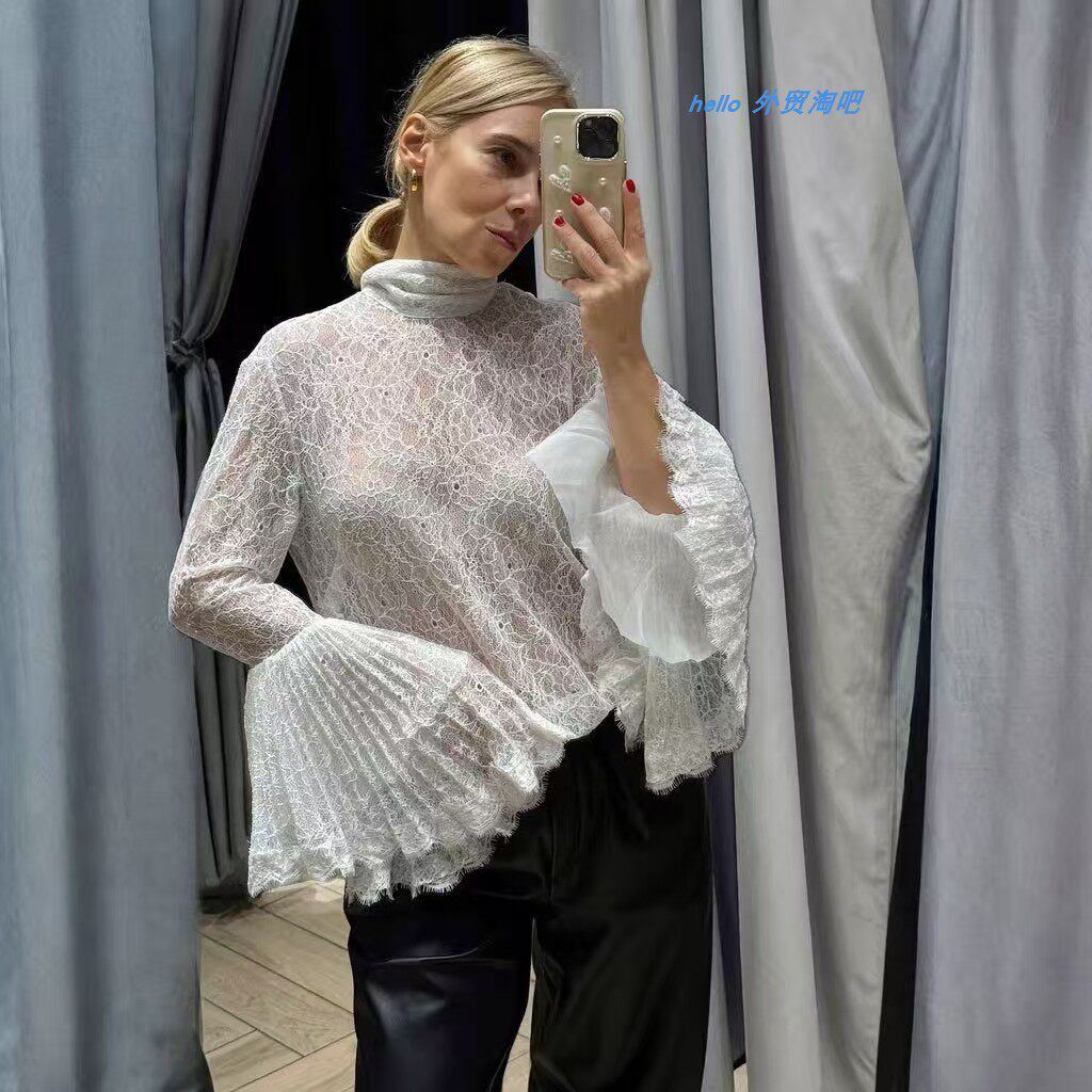 New French-Style Sexy Sheer Lace Blouse with Ruffle Sleeves, Elegant Top Perspective Sexy Top