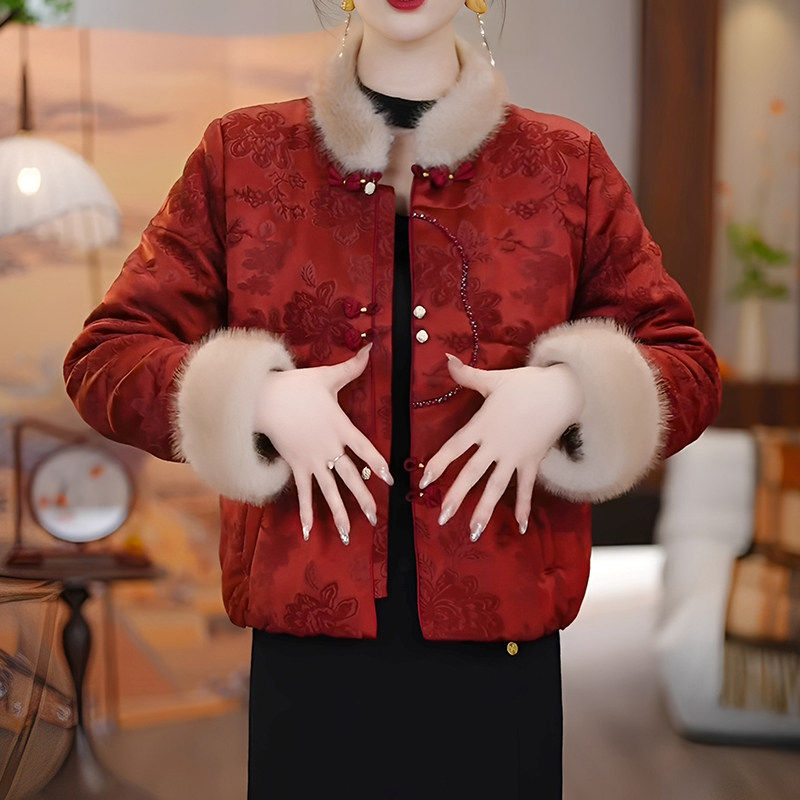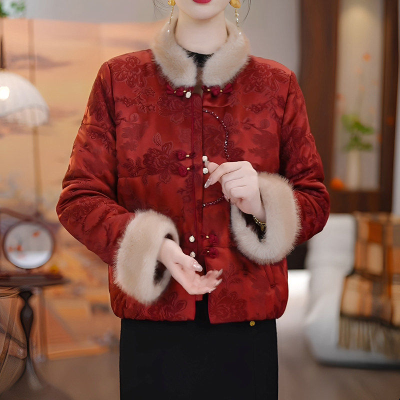 Women's winter jacket 2026 new Chinese style retro fashion red temperament thickened warm short cotton coat