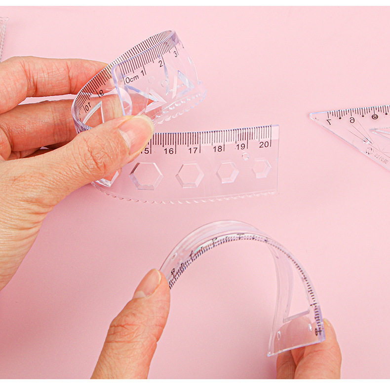 Elementary School Students' Four-Piece Set of Rulers, Non-Stick, Non-Adhesive, Rubber Rulers, Children's Measuring and Drawing Transparent Rulers