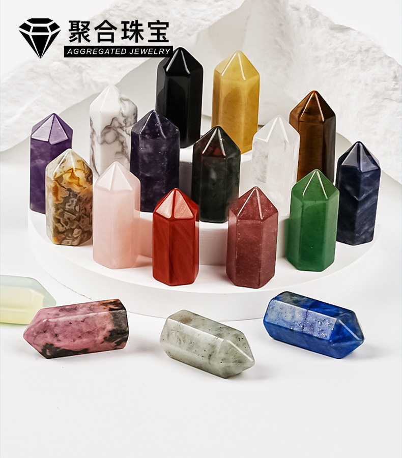 Cross-Border Best-Selling Natural Crystal Hexagonal Single-Pointed Pillar from the East China Sea, Polished Raw Stone, Various Materials, Crystal Pillar Decorative Ornaments