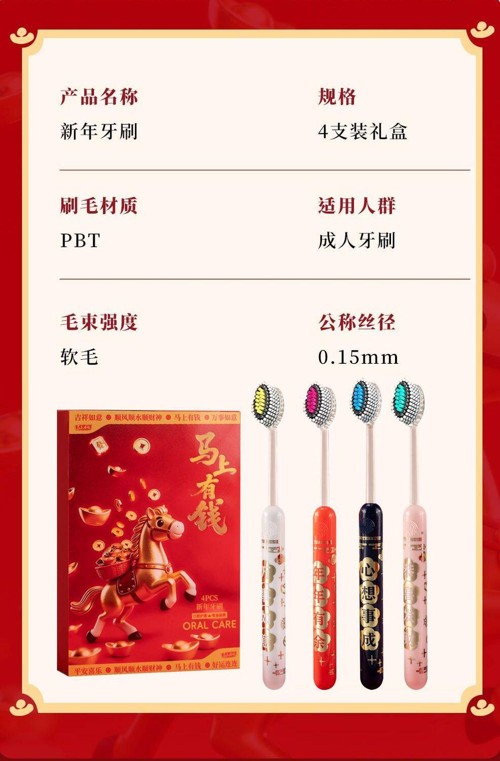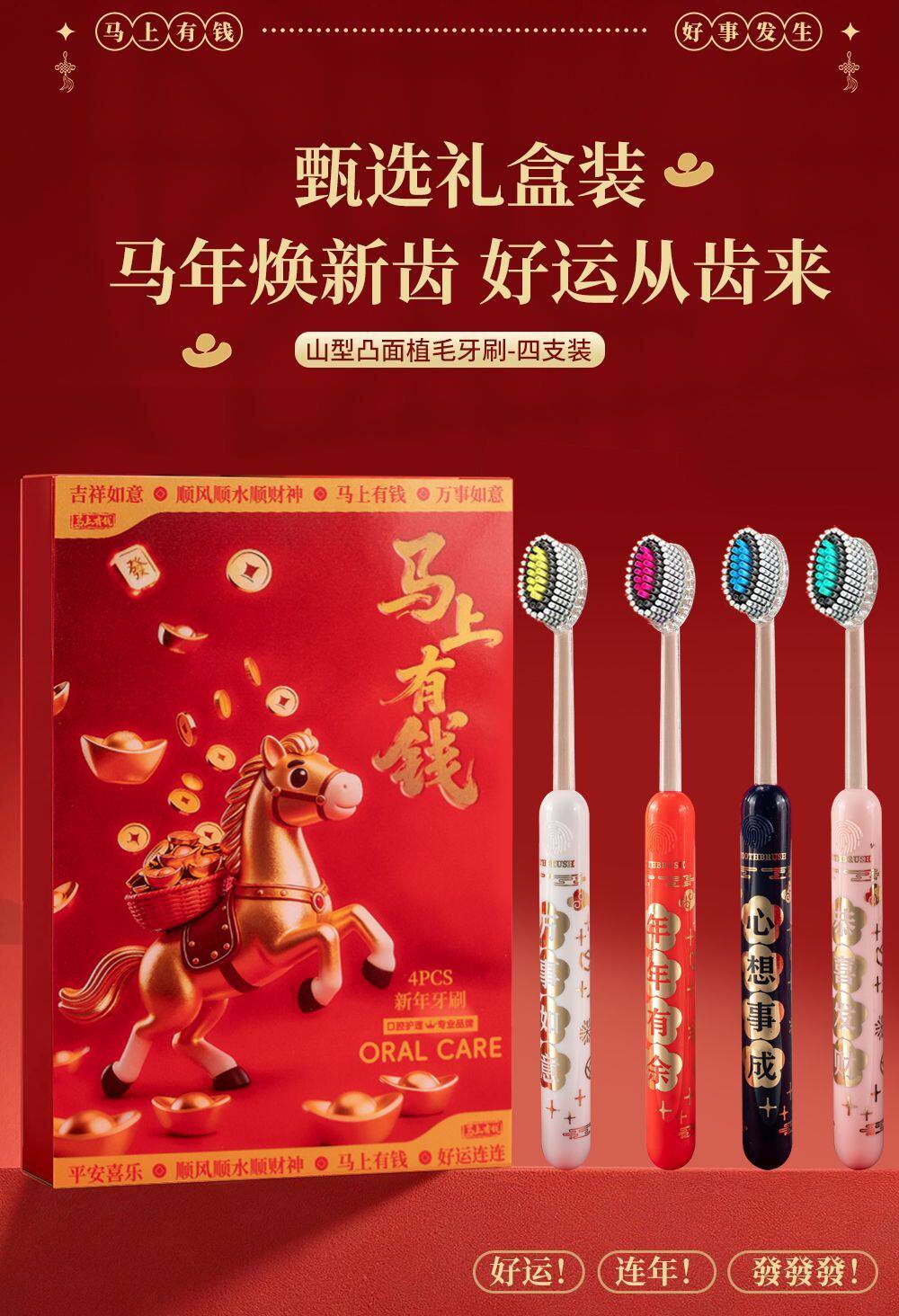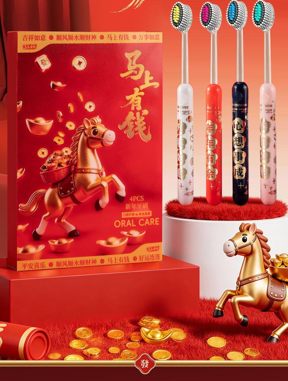 [Year of the Horse Limited Edition Gift Box] New Year's Festive Embossed Soft-Bristled Toothbrush for Efficient Teeth Cleaning and Gum Protection, Suitable for Adults, Home Use, and Gift Giving