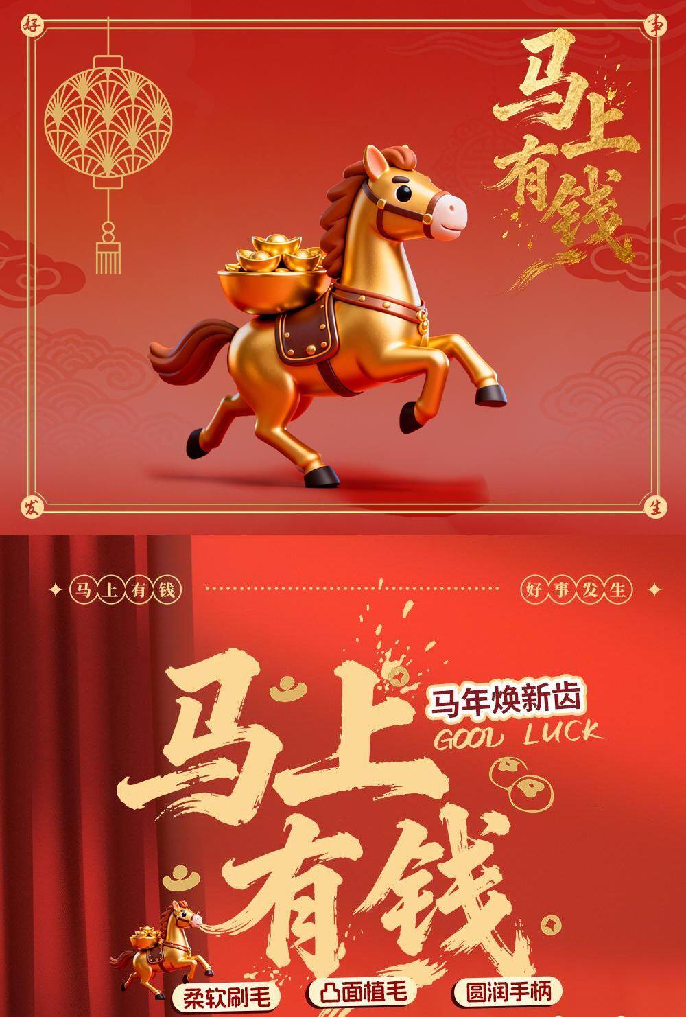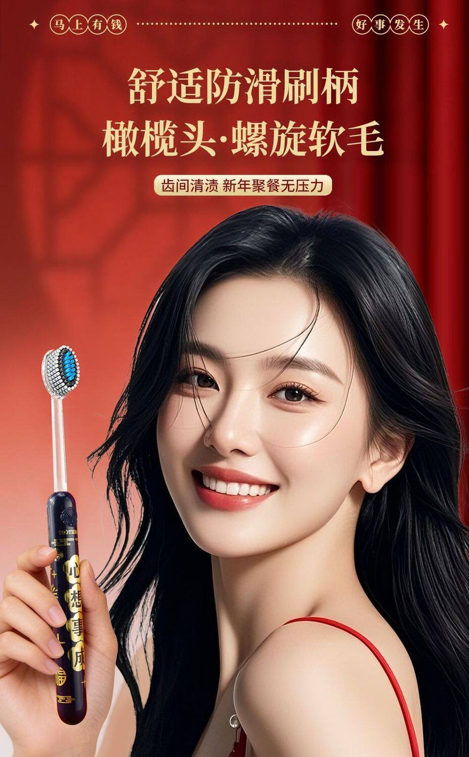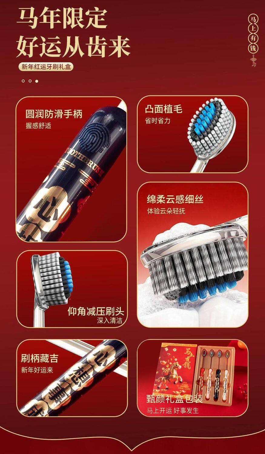 [Year of the Horse Limited Edition Gift Box] New Year's Festive Embossed Soft-Bristled Toothbrush for Efficient Teeth Cleaning and Gum Protection, Suitable for Adults, Home Use, and Gift Giving