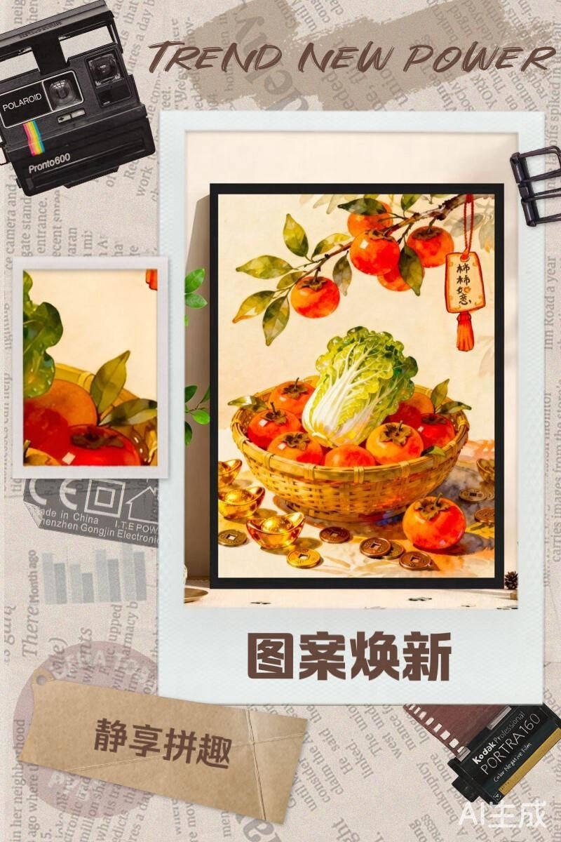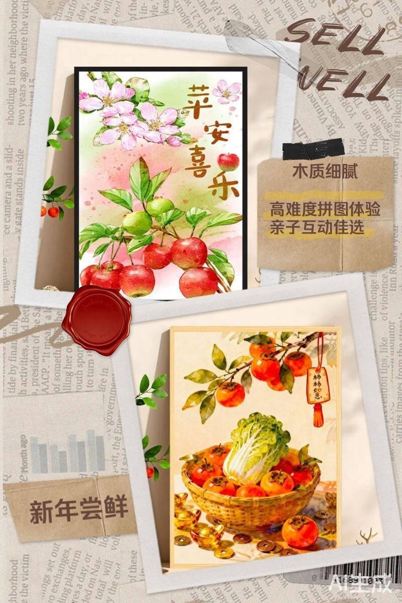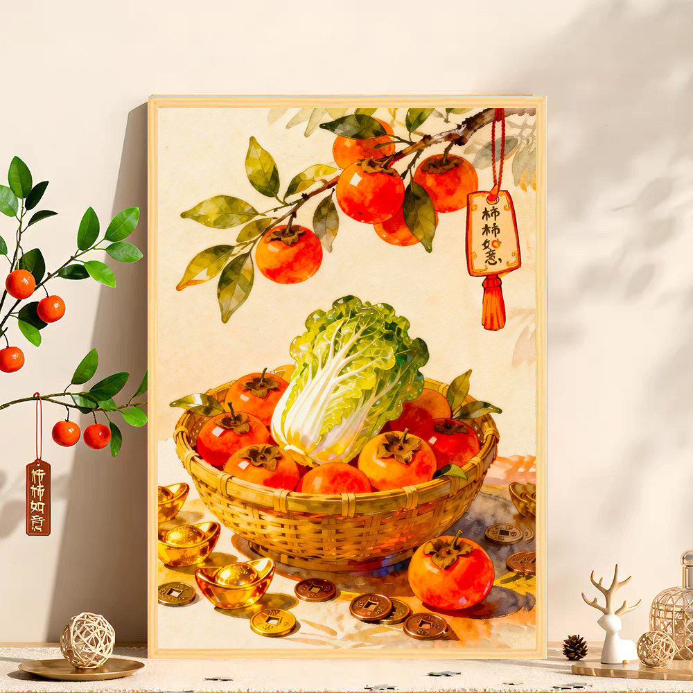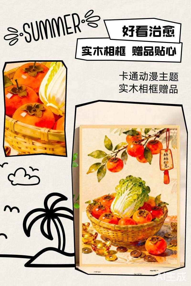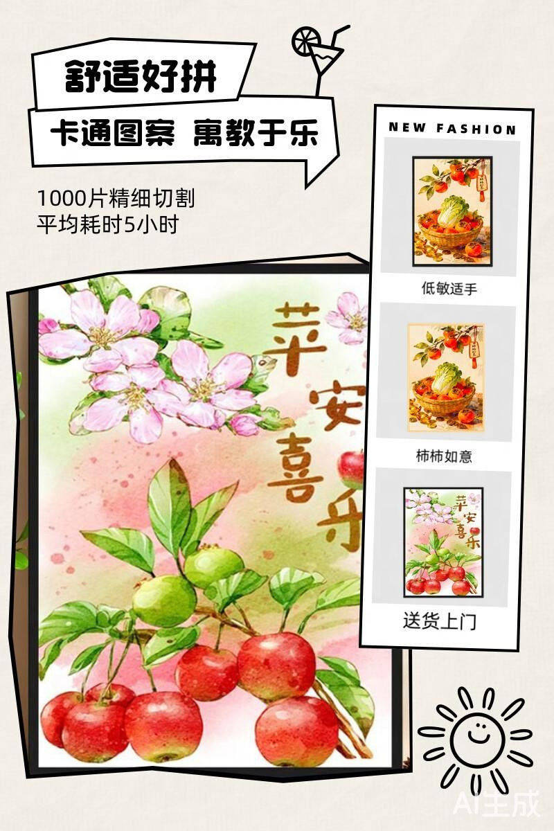 Highly Difficult Puzzle for Adults, 1000 Pieces, Persimmon Good Luck Cartoon Children's Toy, New Year's Fortune Series, 300 Pieces