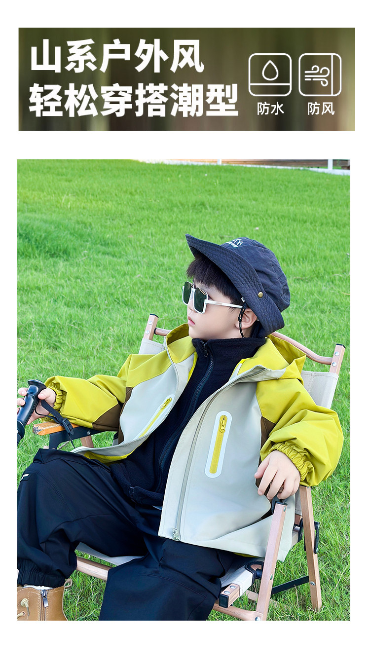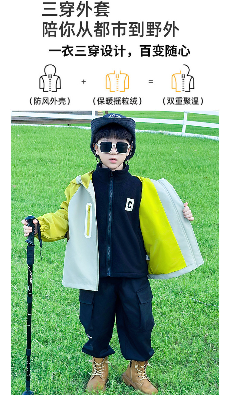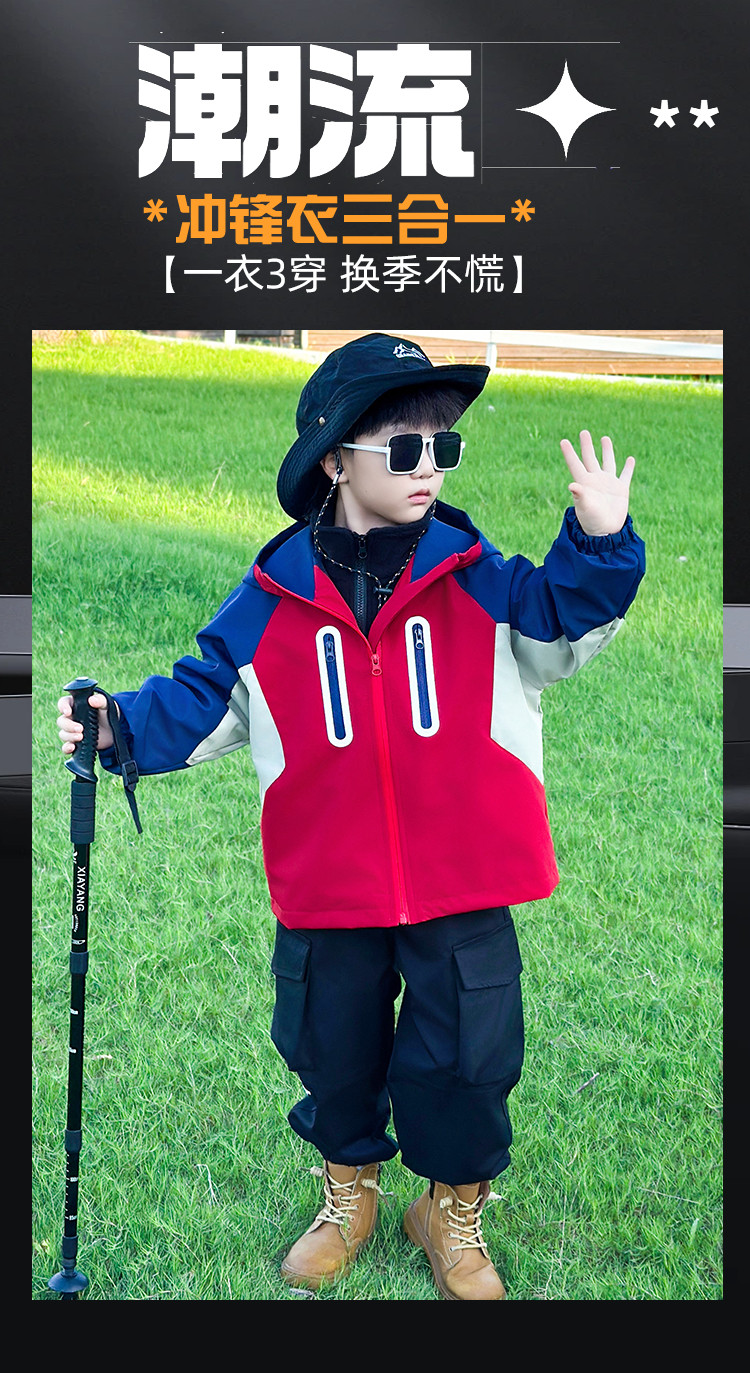 Boys' Outdoor Sports Windbreaker Jacket, Spring and Autumn Style, Three-In-One 2026 New Model, Children's Fashionable Stylish Set