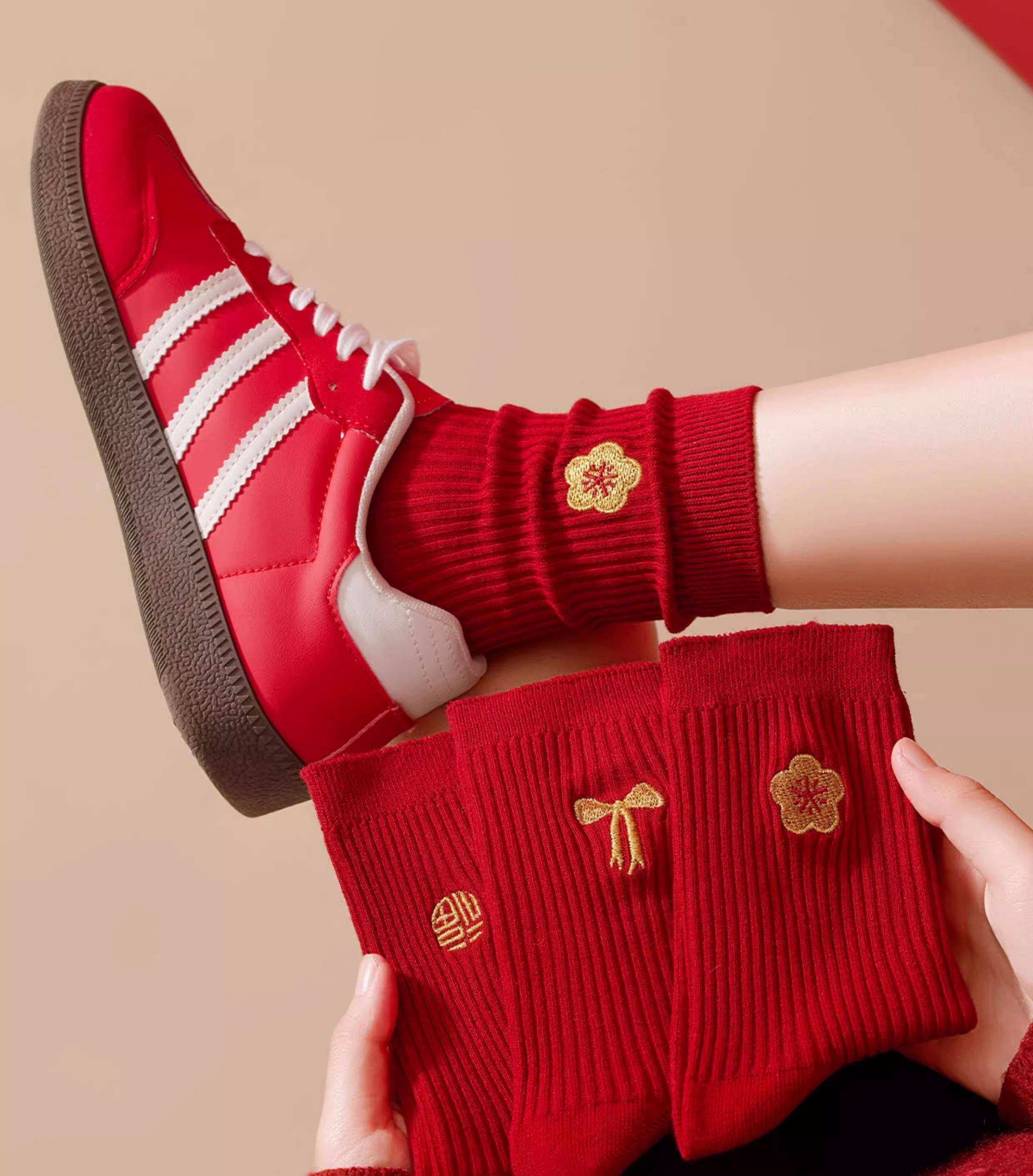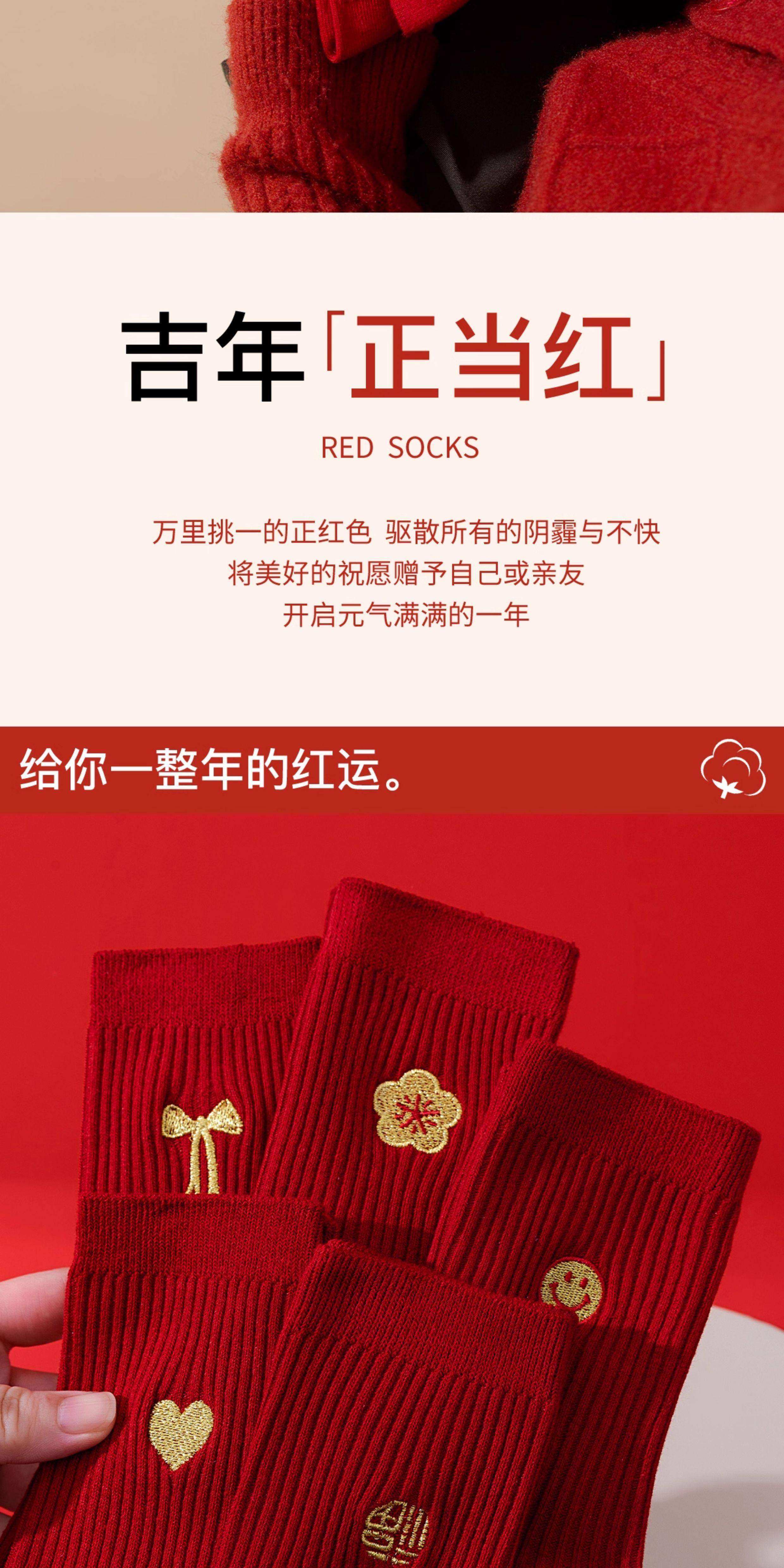 2026 Year of the Horse Red Socks for Women, Pure Cotton Gift Box Set, New Year Gift, Embroidered Odor-Resistant Mid-Calf Socks
