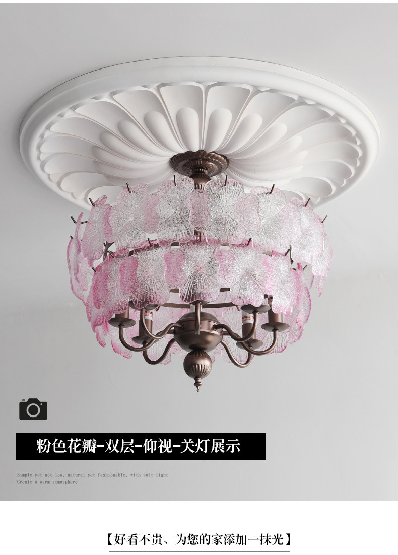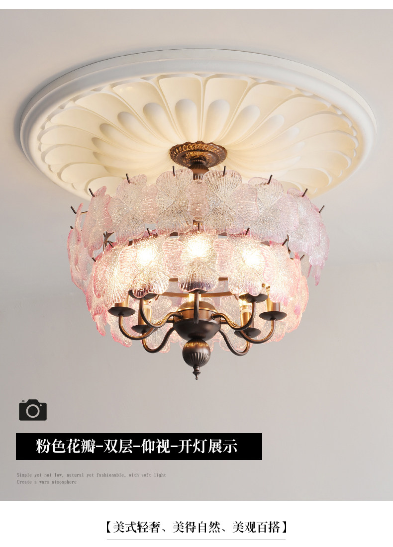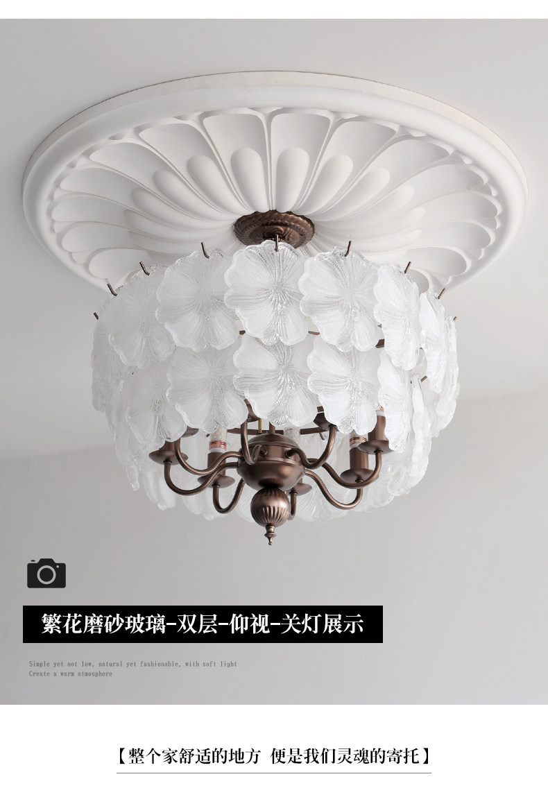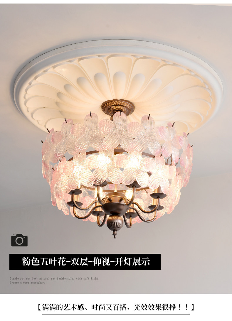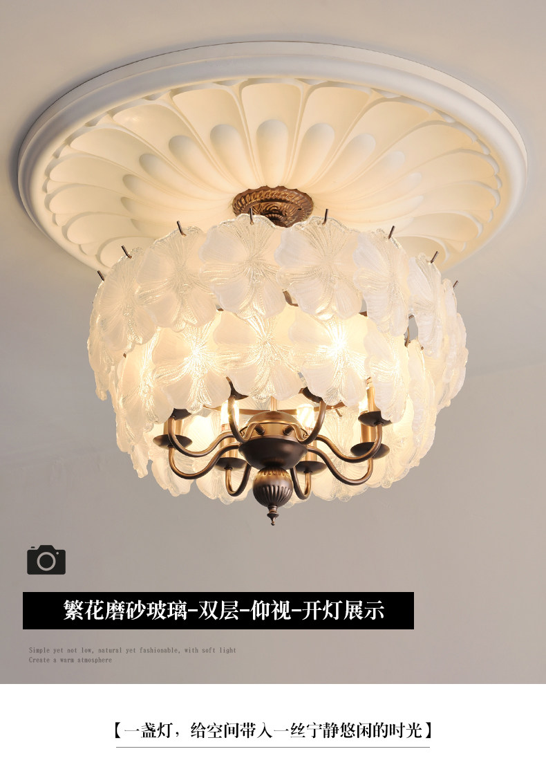 French-Style Vintage Bedroom Ceiling Light, American Retro Glass Petal Lamp for Living Room, Dining Room, Eye-Protection Study, Master Bedroom Lighting