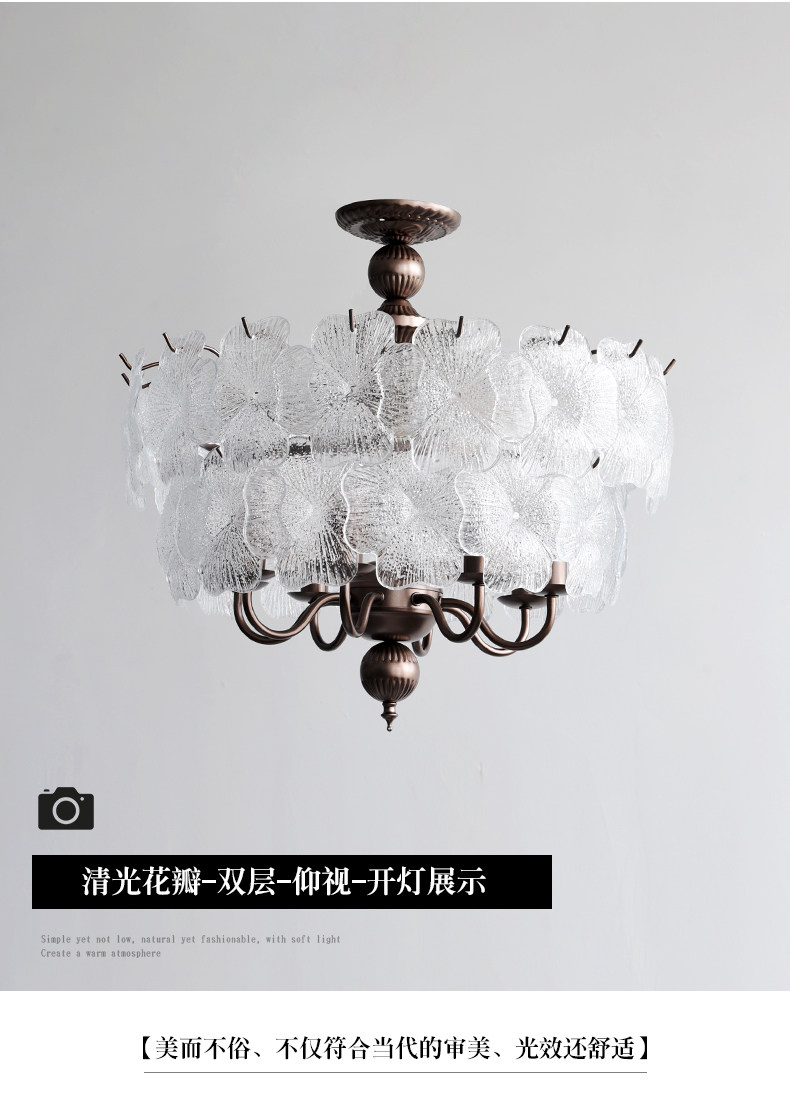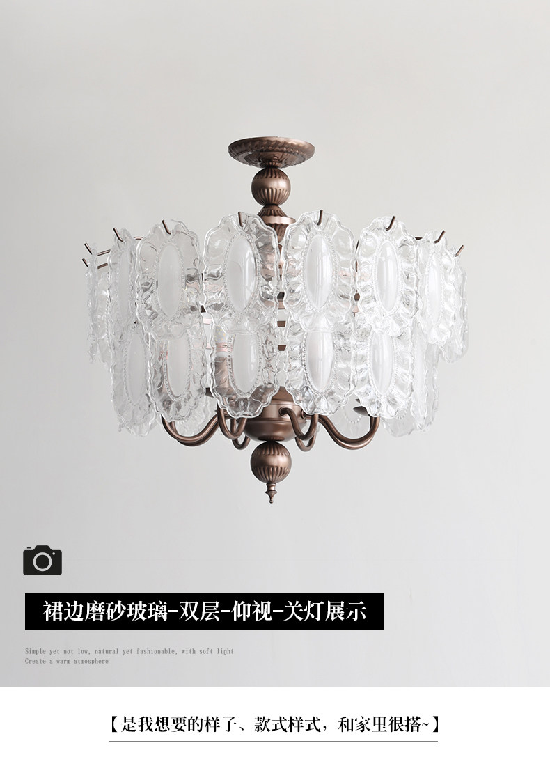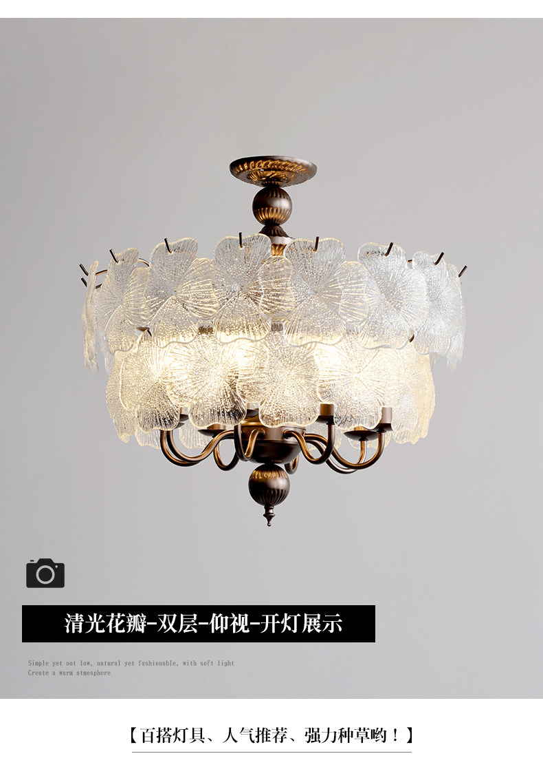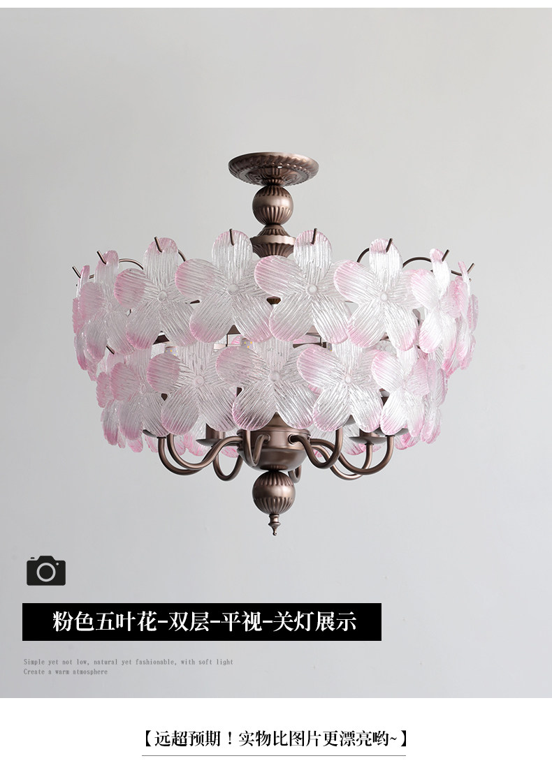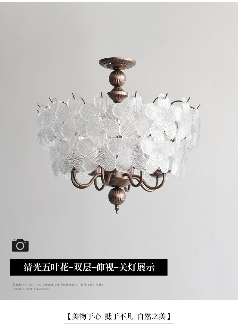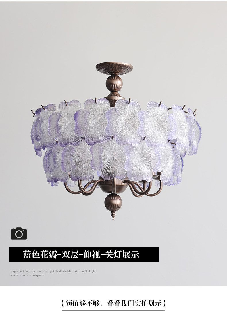 French-Style Vintage Bedroom Ceiling Light, American Retro Glass Petal Lamp for Living Room, Dining Room, Eye-Protection Study, Master Bedroom Lighting