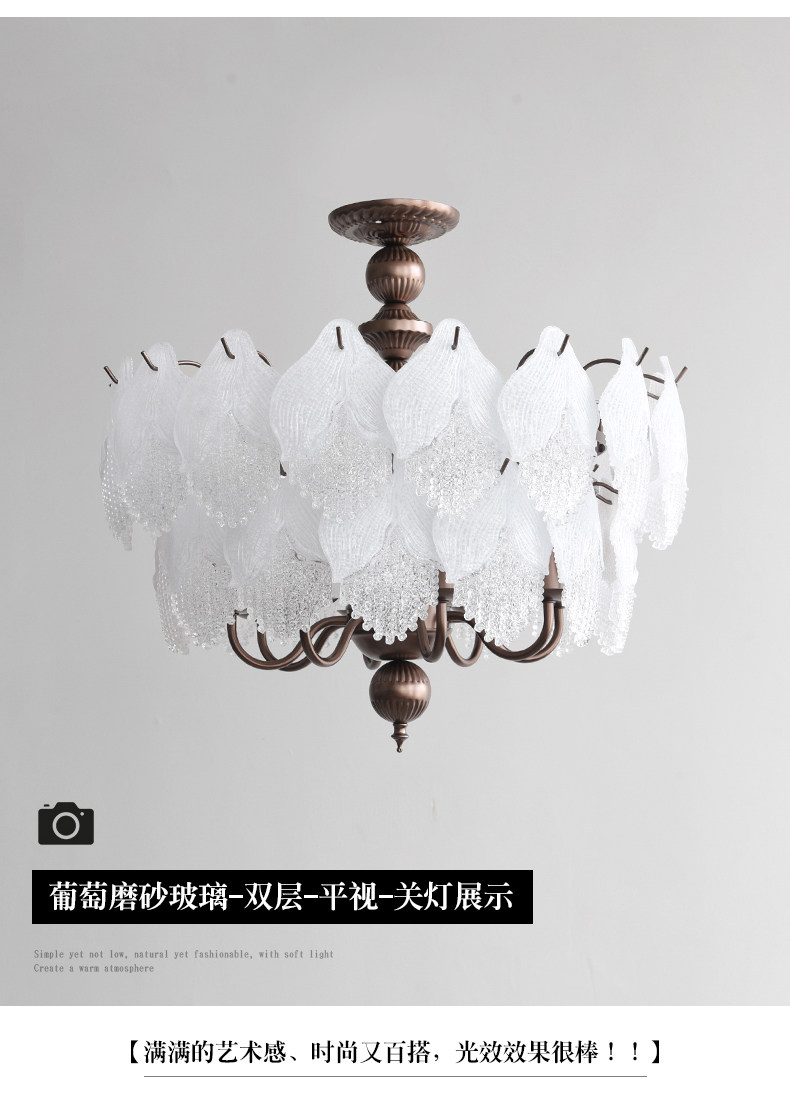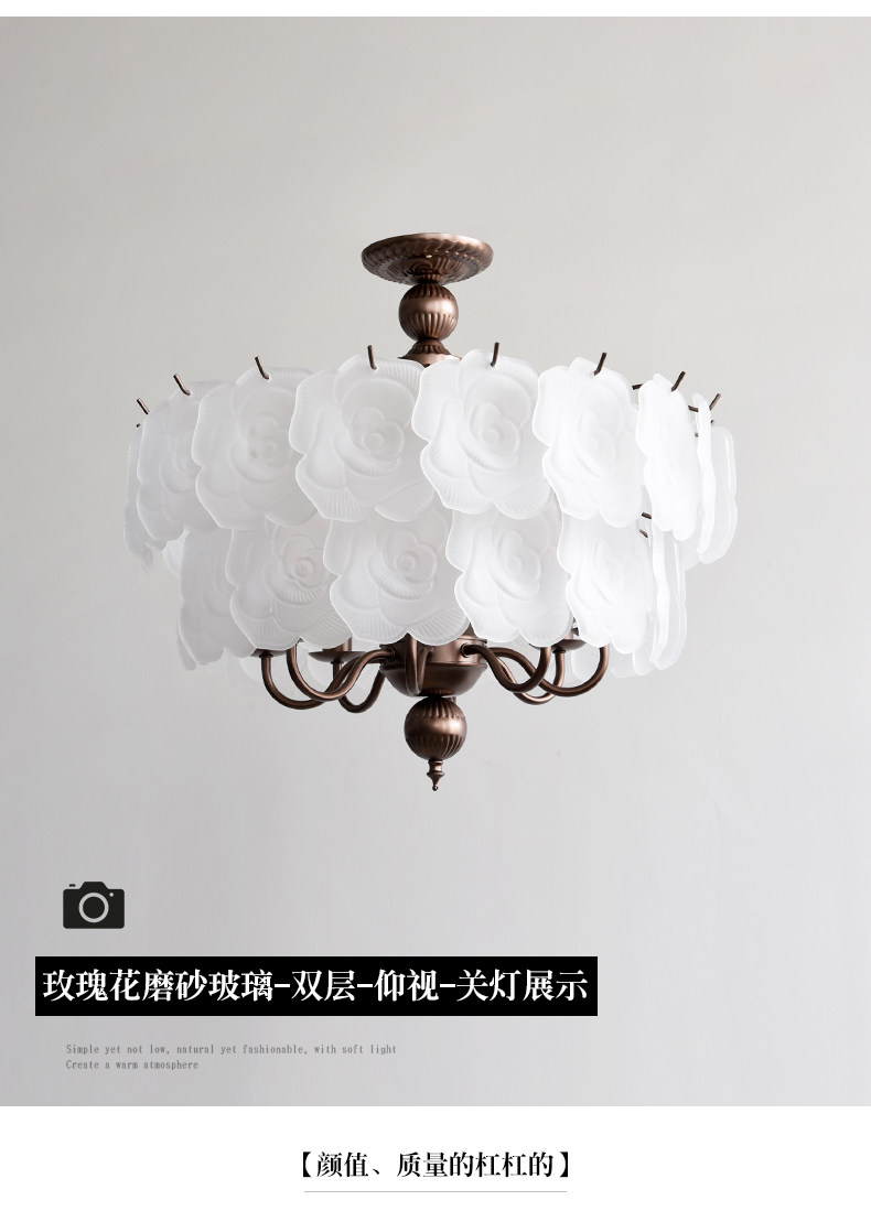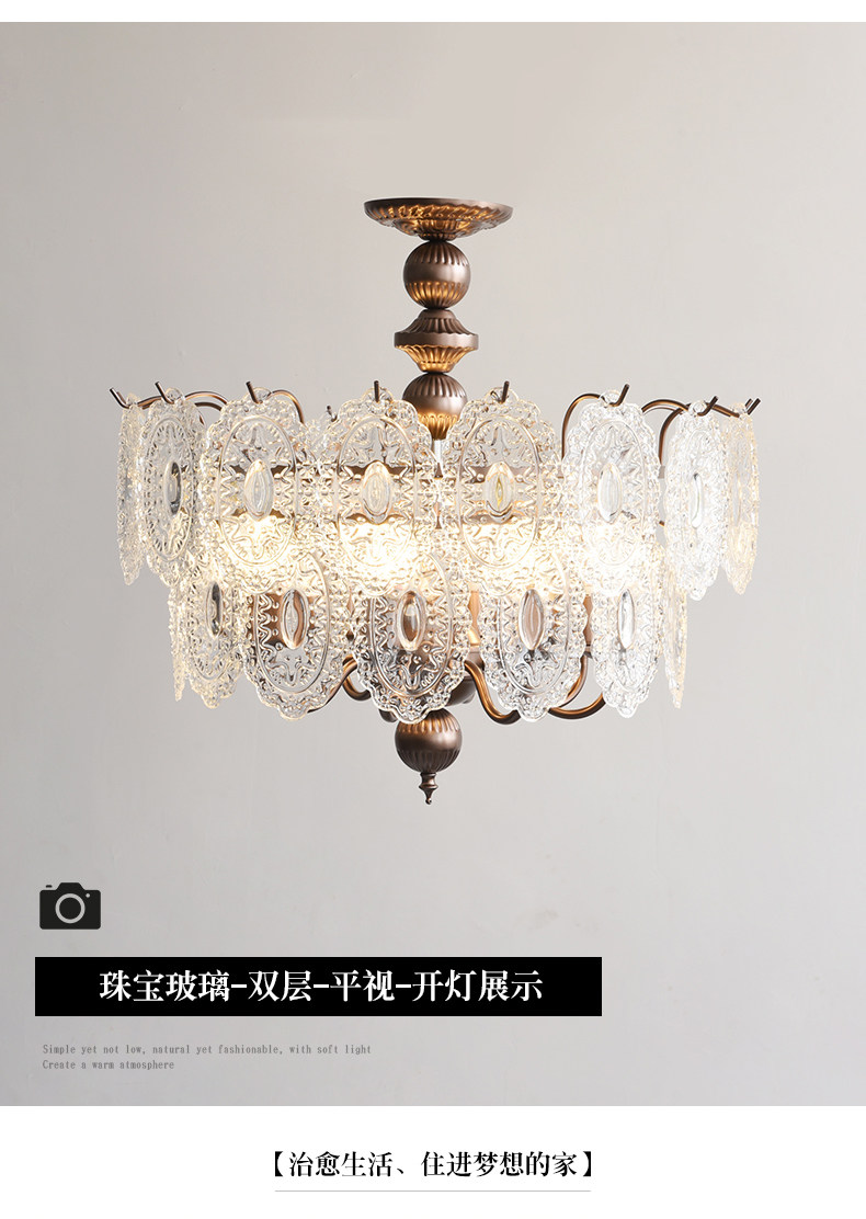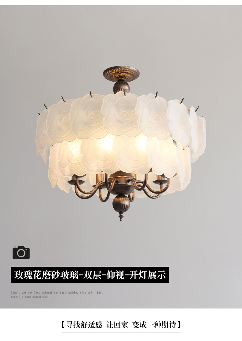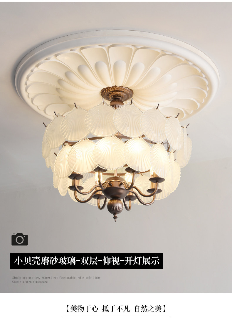 French-Style Vintage Bedroom Ceiling Light, American Retro Glass Petal Lamp for Living Room, Dining Room, Eye-Protection Study, Master Bedroom Lighting
