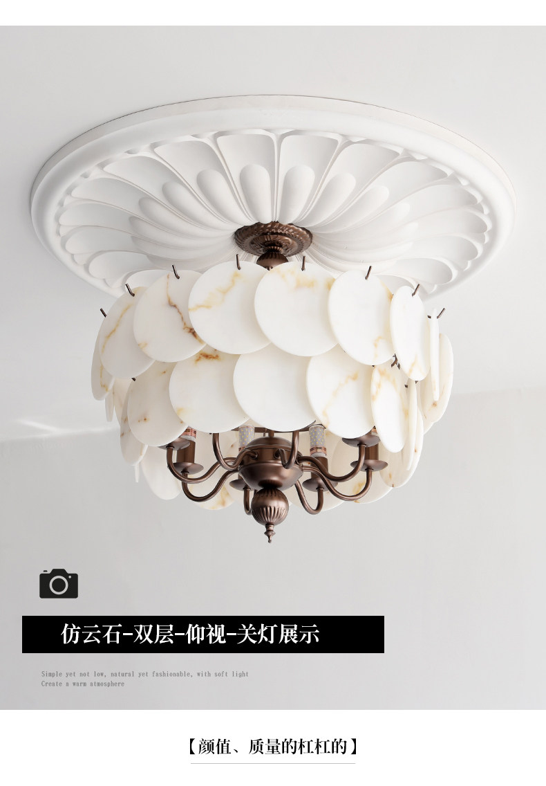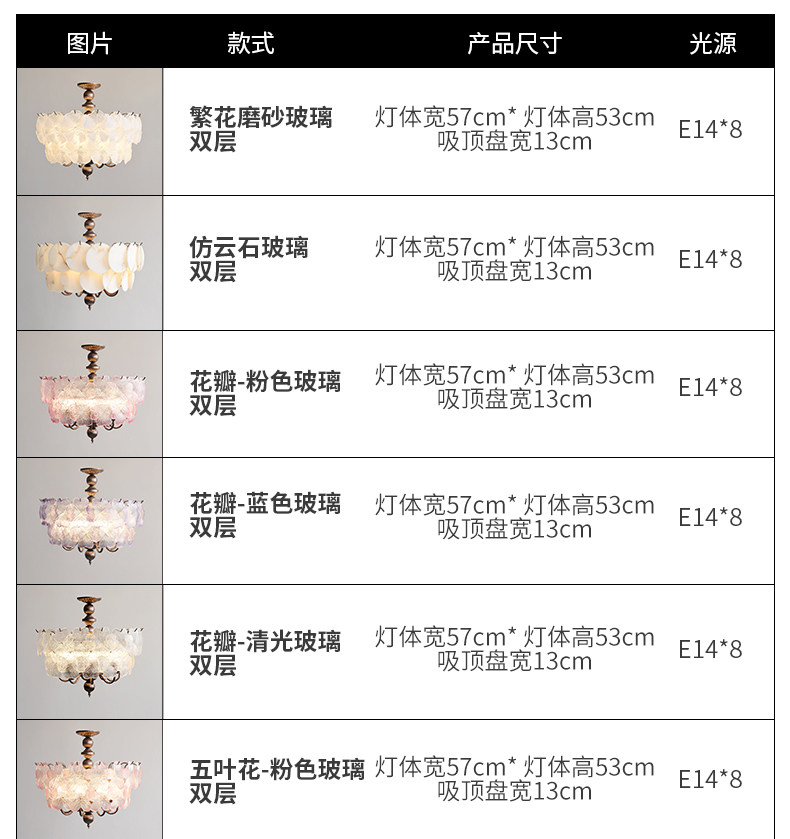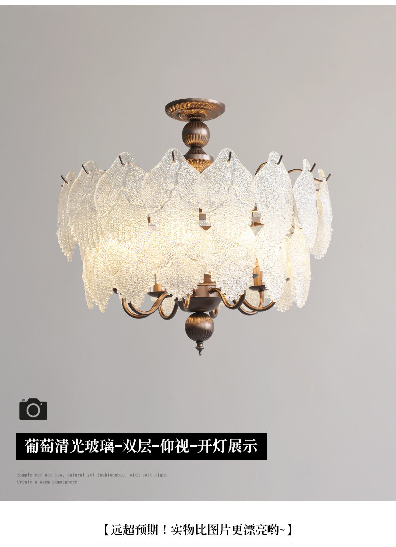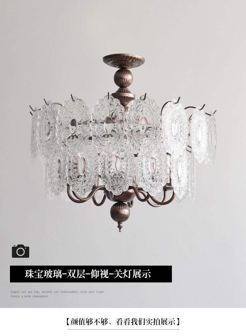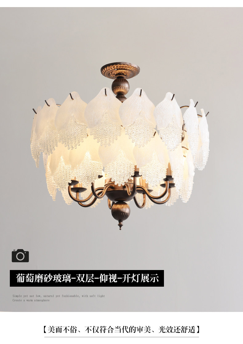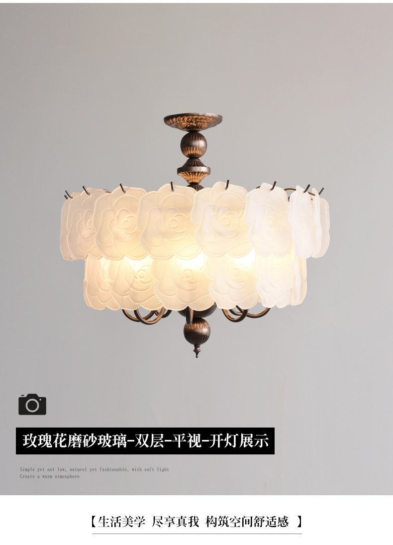 French-Style Vintage Bedroom Ceiling Light, American Retro Glass Petal Lamp for Living Room, Dining Room, Eye-Protection Study, Master Bedroom Lighting