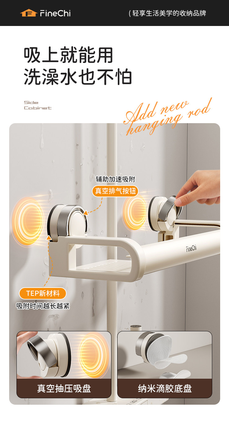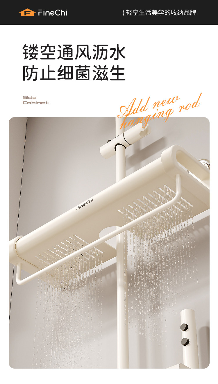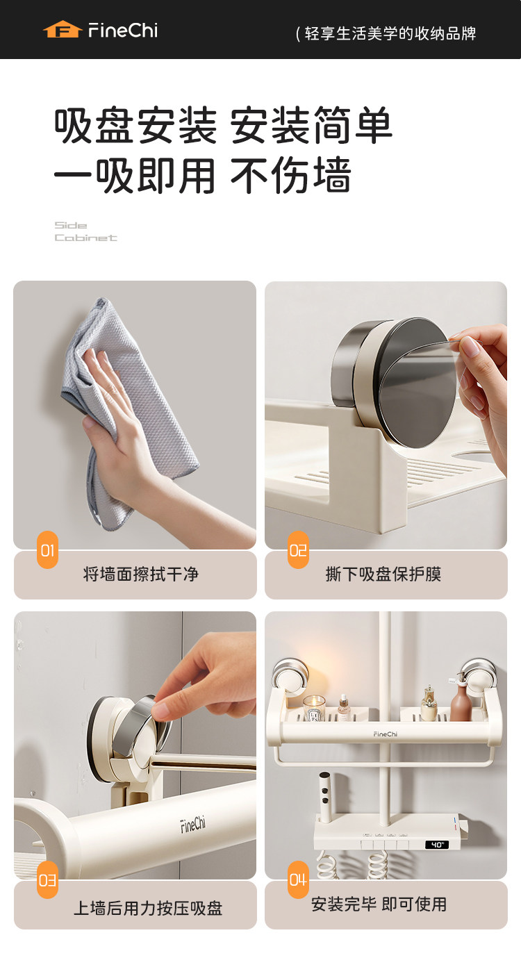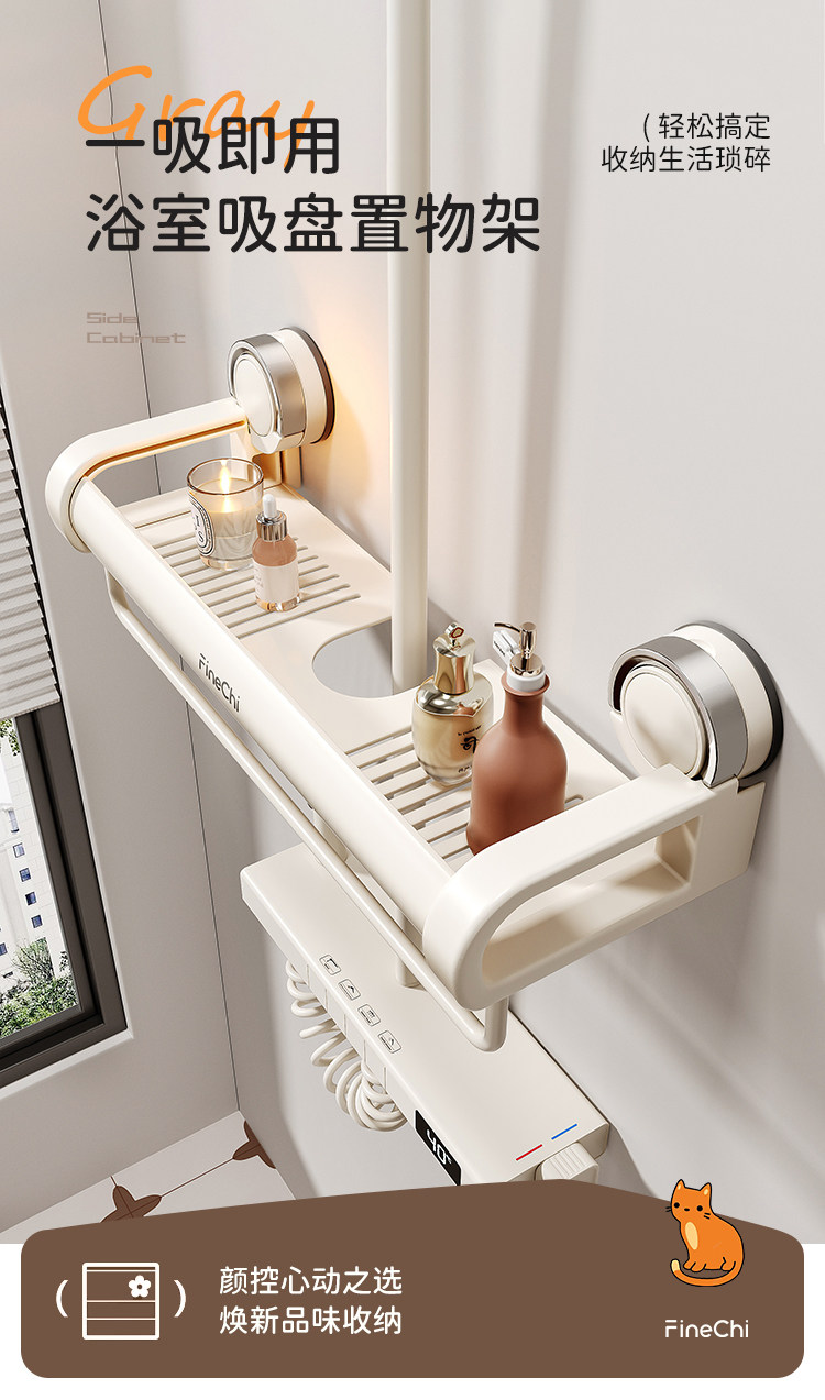 Finechi Suction Cup Shower Rack Bathroom Shower Room No-Drill Storage for Shower Gel and Shampoo
