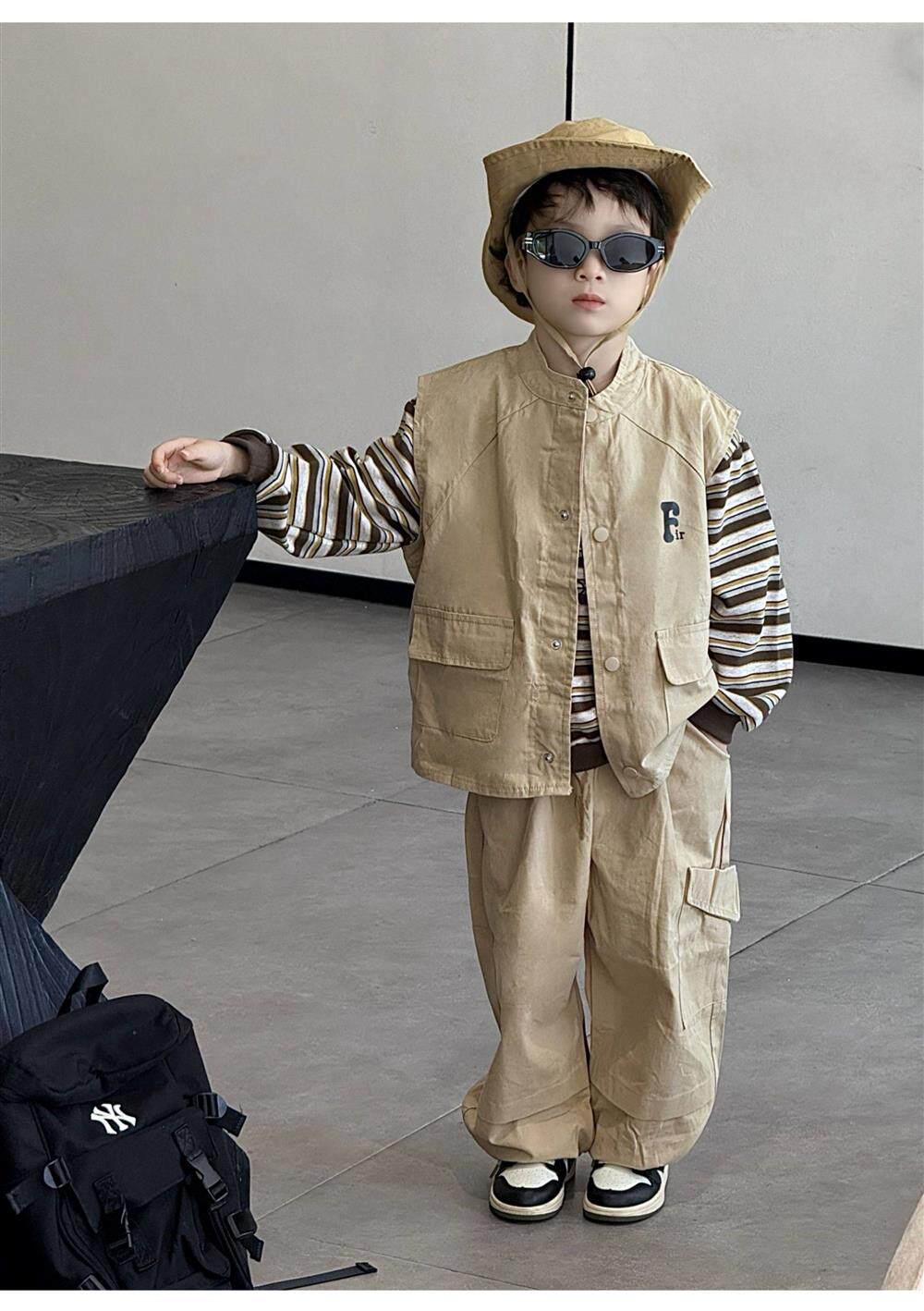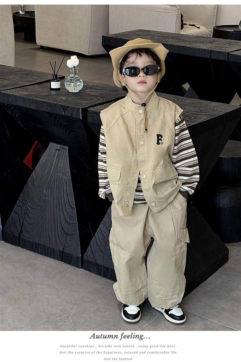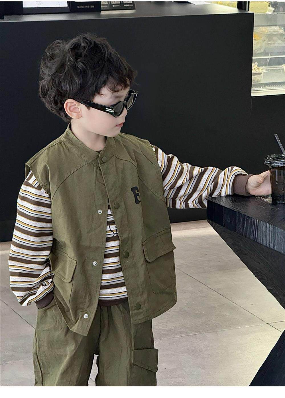 French Boys' Cool and Stylish Outfit 2026 New Children's Workwear Spring and Autumn Style Boys' Trendy Three-Piece Set Spring Outfit