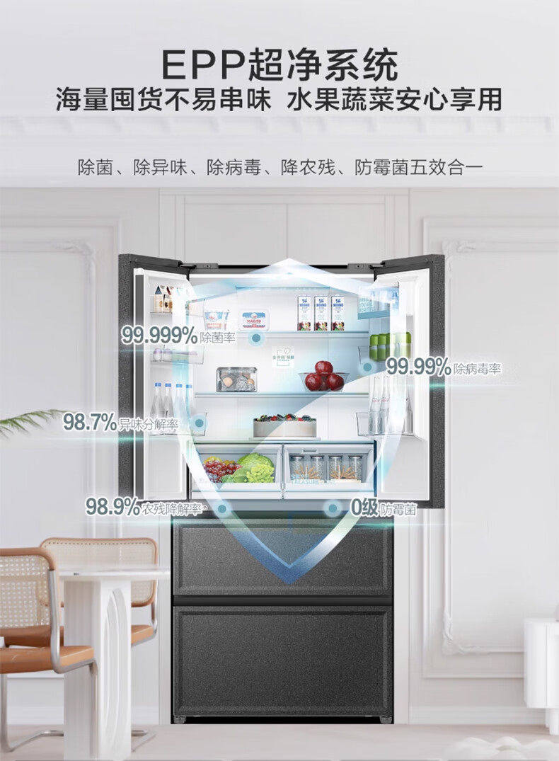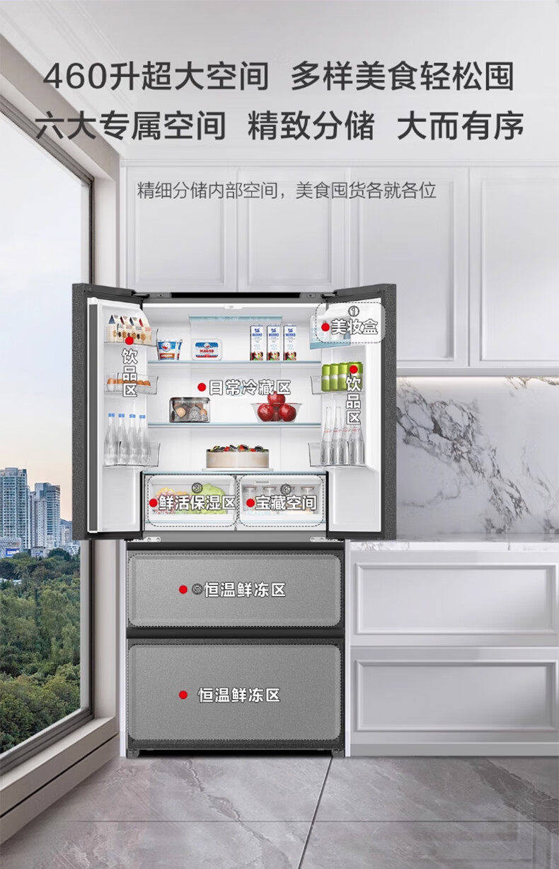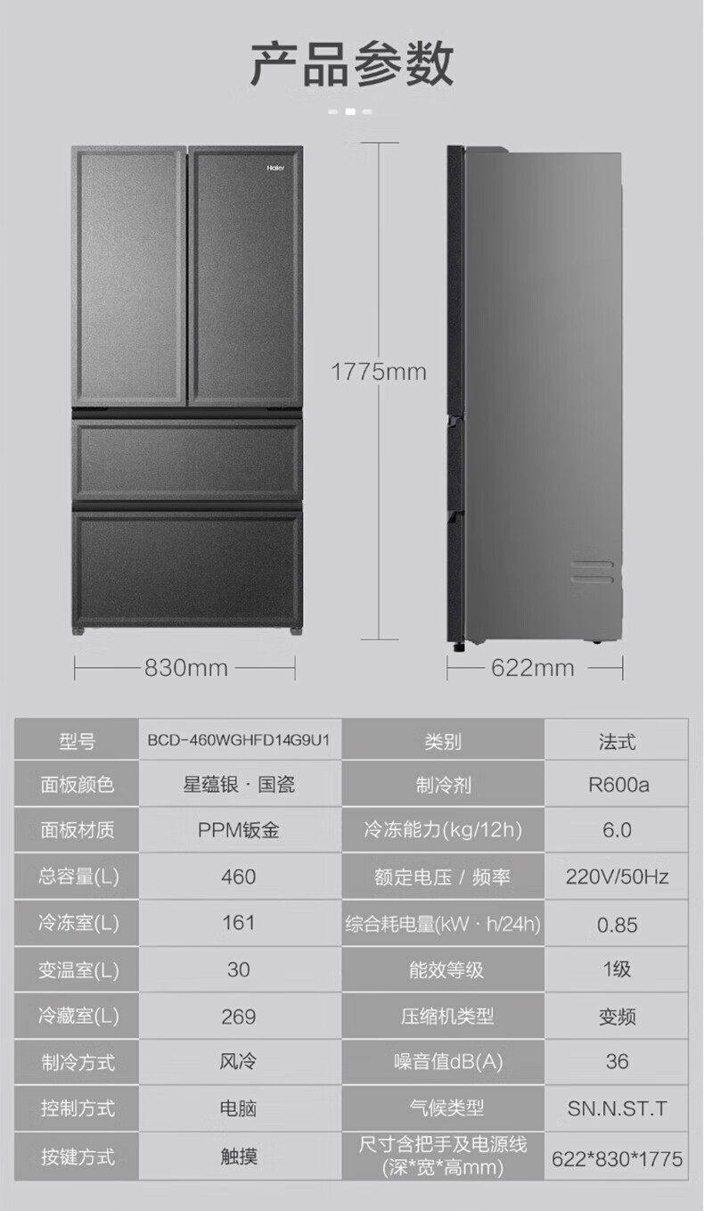 Haier Bcd-460Wghfd14S9U1 Full-Space Freshness-Preserving Zero-Distance Embedded Multi-Door Refrigerator