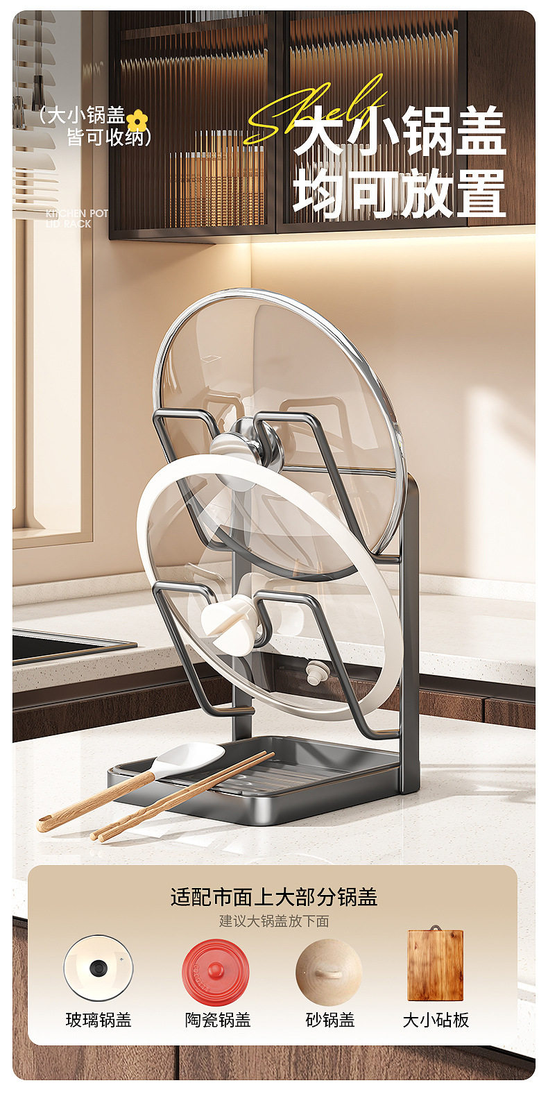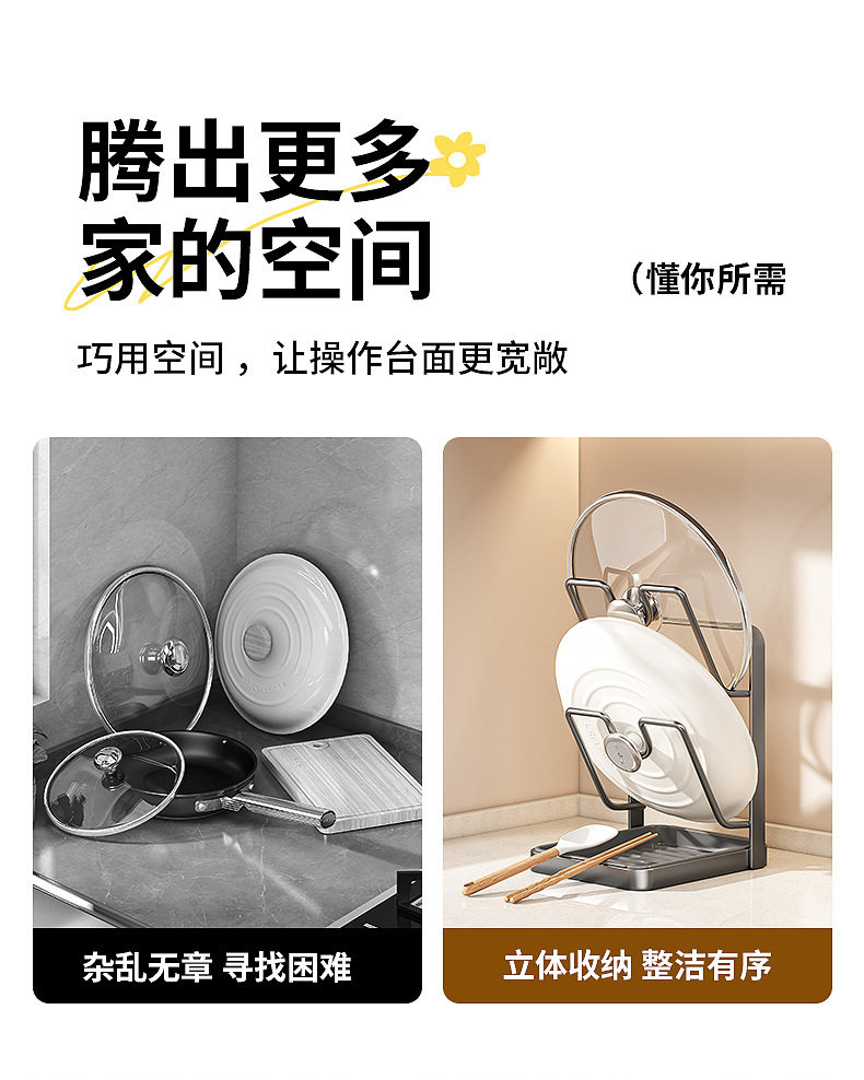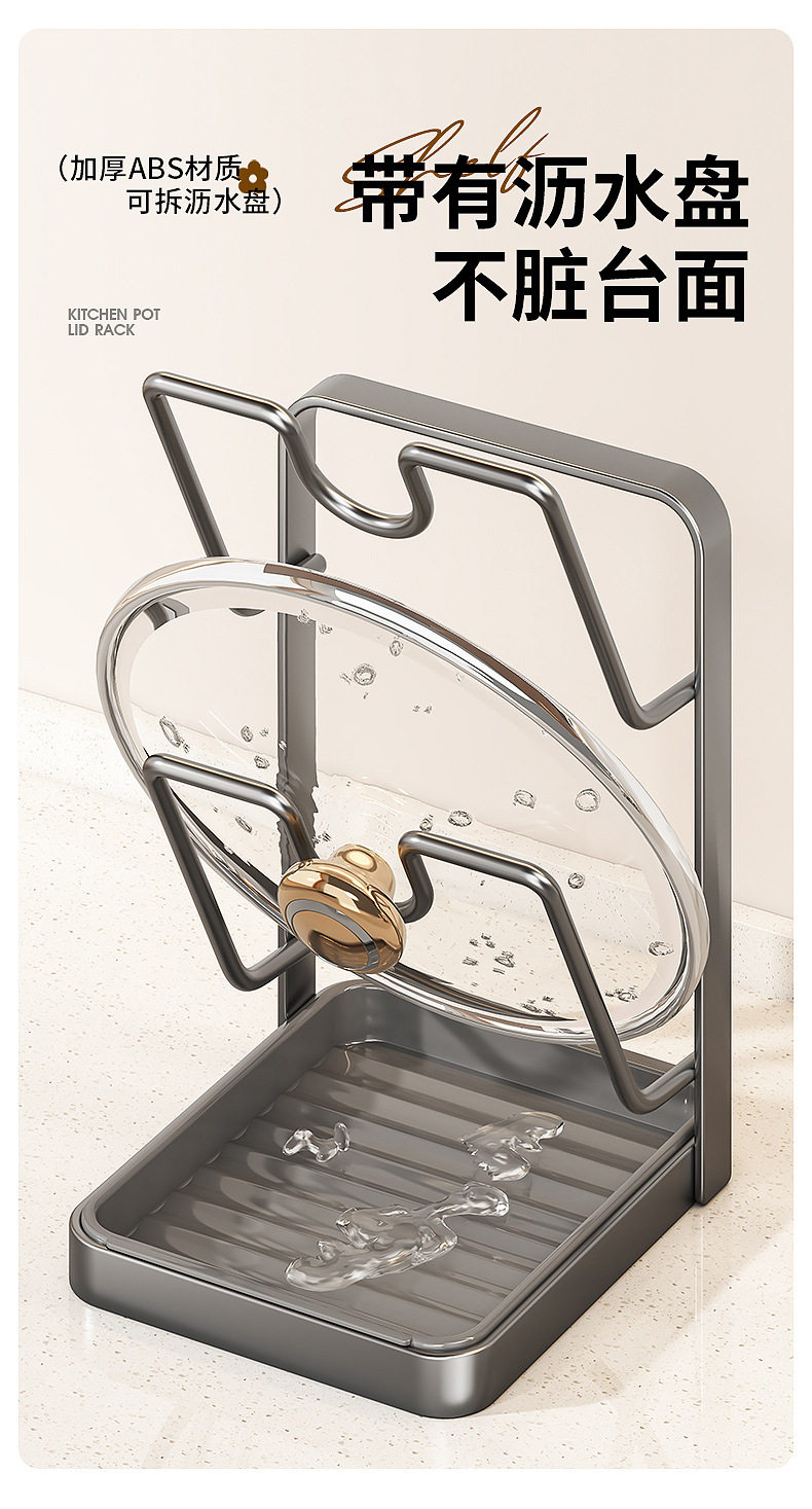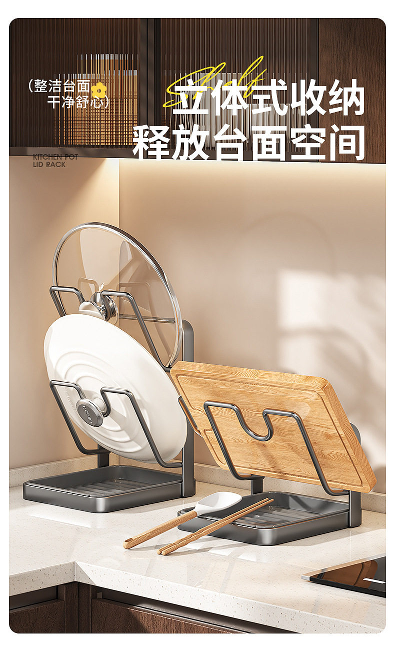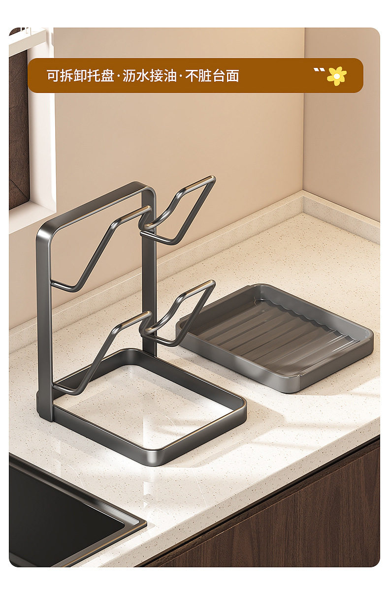 With drain basin, universal size, pot cover rack, countertop spatula rack, kitchen multi-functional storage rack