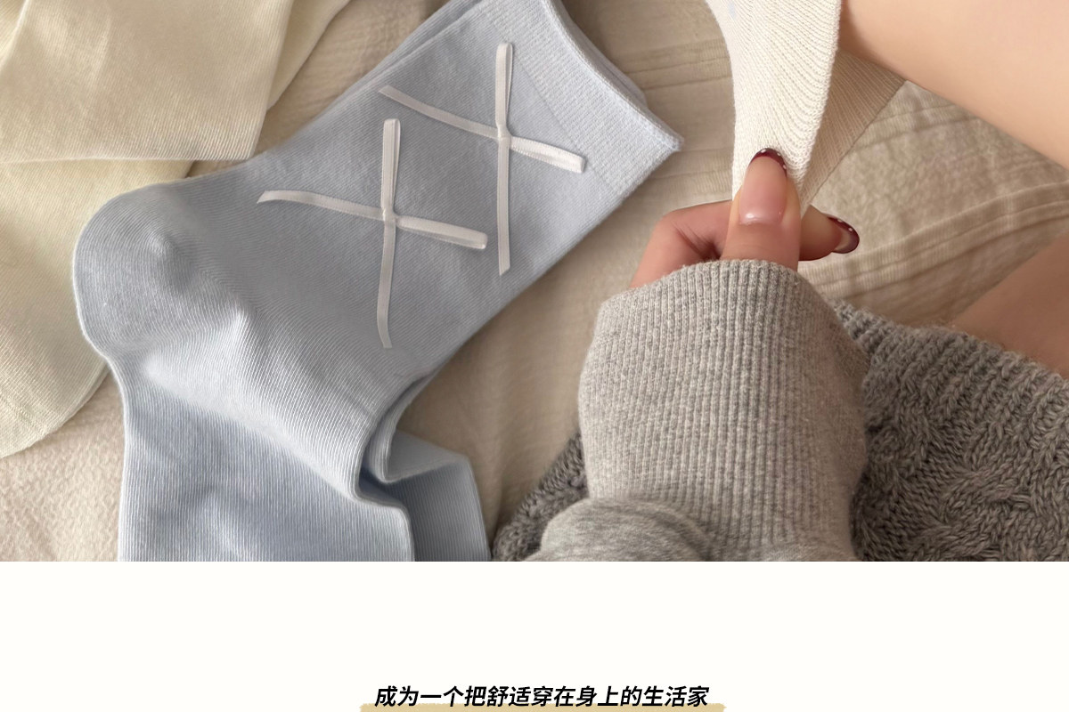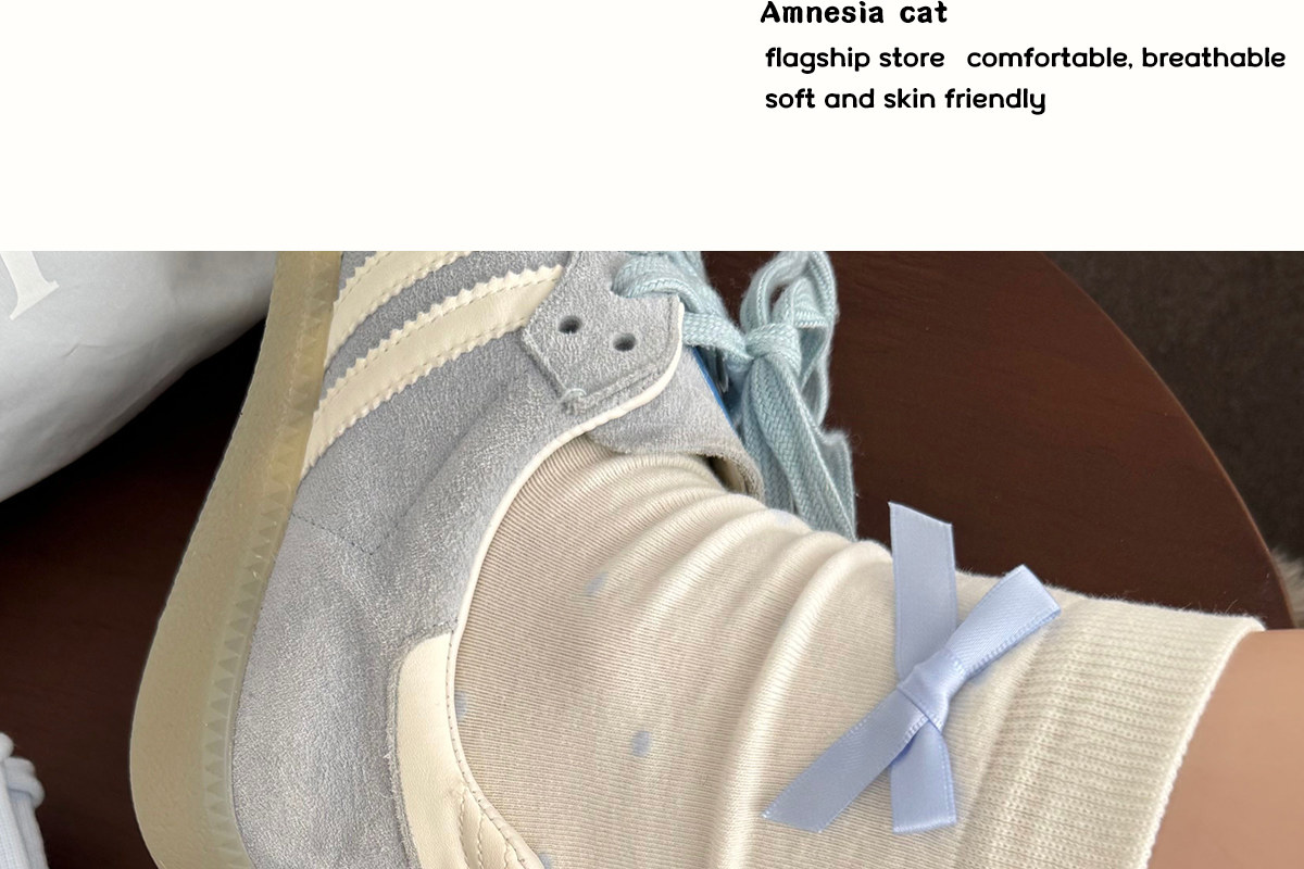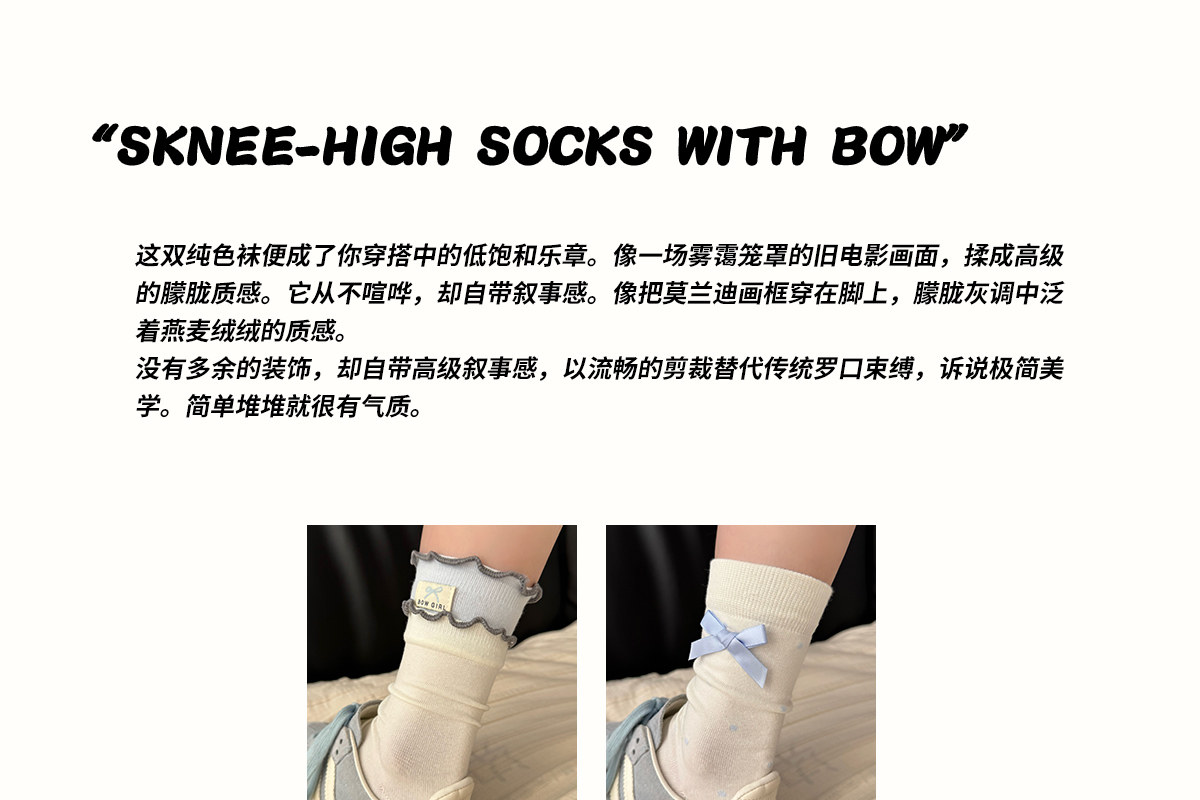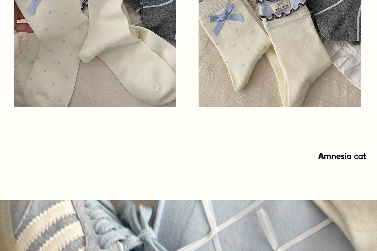 White bow socks for women, pure cotton mid-calf socks, autumn and winter cute lace stockings, spring and autumn ballet style cotton socks