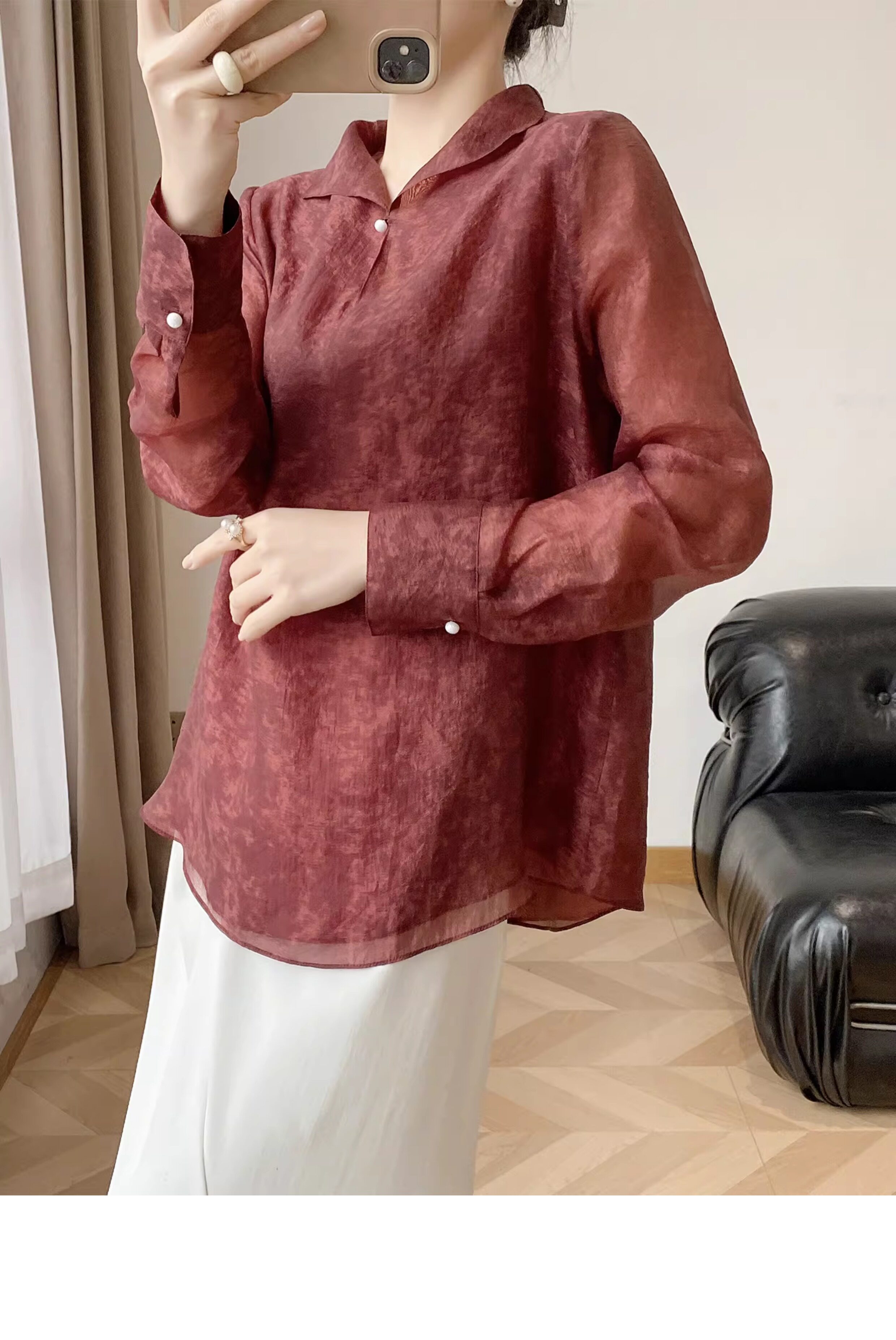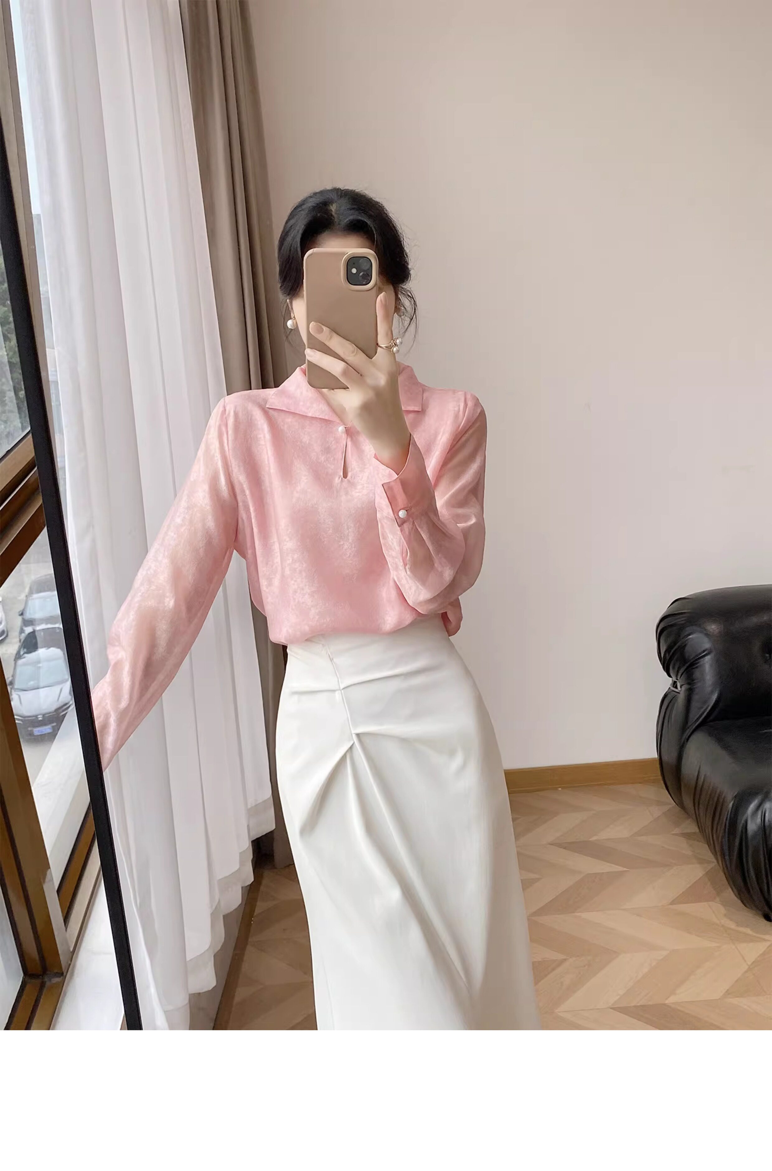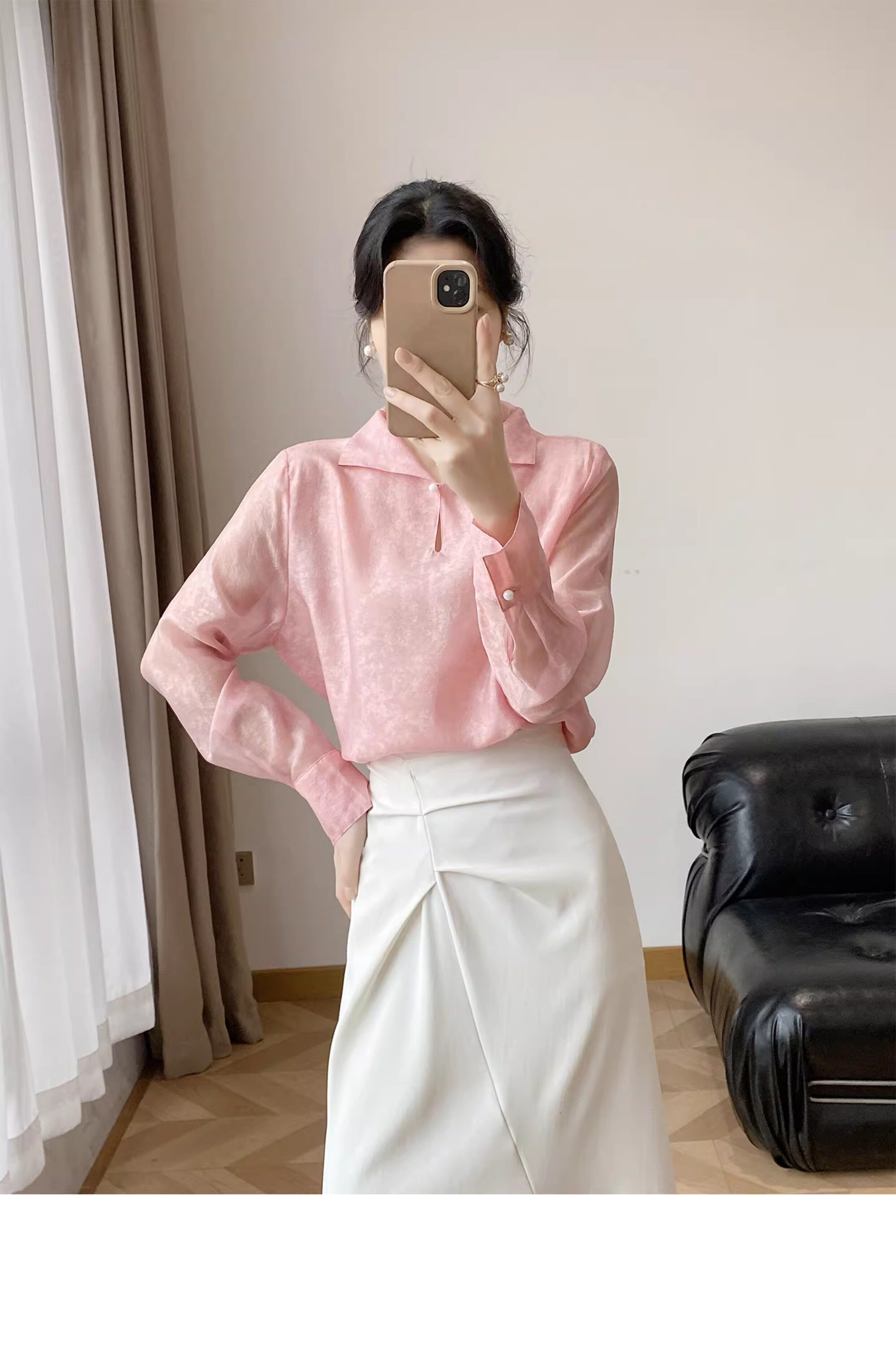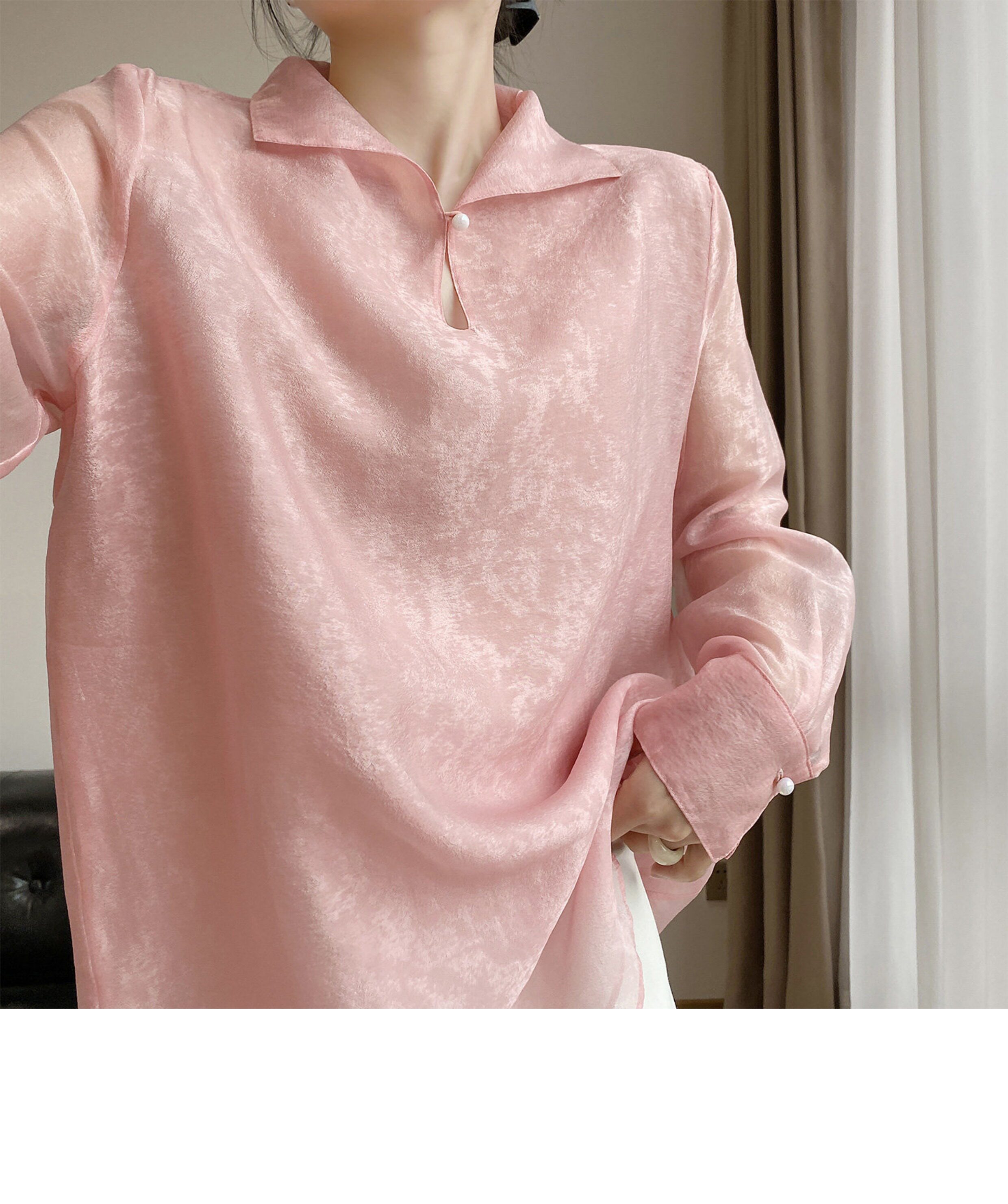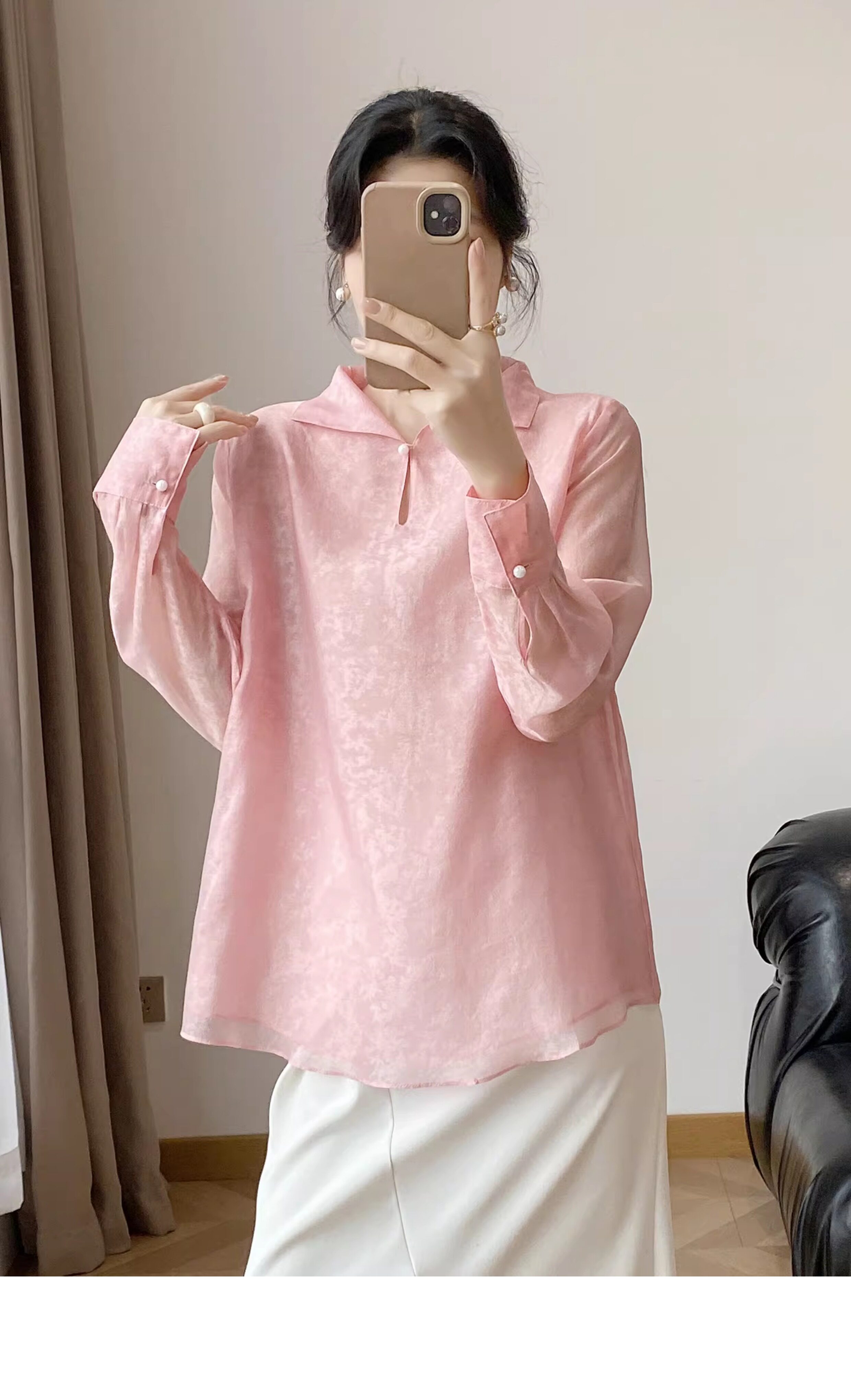 2026 New Spring and Summer New Chinese Style High-End Age-Reducing Silk Jacquard Pink Shirt for Women
