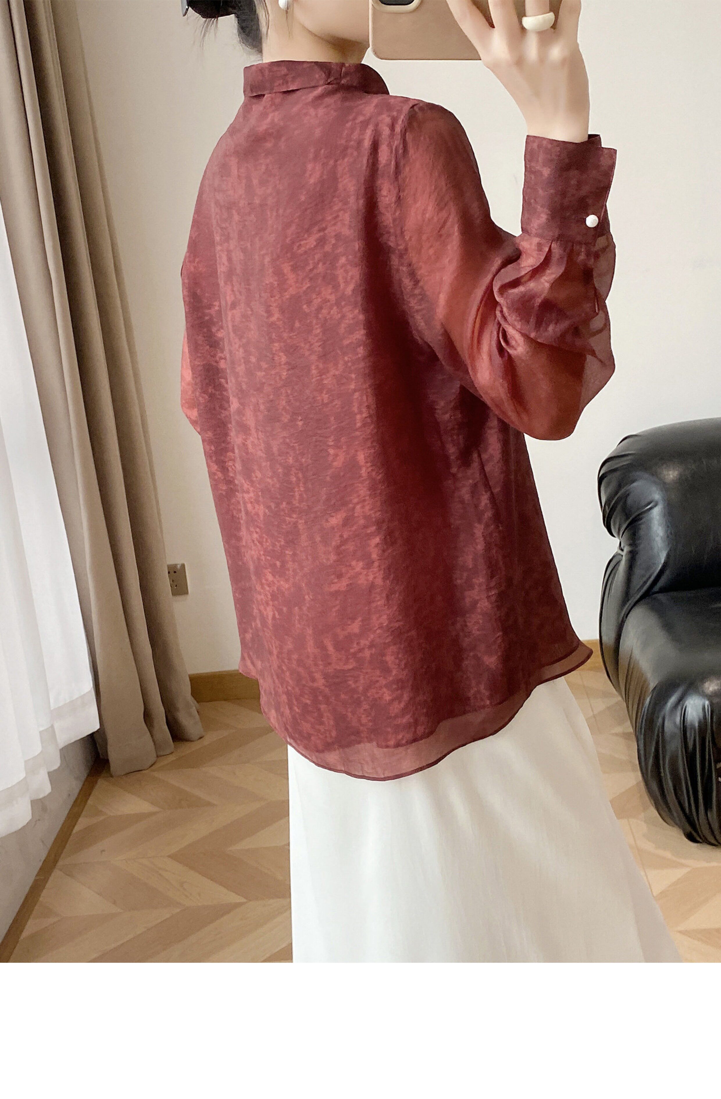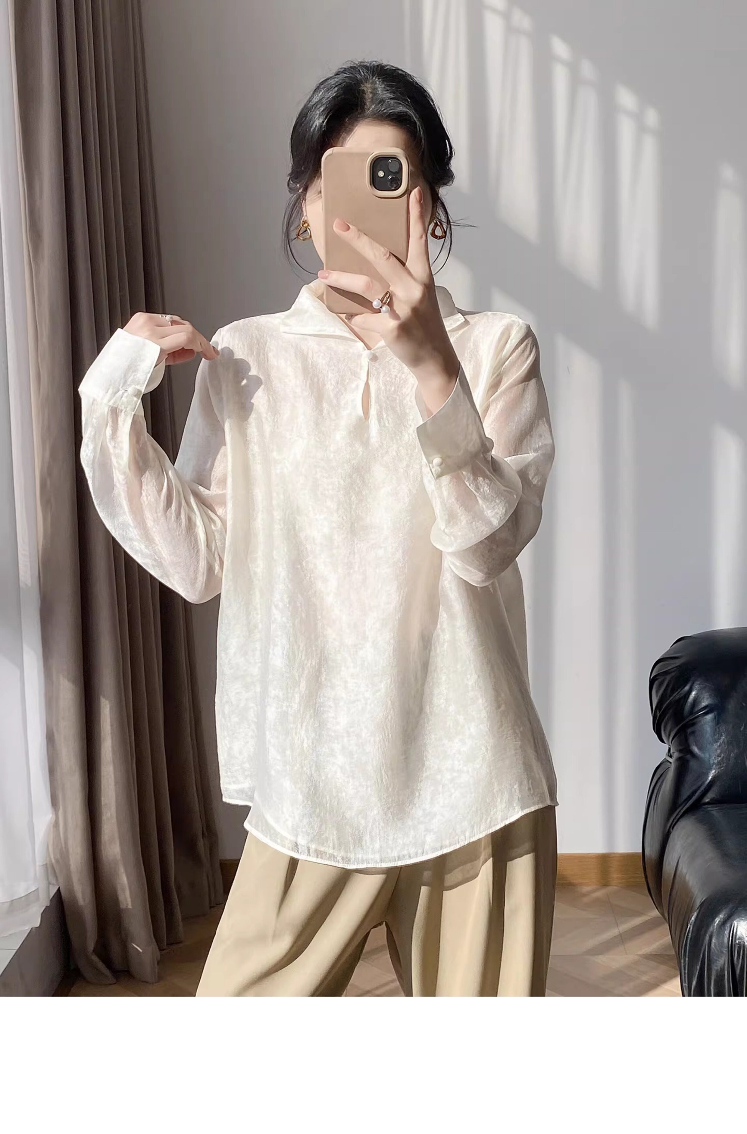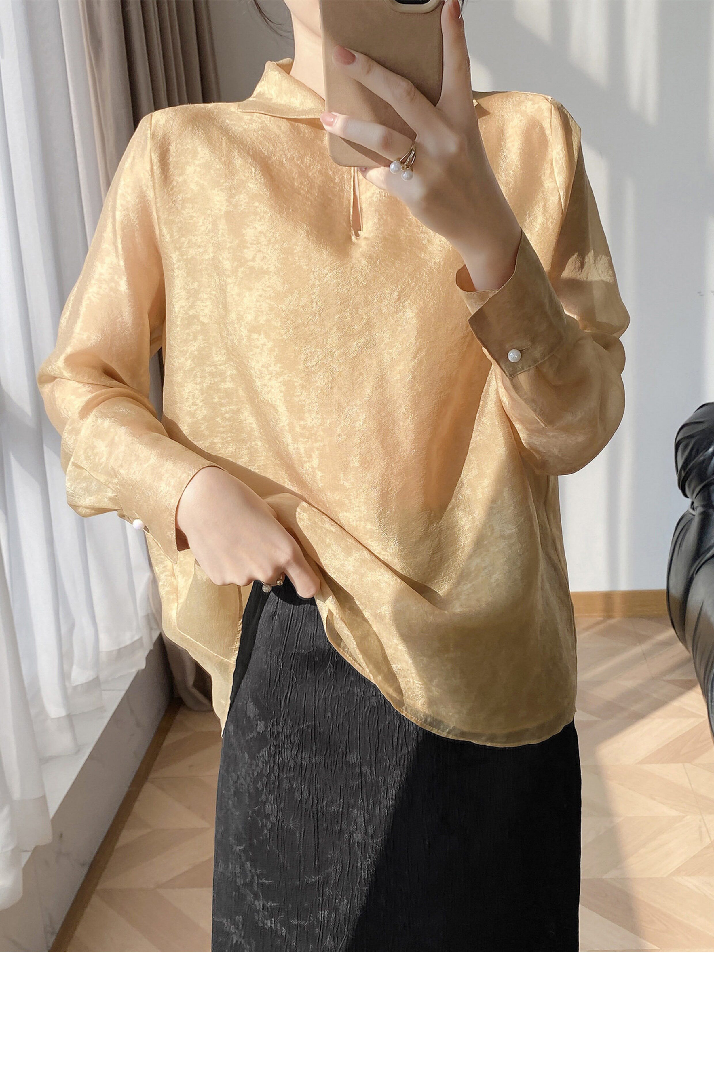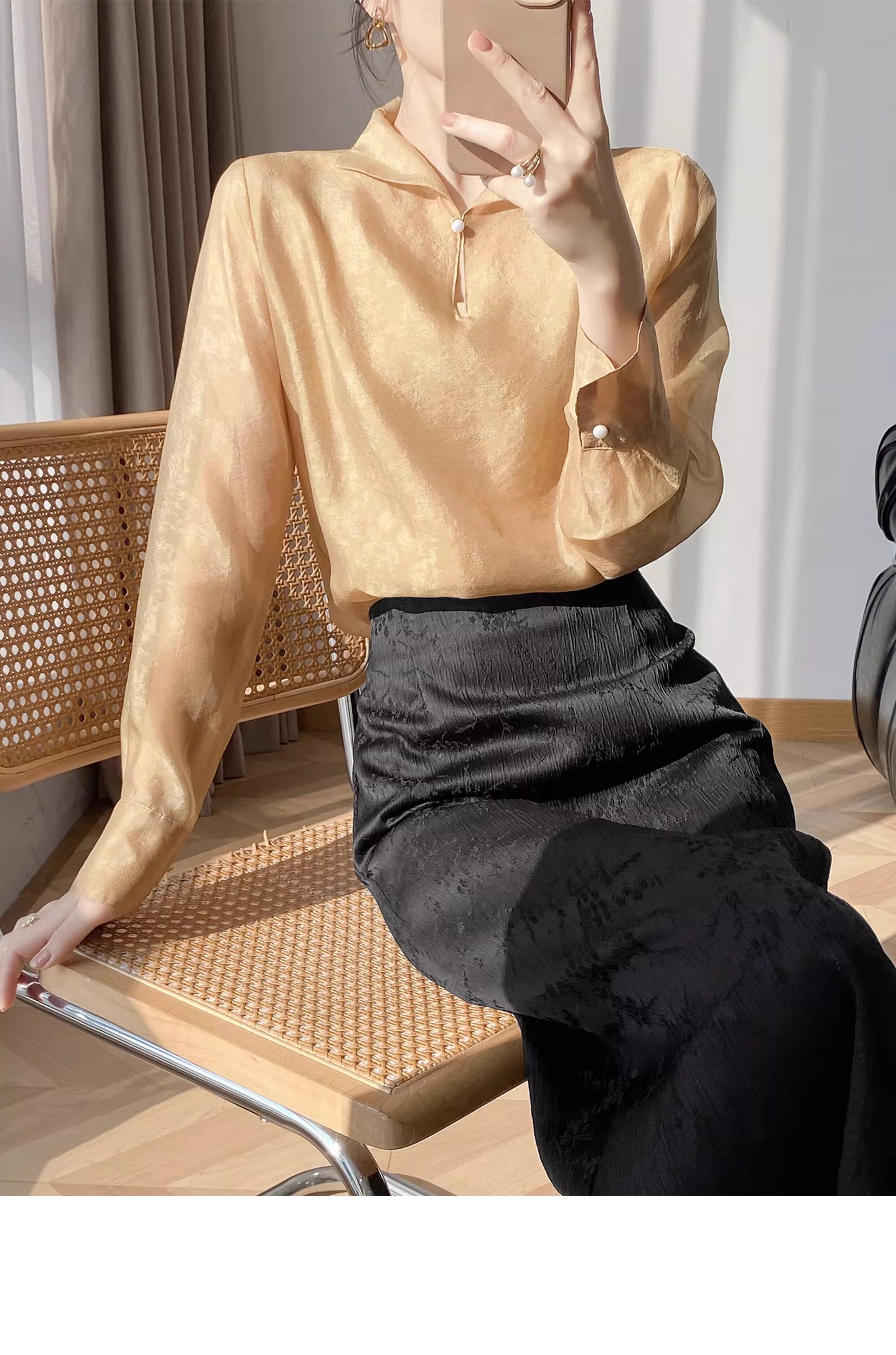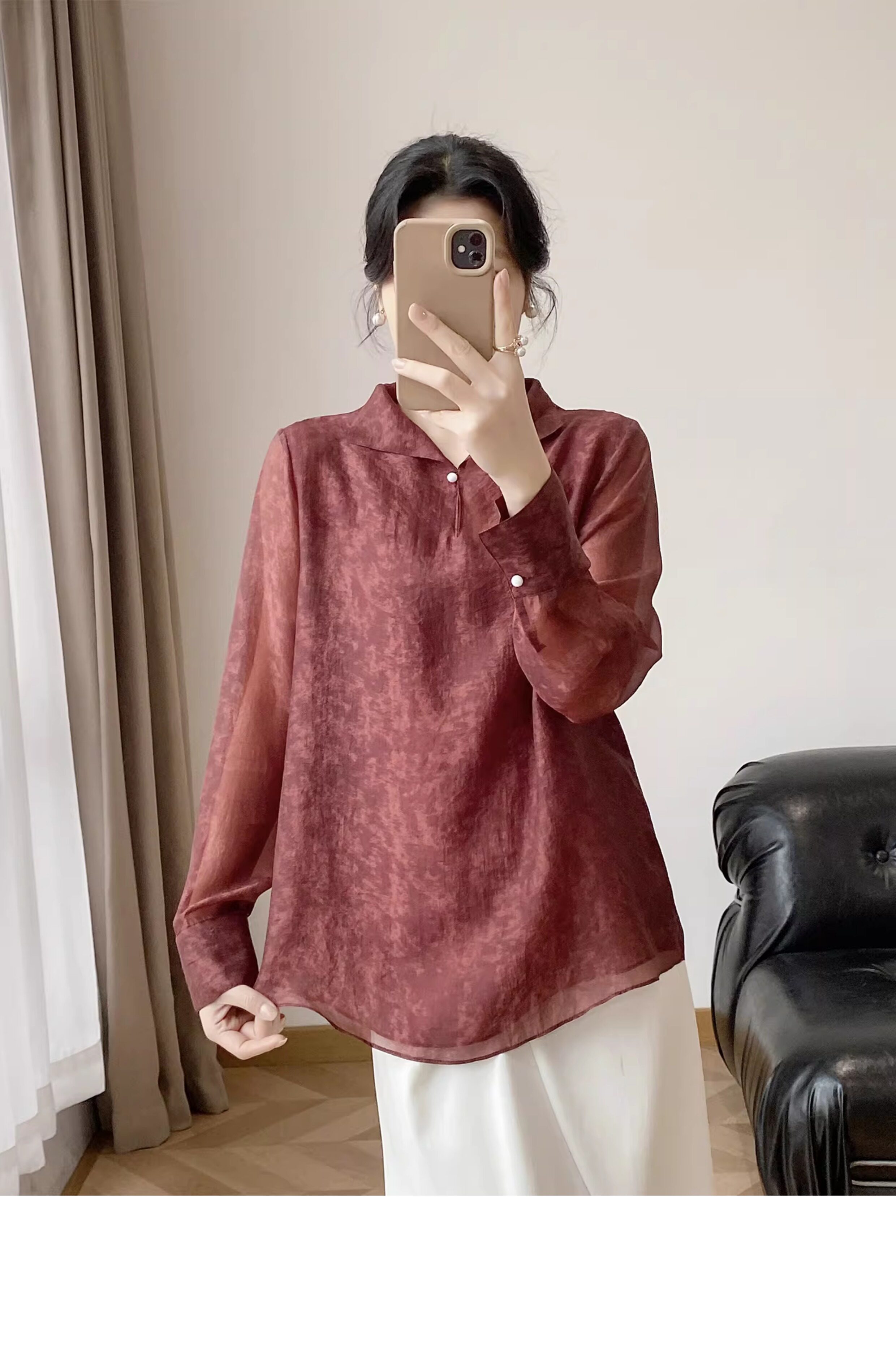 2026 New Spring and Summer New Chinese Style High-End Age-Reducing Silk Jacquard Pink Shirt for Women