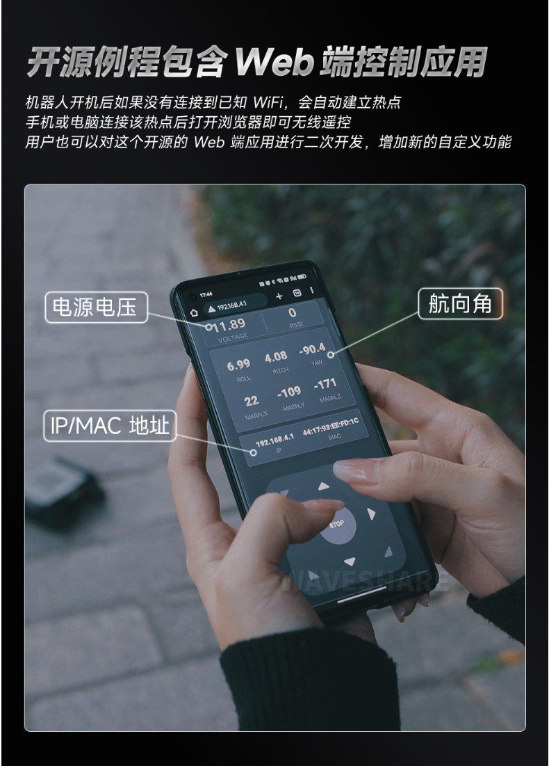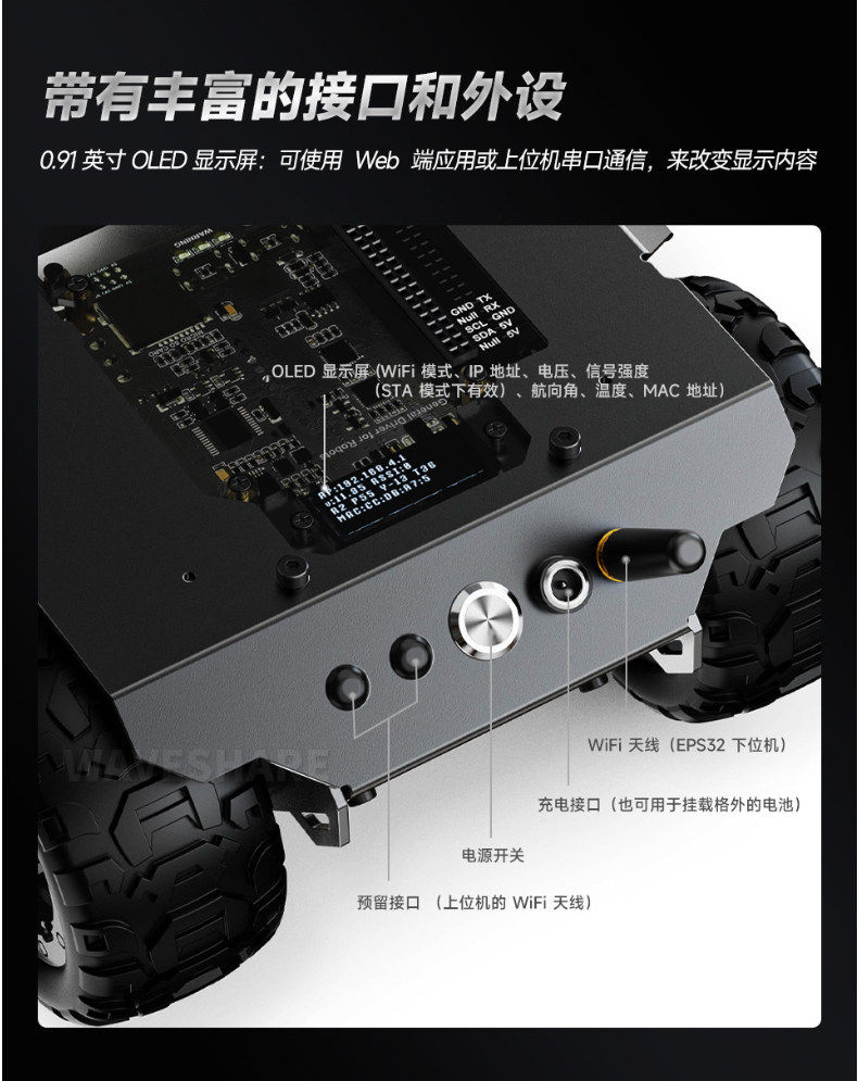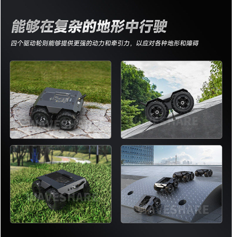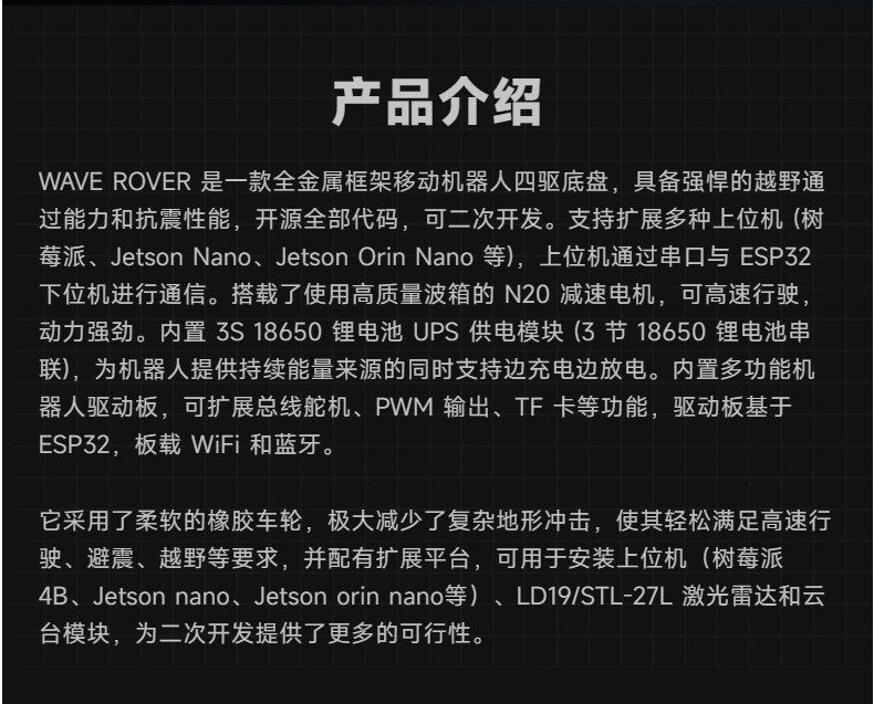 Expandable Four-Wheel Drive Wave Rover Small Car Chassis Metal Mobile Robot Esp32 Lower Control Unit
