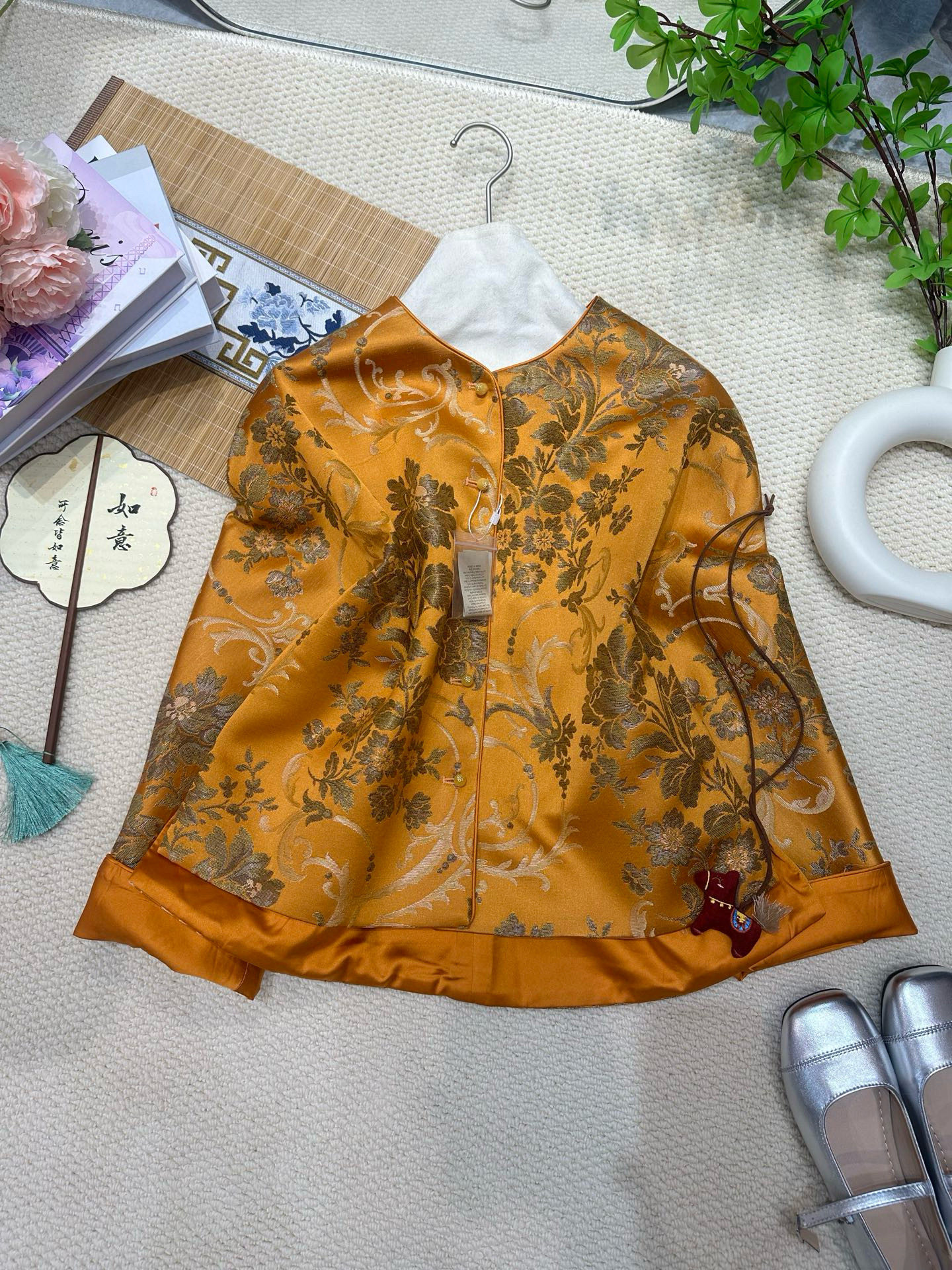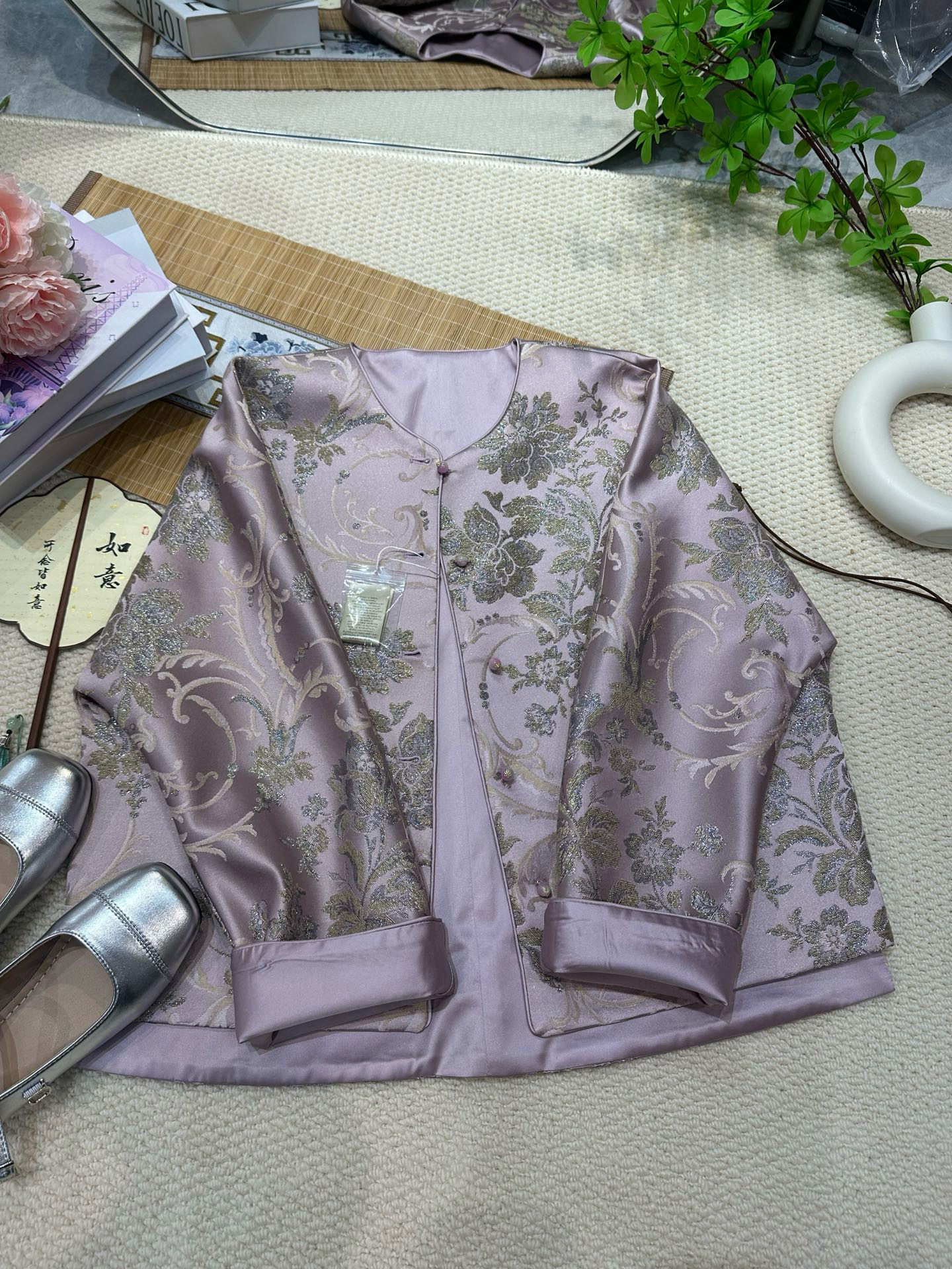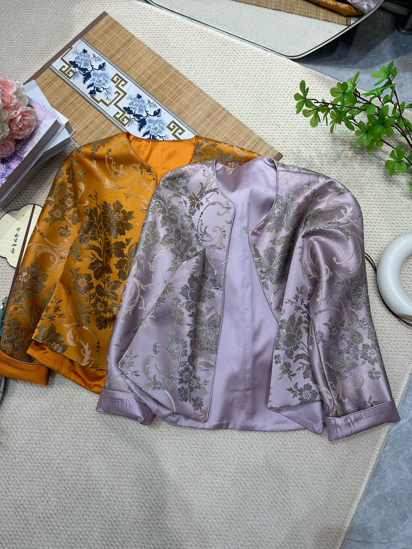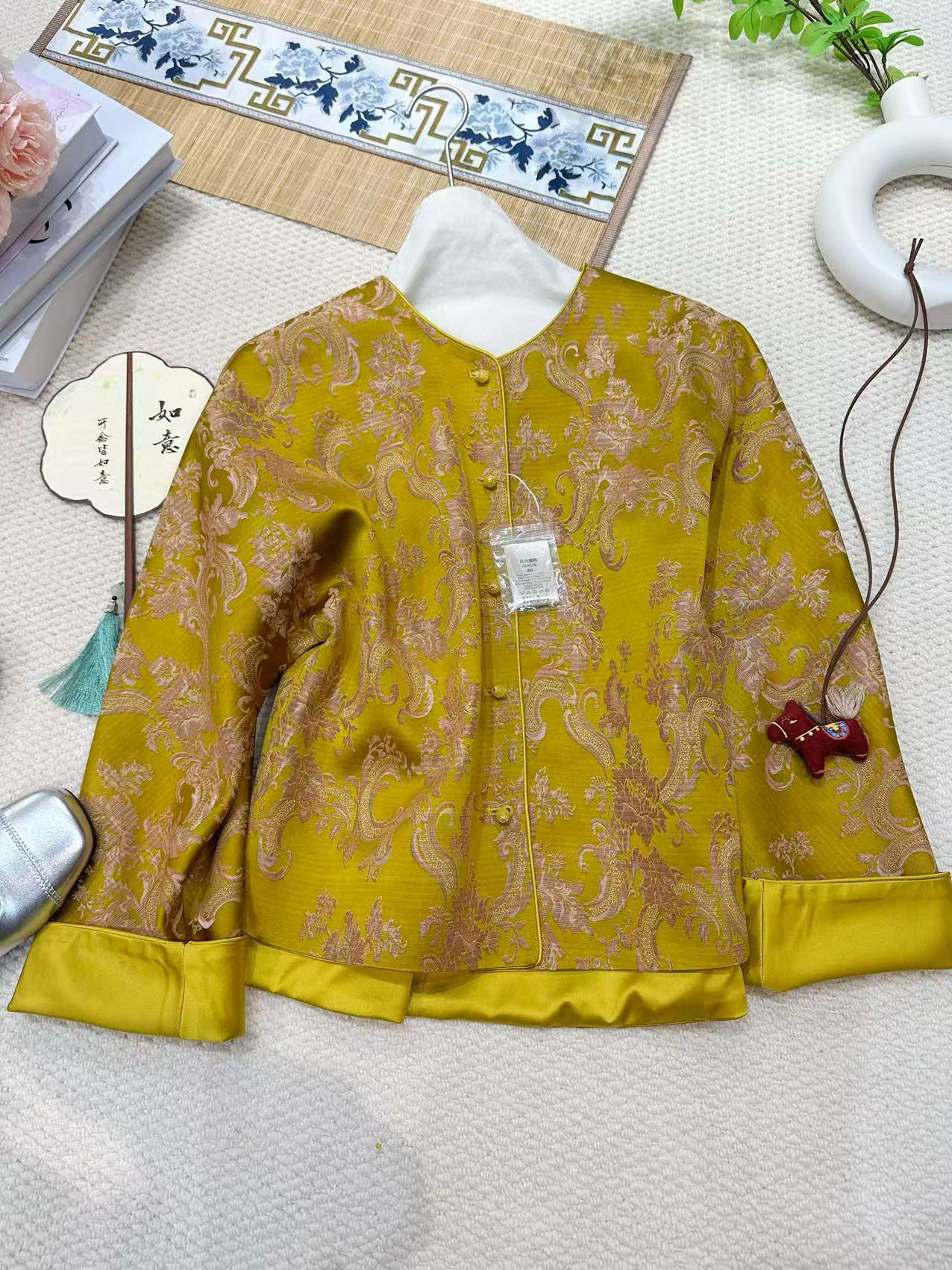 Sichuan Brocade Jacquard Jacket, Round Neck Jacket, New Chinese Style, Retro Jacquard Stand Collar, Buttoned, Color-Blocking Top for Women