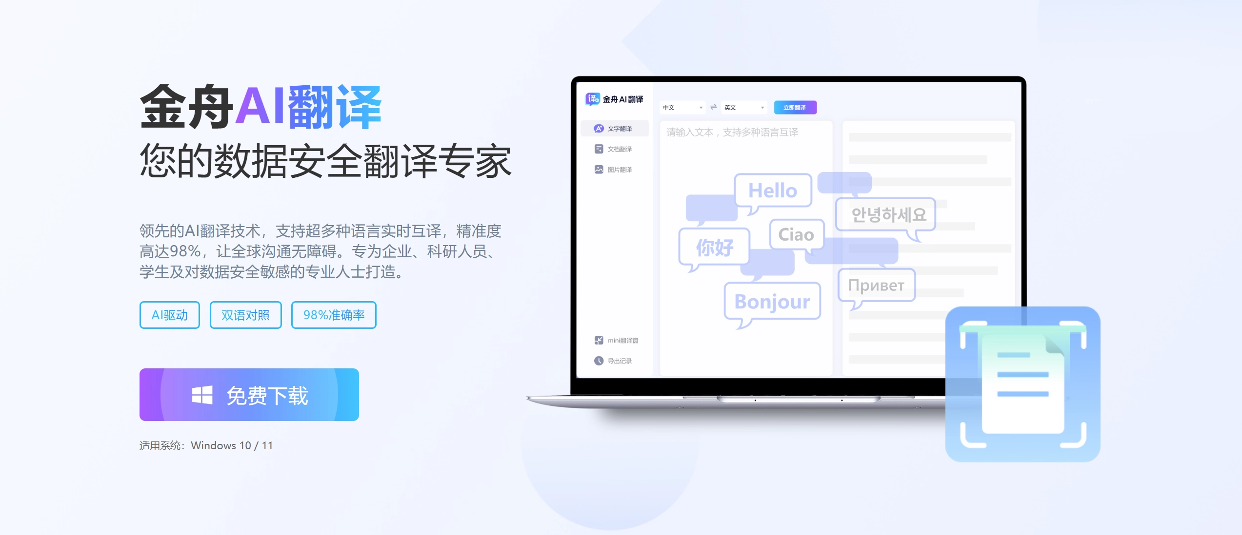 Jinzhou Ai Translation Membership Text Document Image Translation Desktop Mini Window Computer Batch Translation Software