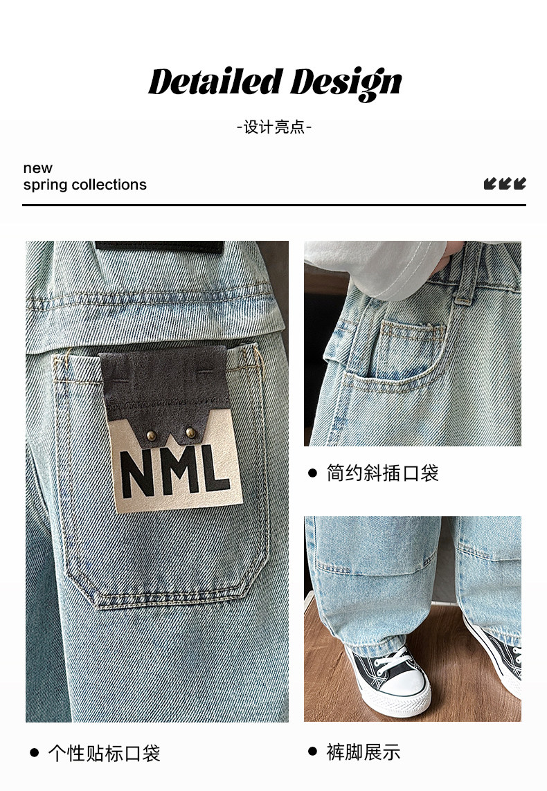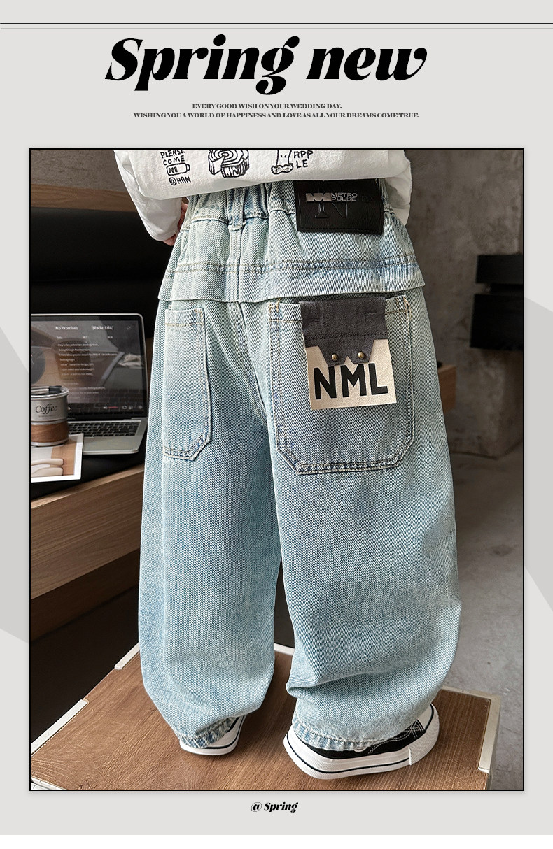Boys' Pants Spring and Autumn Children's Straight-Leg Jeans 2026 New Style Cool and Stylish Boys' Spring Casual Wide-Leg Pants