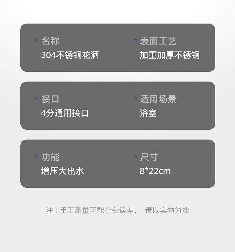 304 Stainless Steel Super Pressure Shower Head Bathroom Rain Shower Super Pressurized Large Water Output Shower Head Set