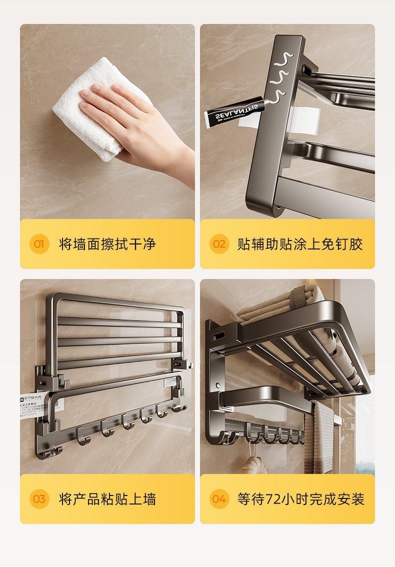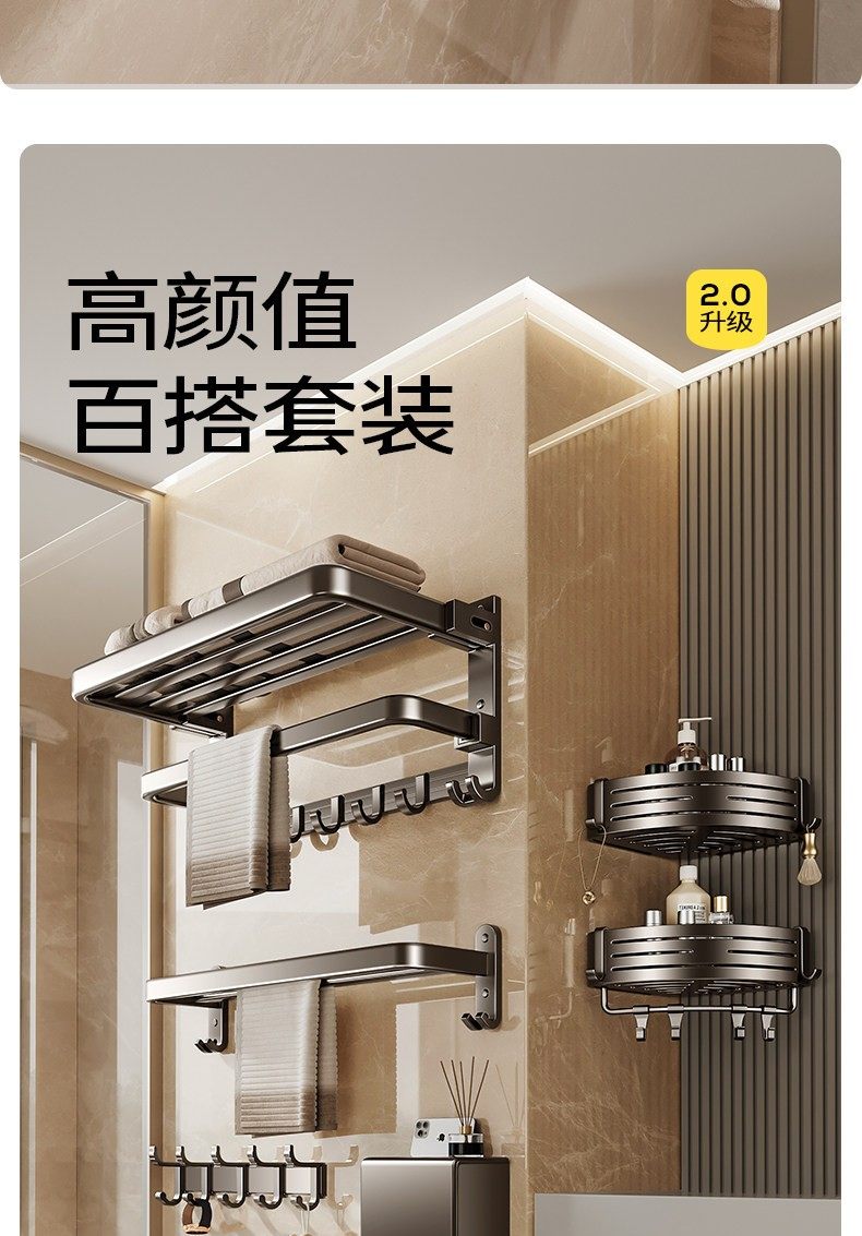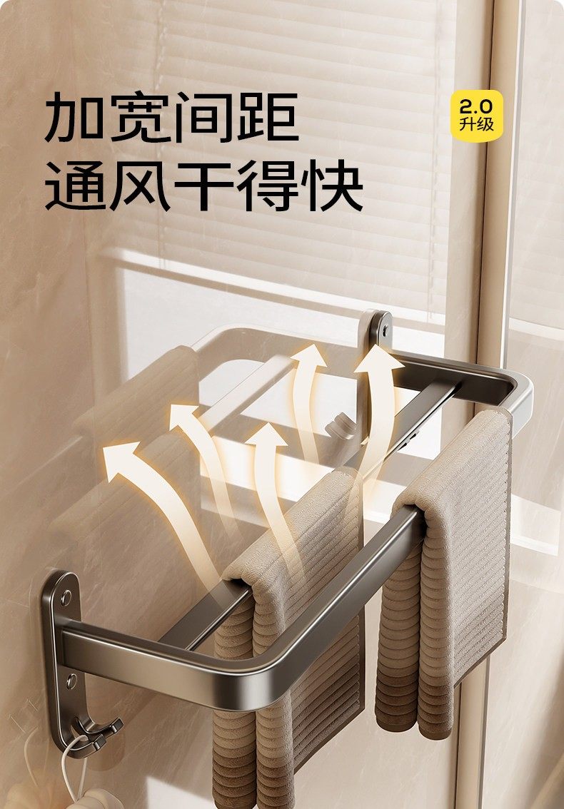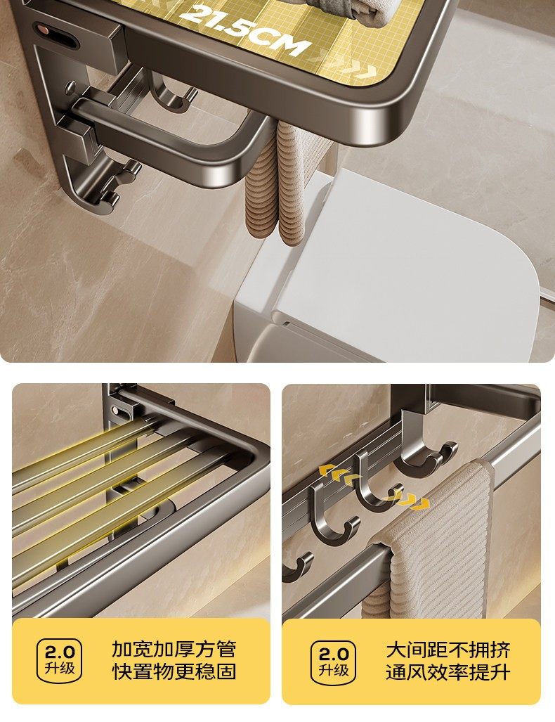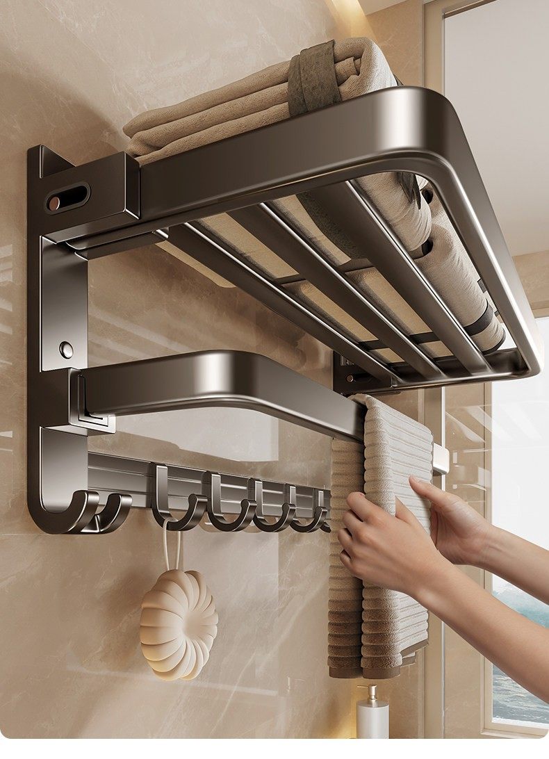 180 ° Fully Foldable Towel Rack, Bathroom Towel Rack, Bathroom Storage Rack, Toilet Integrated Space Aluminum Storage Rack