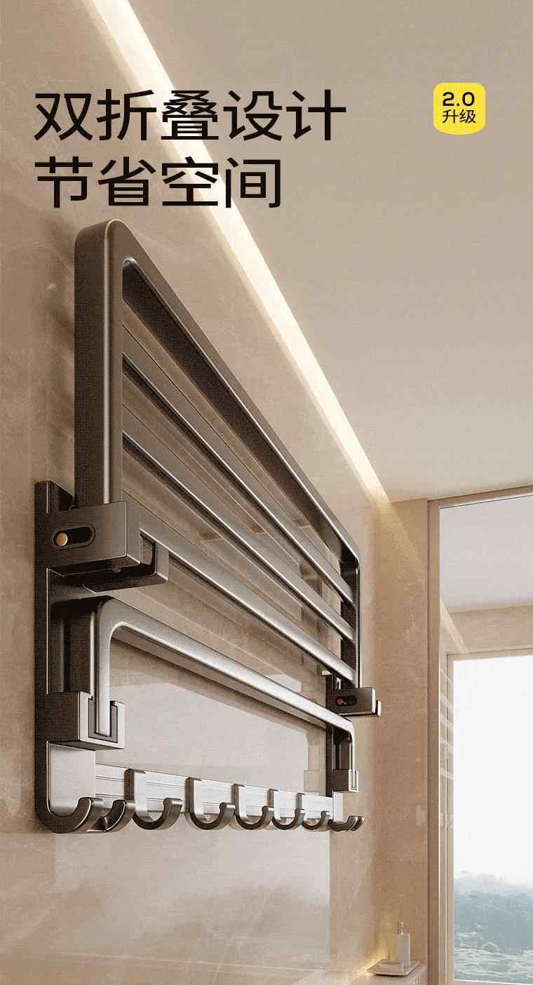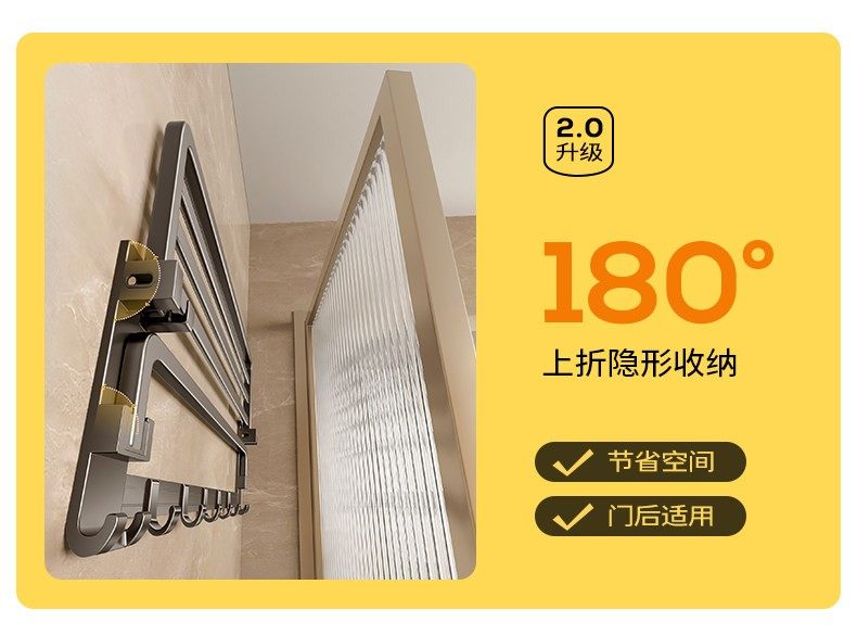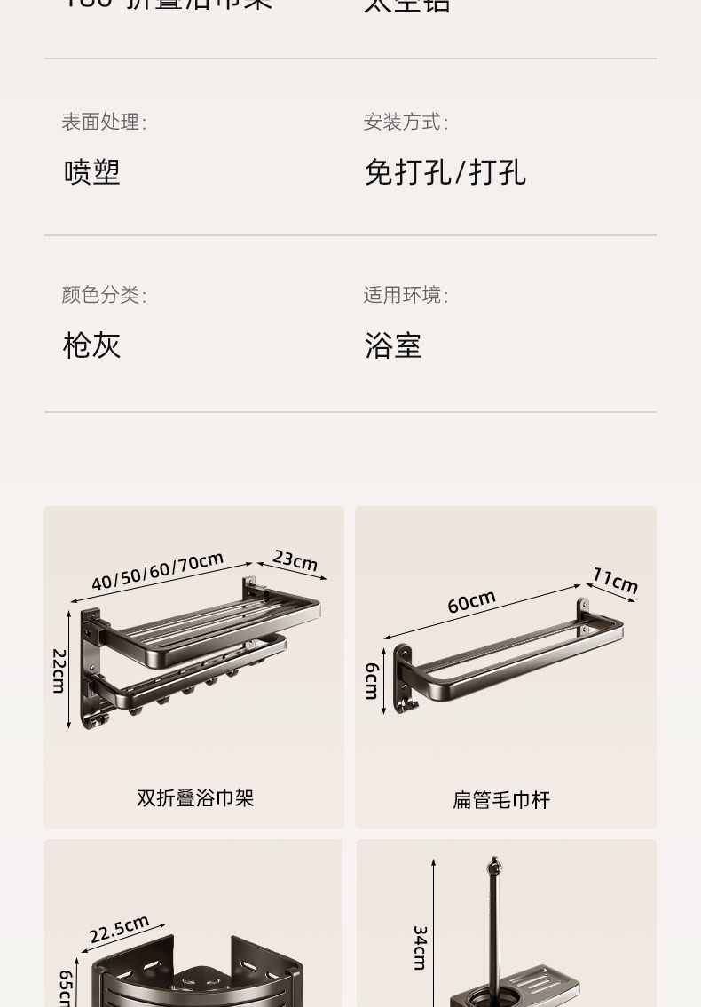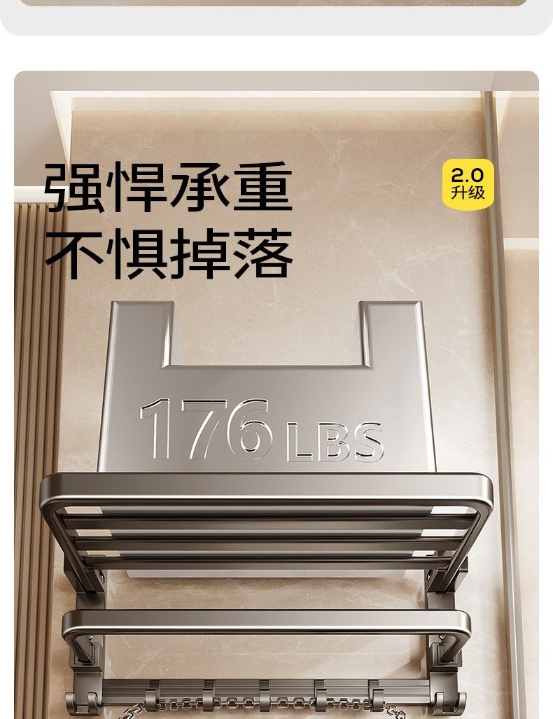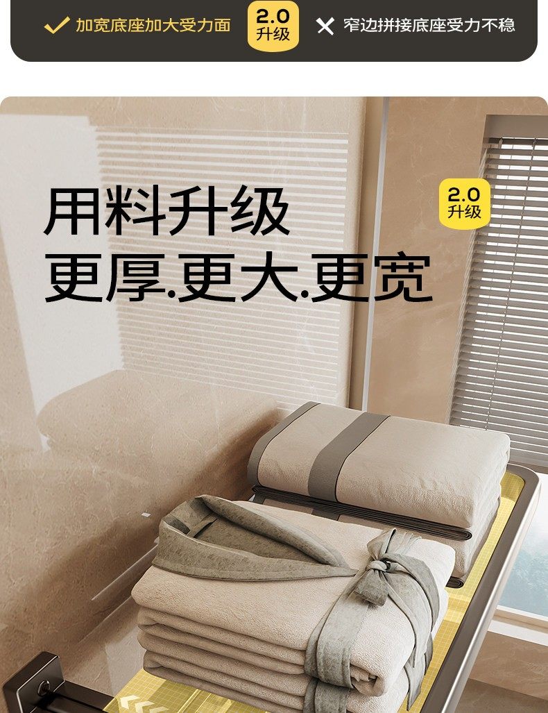 180 ° Fully Foldable Towel Rack, Bathroom Towel Rack, Bathroom Storage Rack, Toilet Integrated Space Aluminum Storage Rack