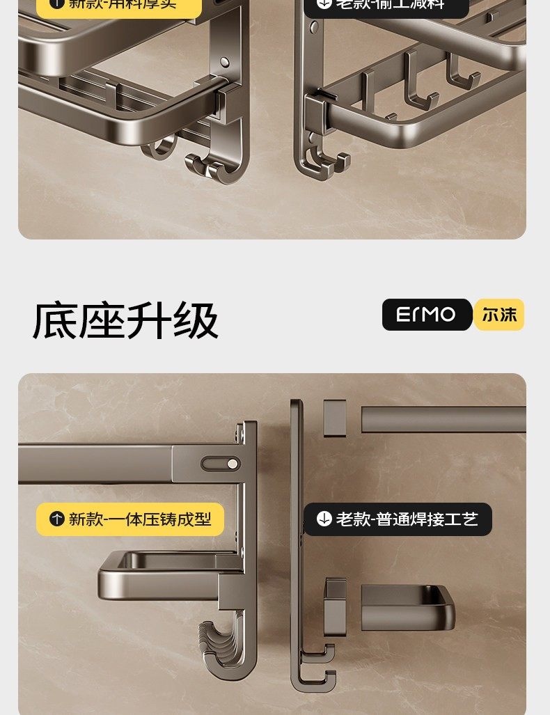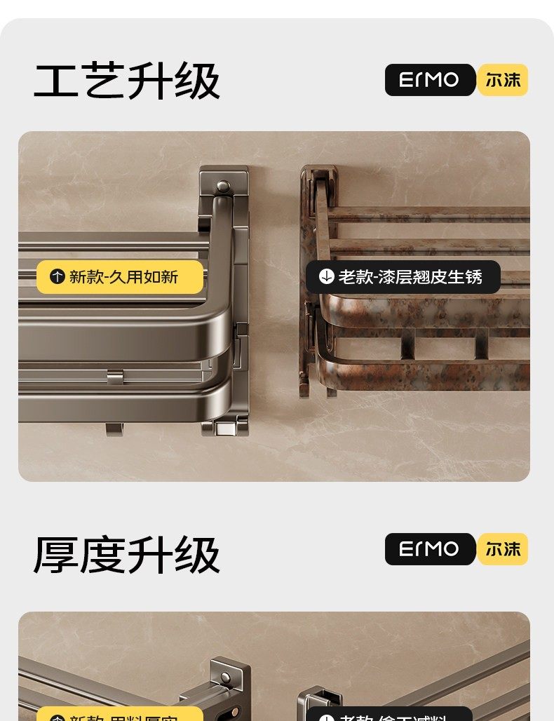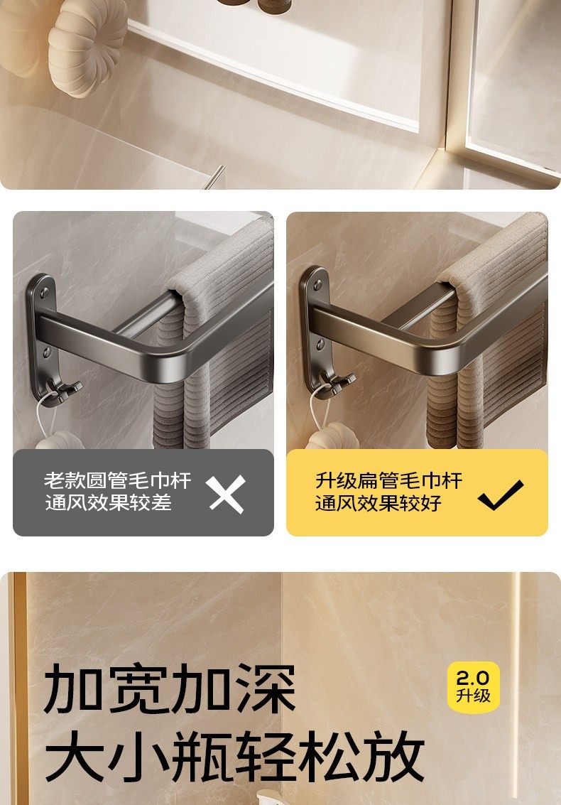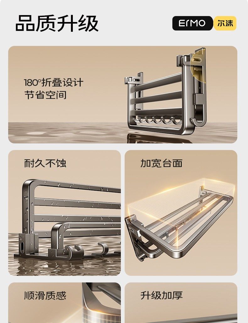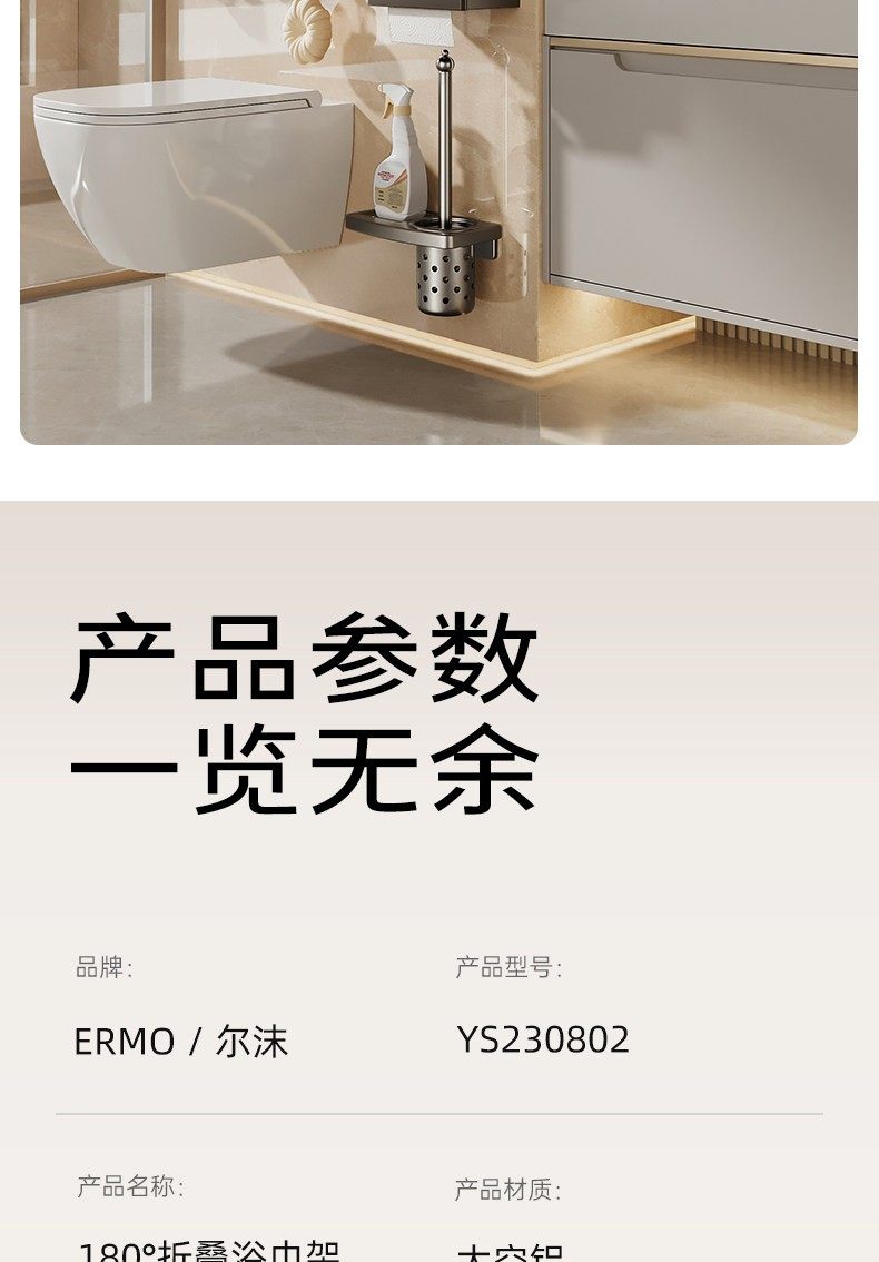 180 ° Fully Foldable Towel Rack, Bathroom Towel Rack, Bathroom Storage Rack, Toilet Integrated Space Aluminum Storage Rack