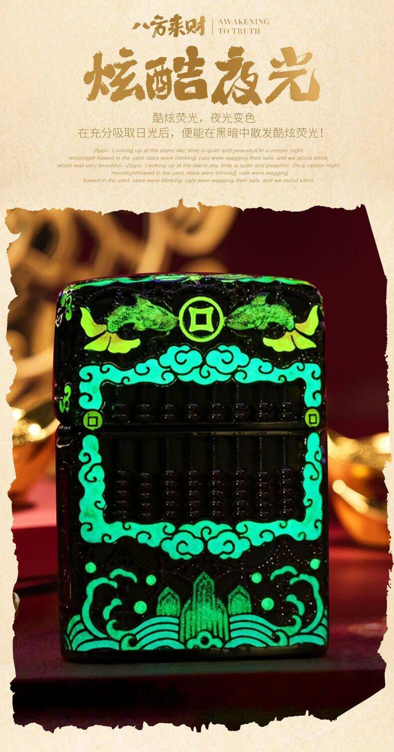 Zippo Genuine Lighter, Fortune Comes from All Directions, Lucky Abacus, Luminous Gold-Plated Enamel, High-End Gift for Boyfriend