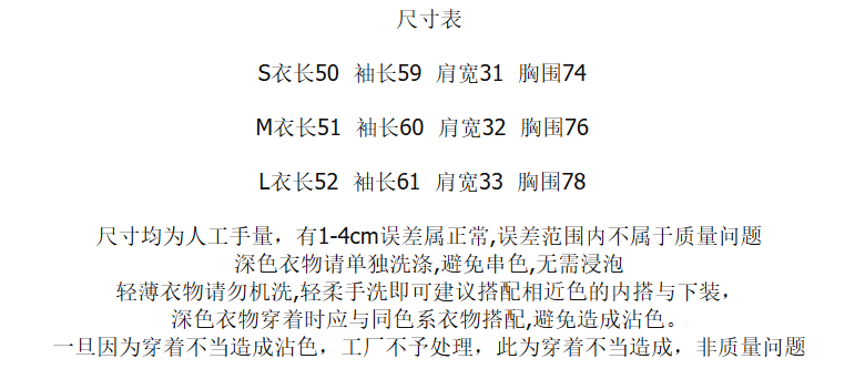 Size (cm) 42 44 46 48 50