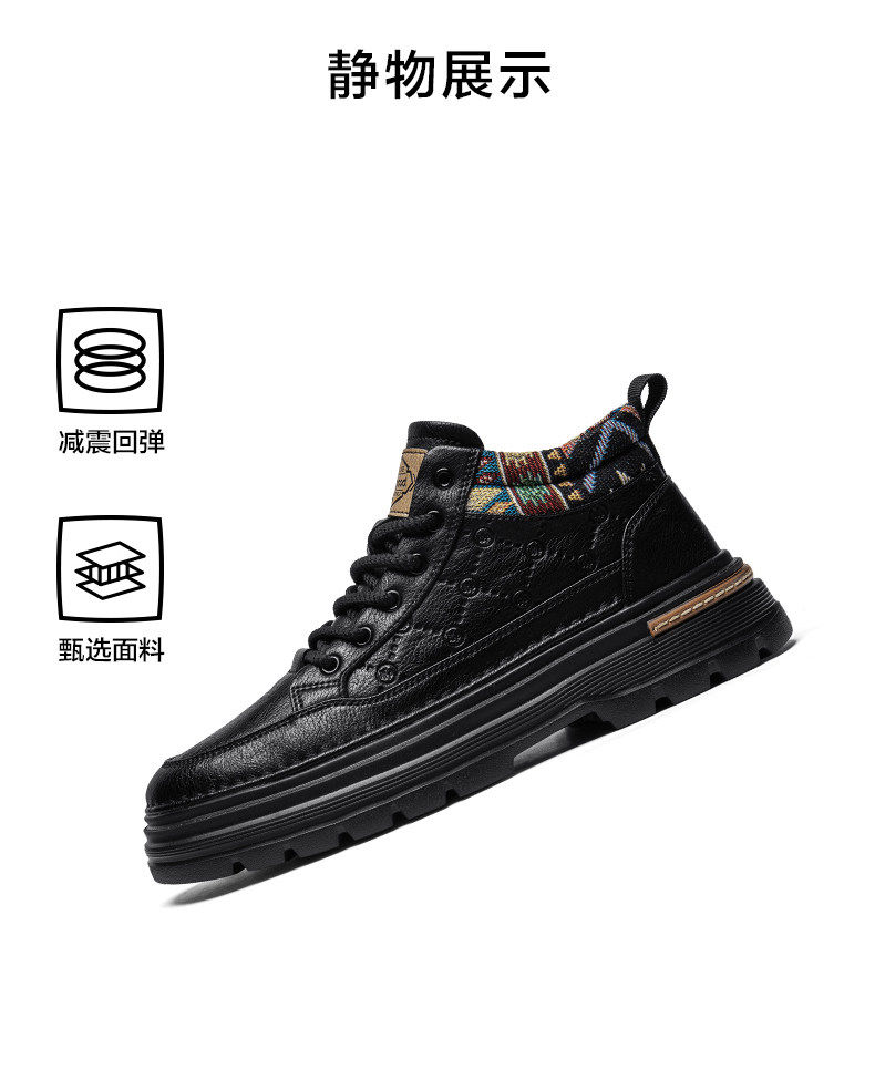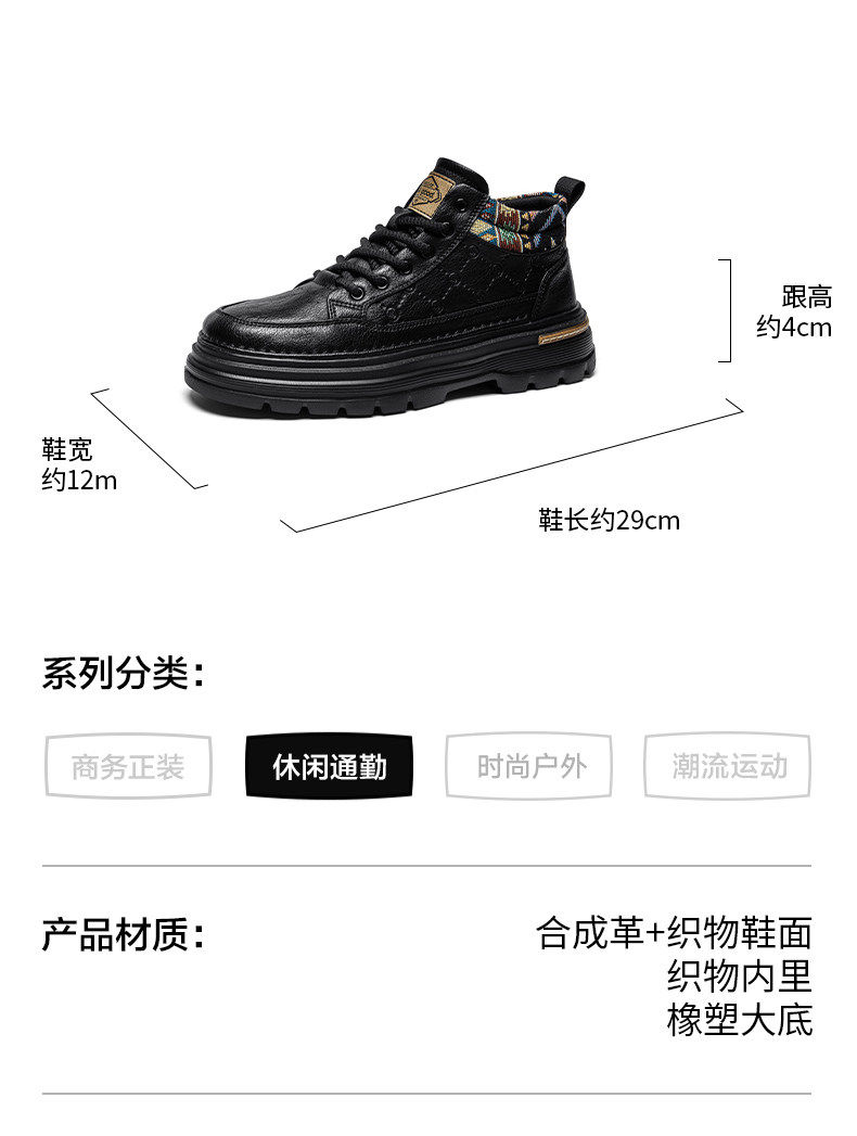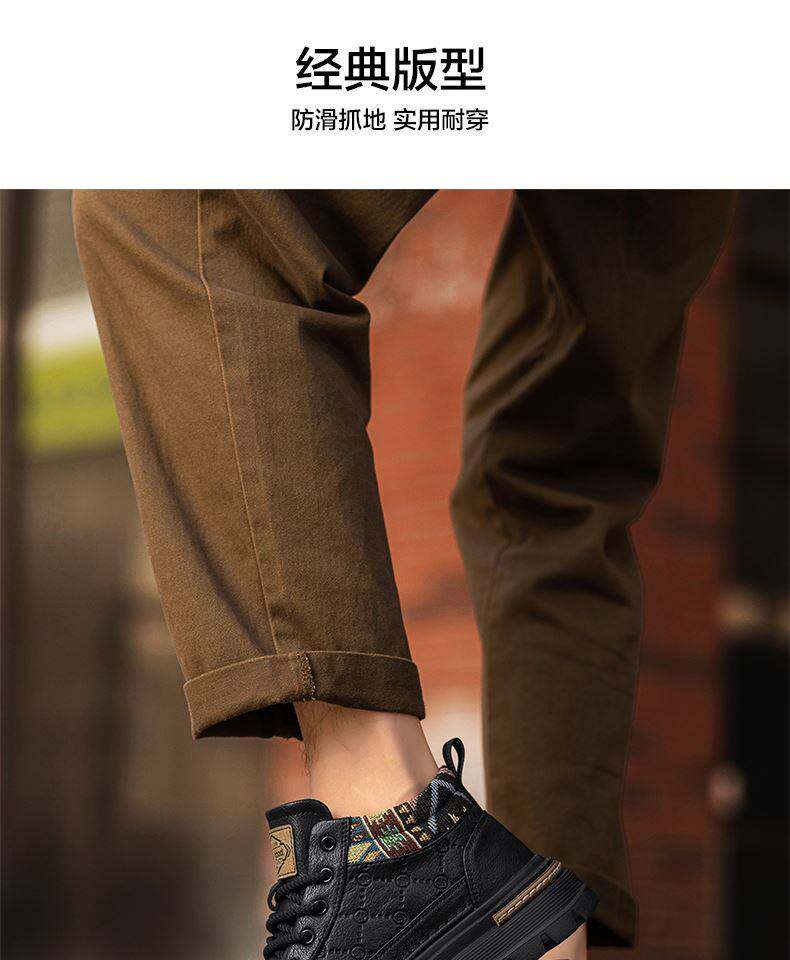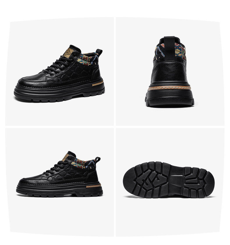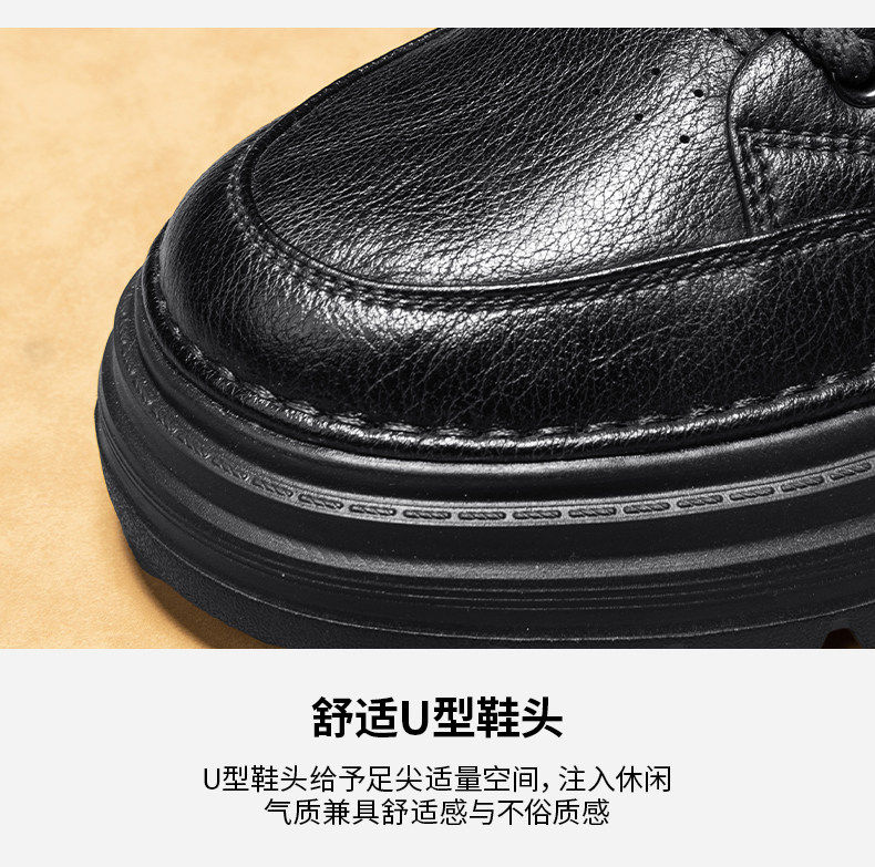 Heilan Home Men's Shoes 2026 Spring New Leather Sports Casual Work Shoes Men's British Style Height-Increasing Martin Boots
