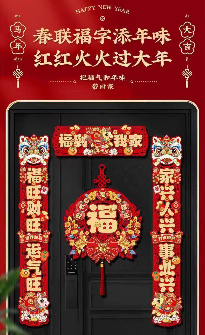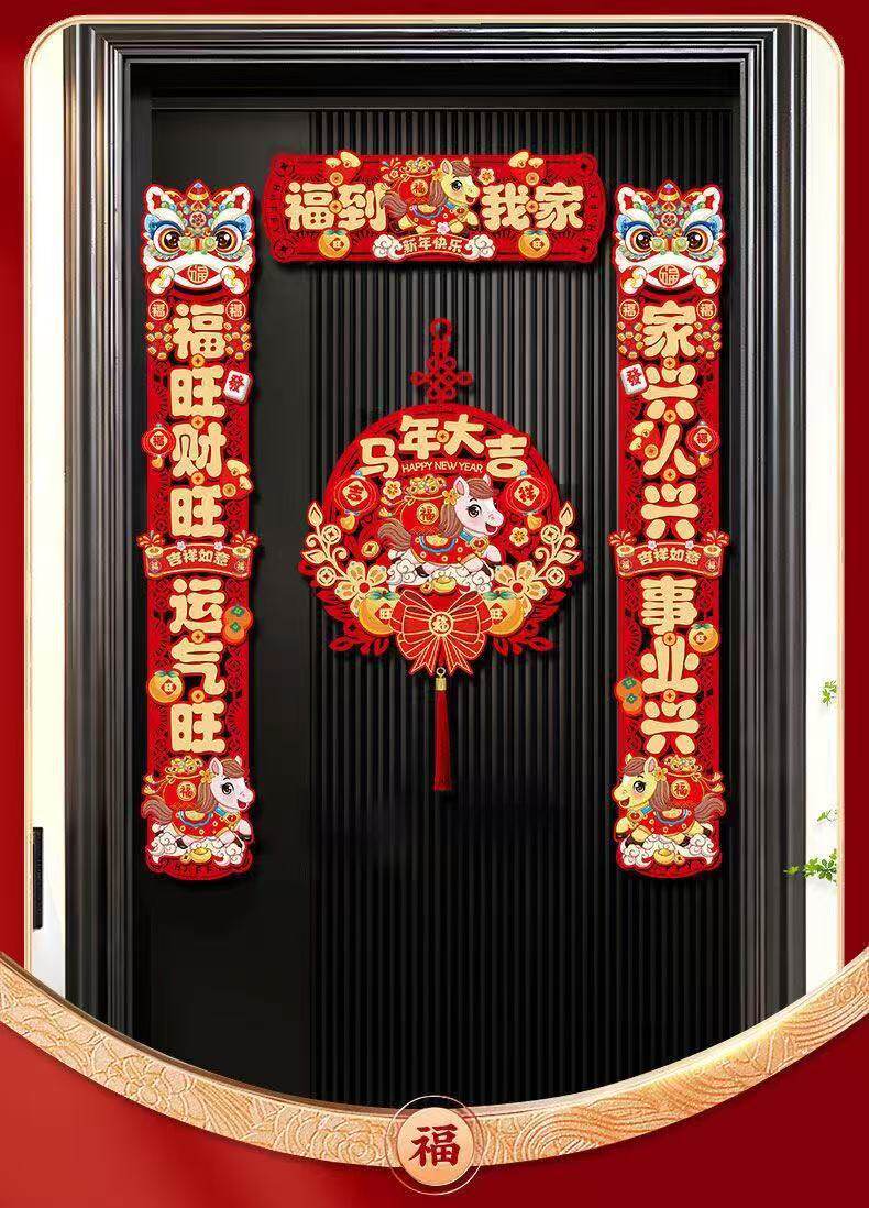 2026 New Year Magnetic 3D Horse Year Spring Festival Door Couplets Home Decoration with Fortune Characters Door Stickers