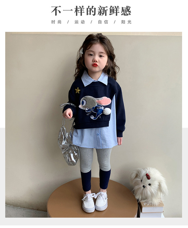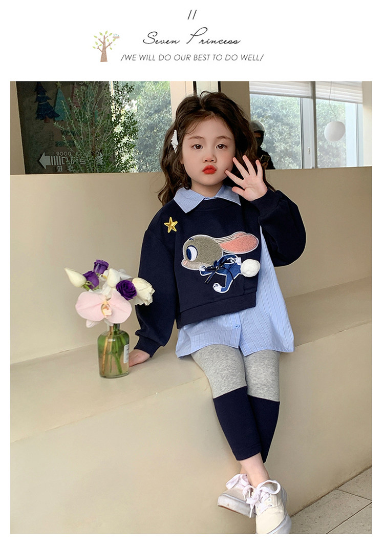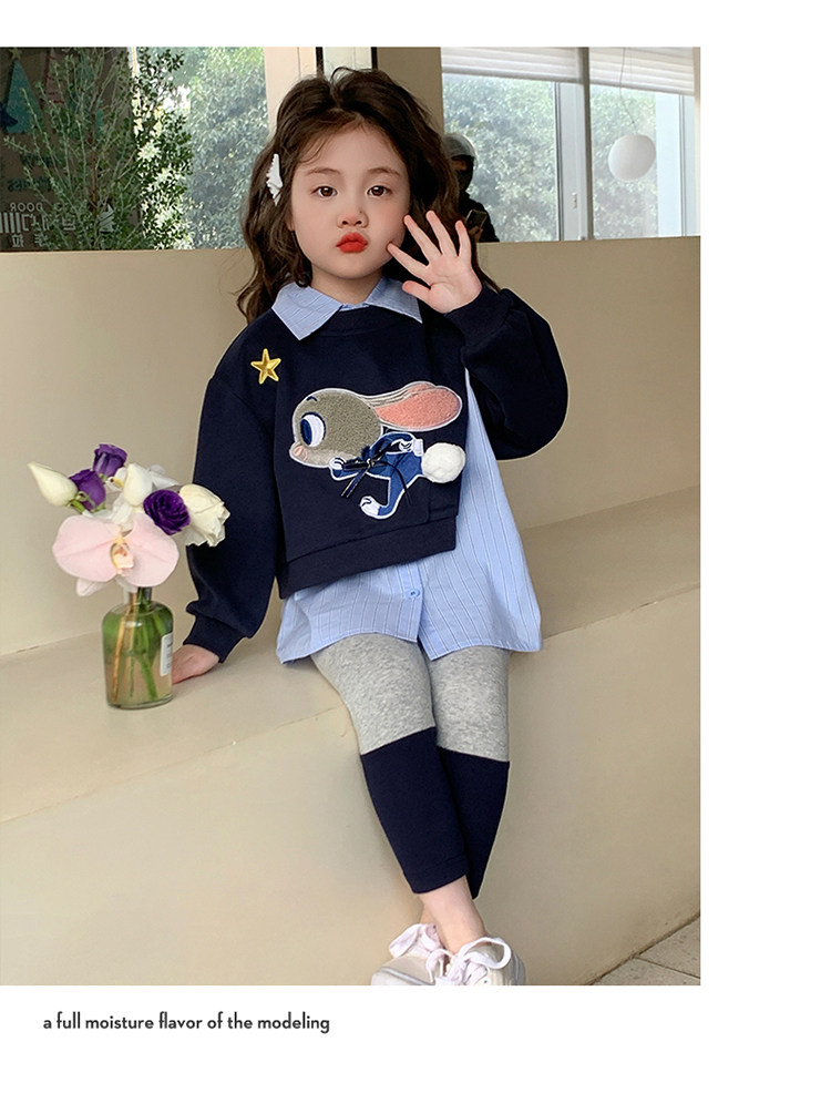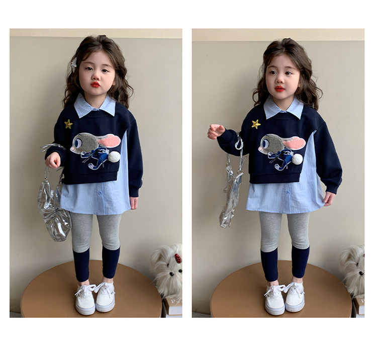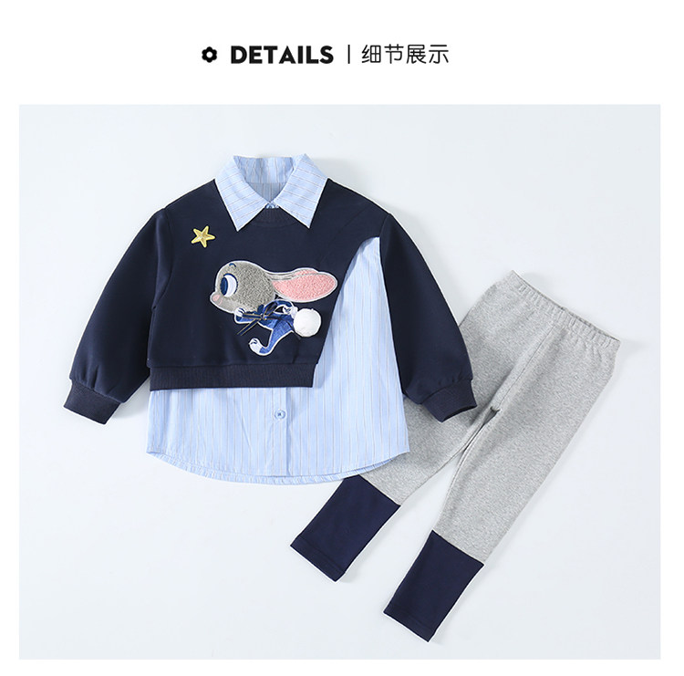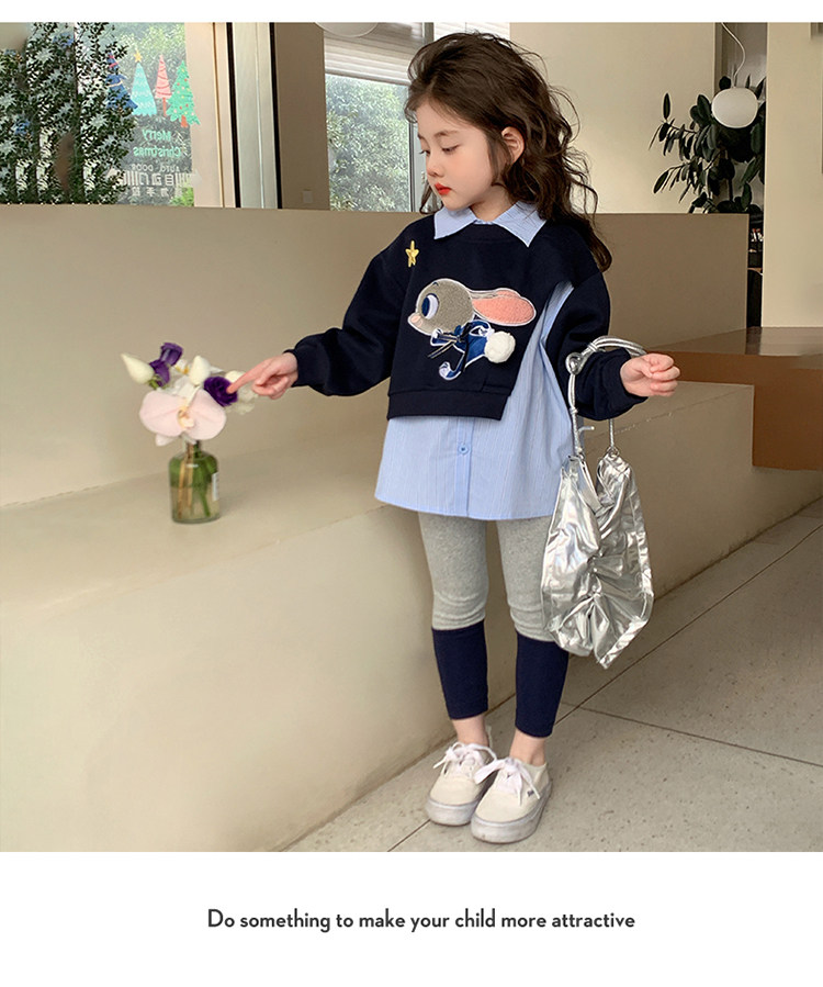 Girls' Rabbit Police Officer Outfit Two-Piece Set, New Spring and Autumn Style for Children, Fashionable and Stylish Judy Cartoon Suit for Baby Girls